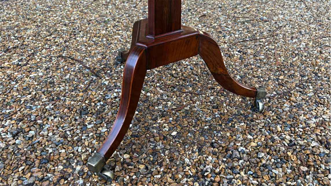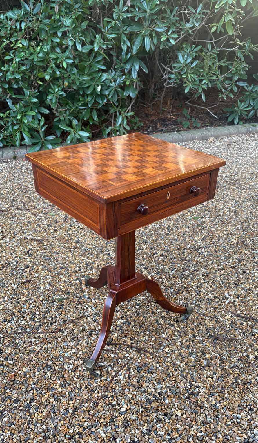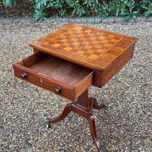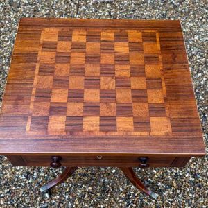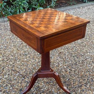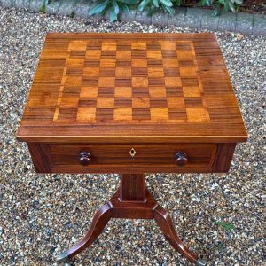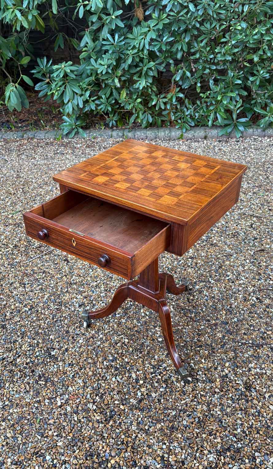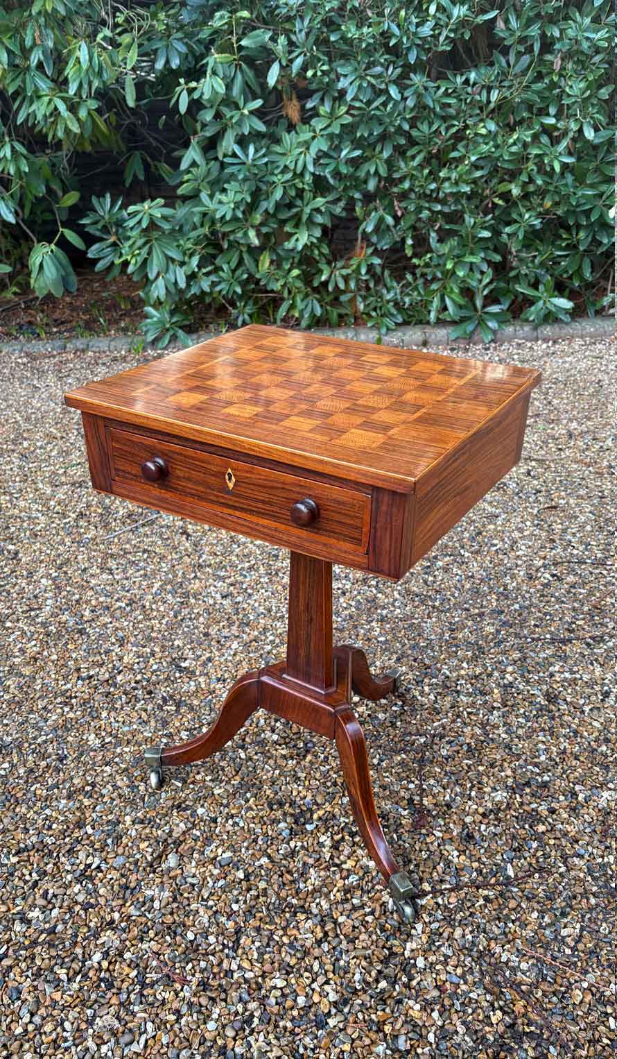 19th Century Regency Rosewood Chess Table with drawer. On a triangle support with three splayed legs and brass cap castors.