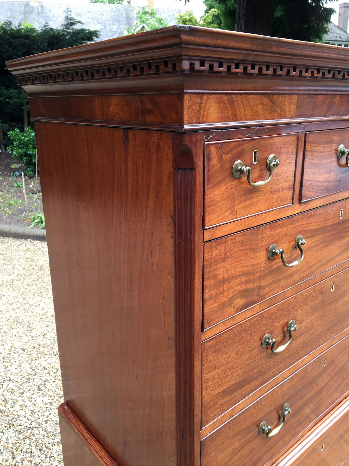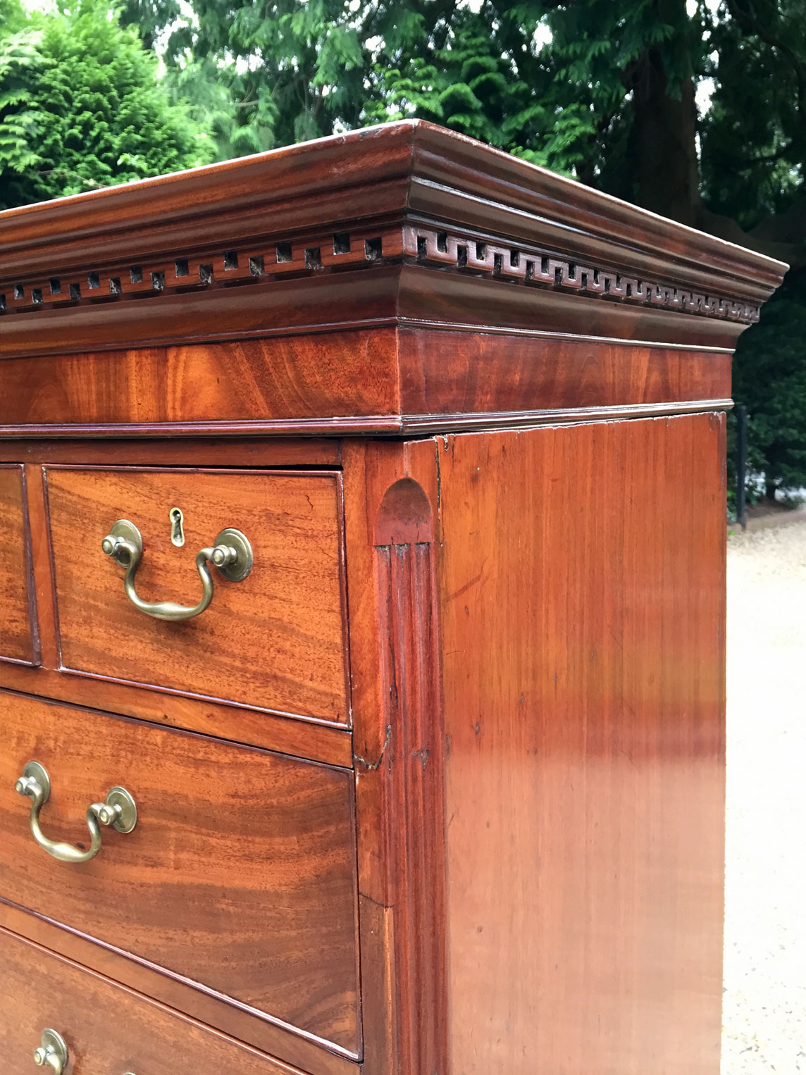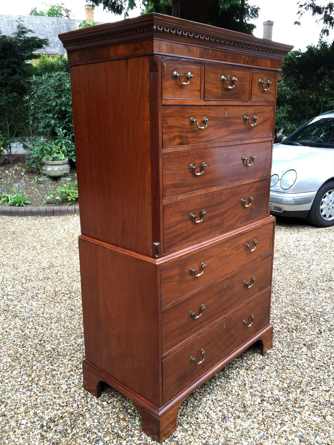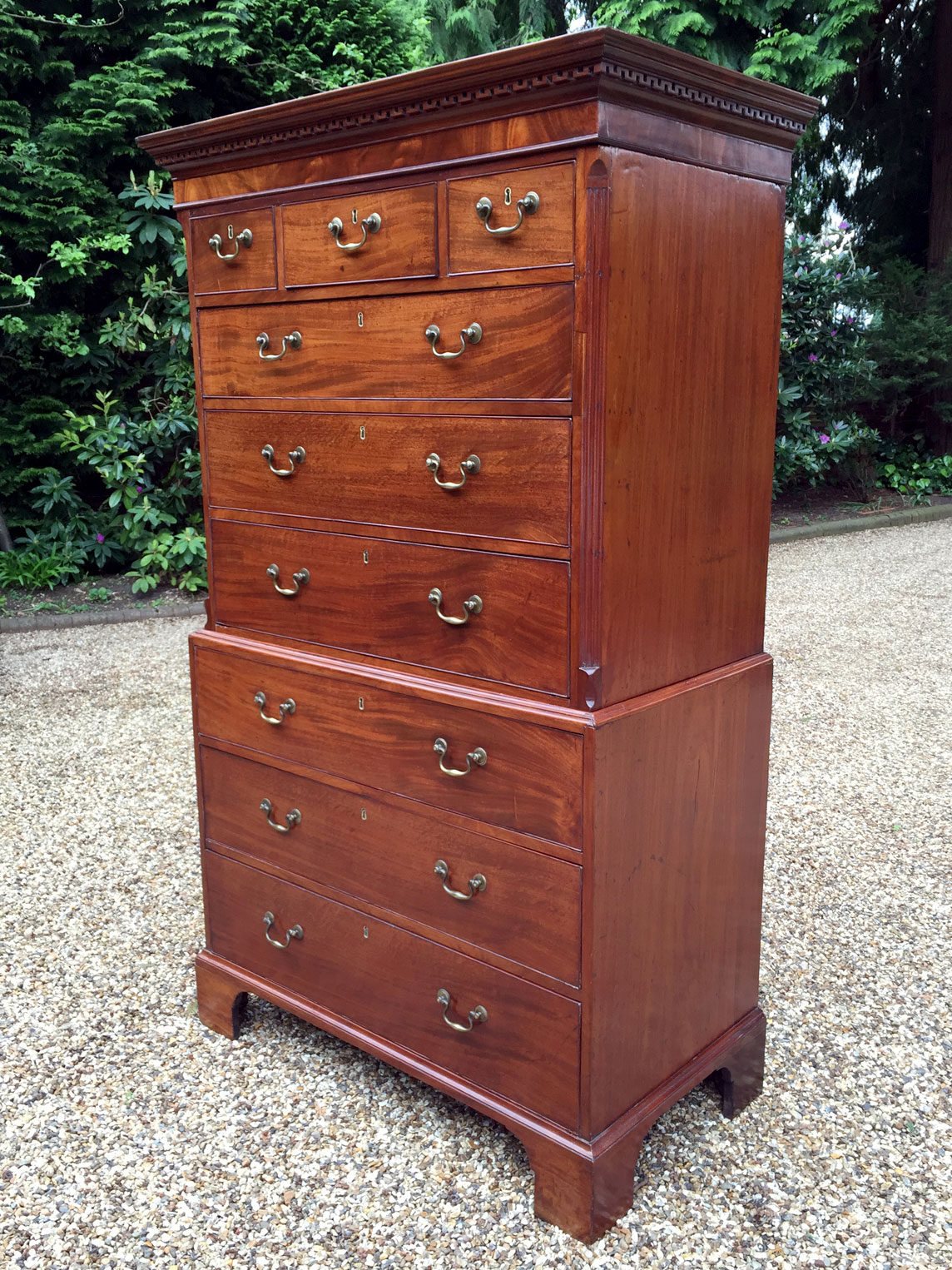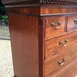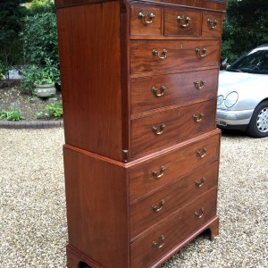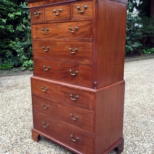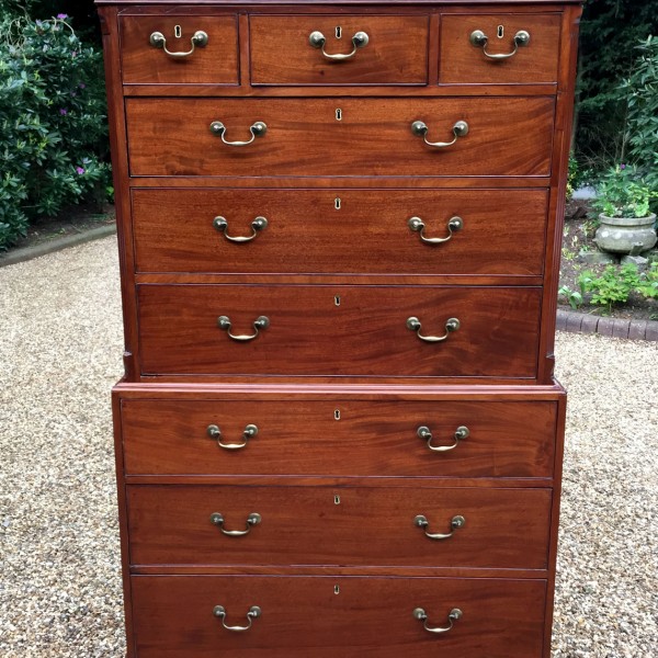 18th Century Mahogany Chest On Chest (Tallboy) with three short drawers at the top and six long drawers. Original swan neck handles and oak lined drawers. Comes apart in two separate sections.