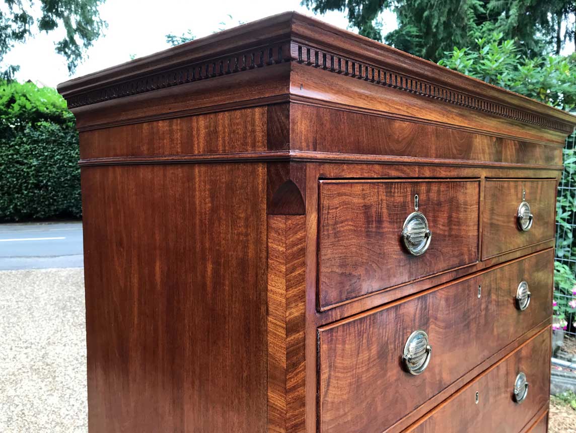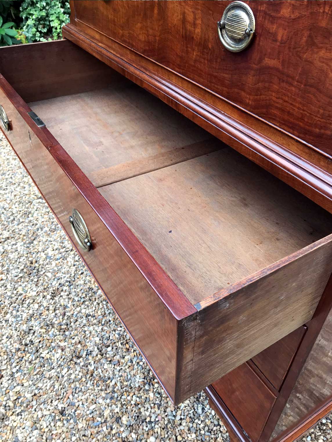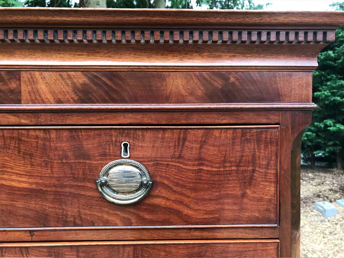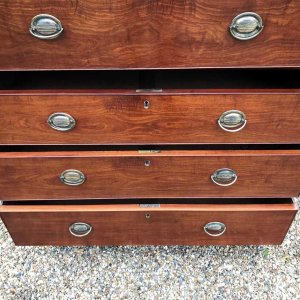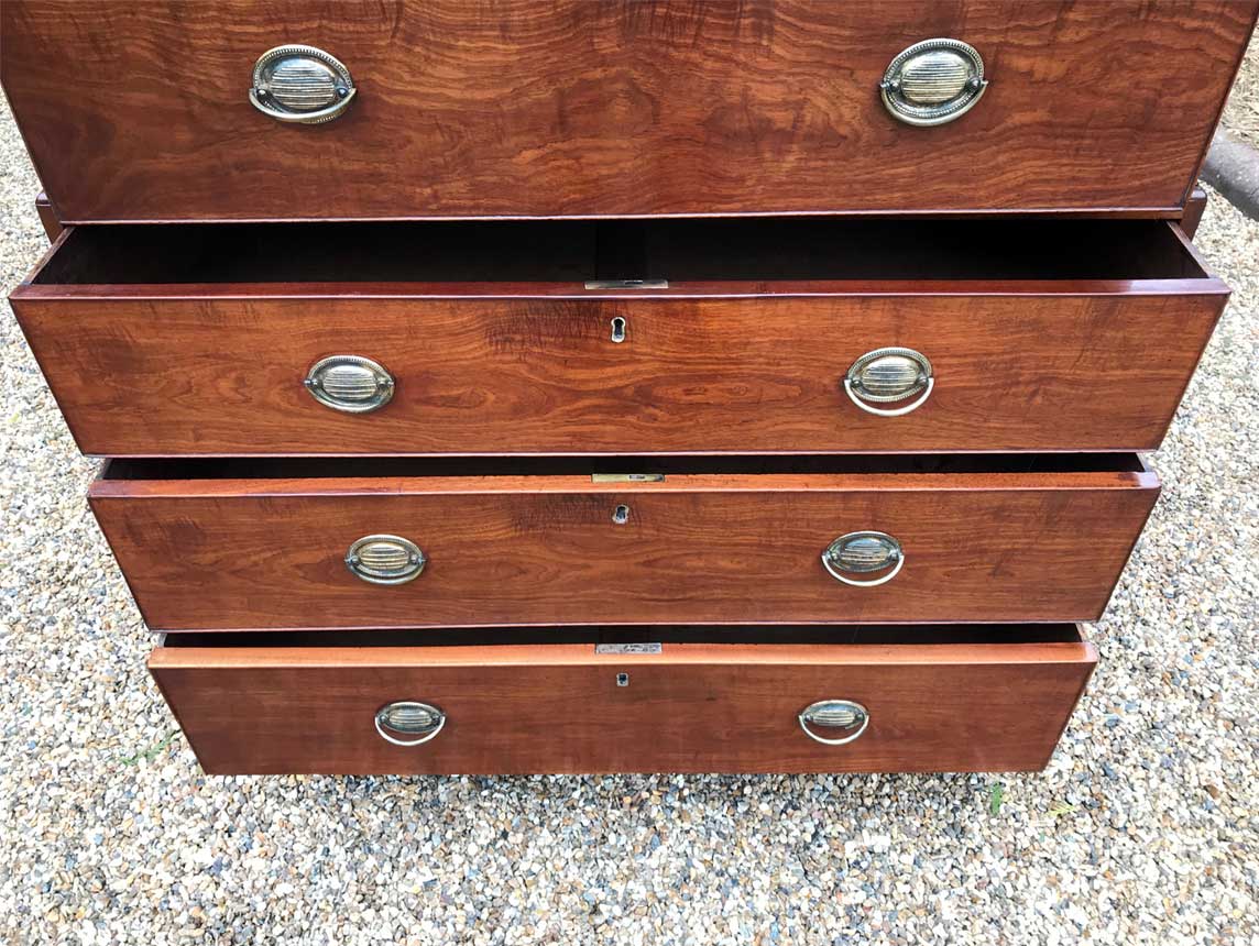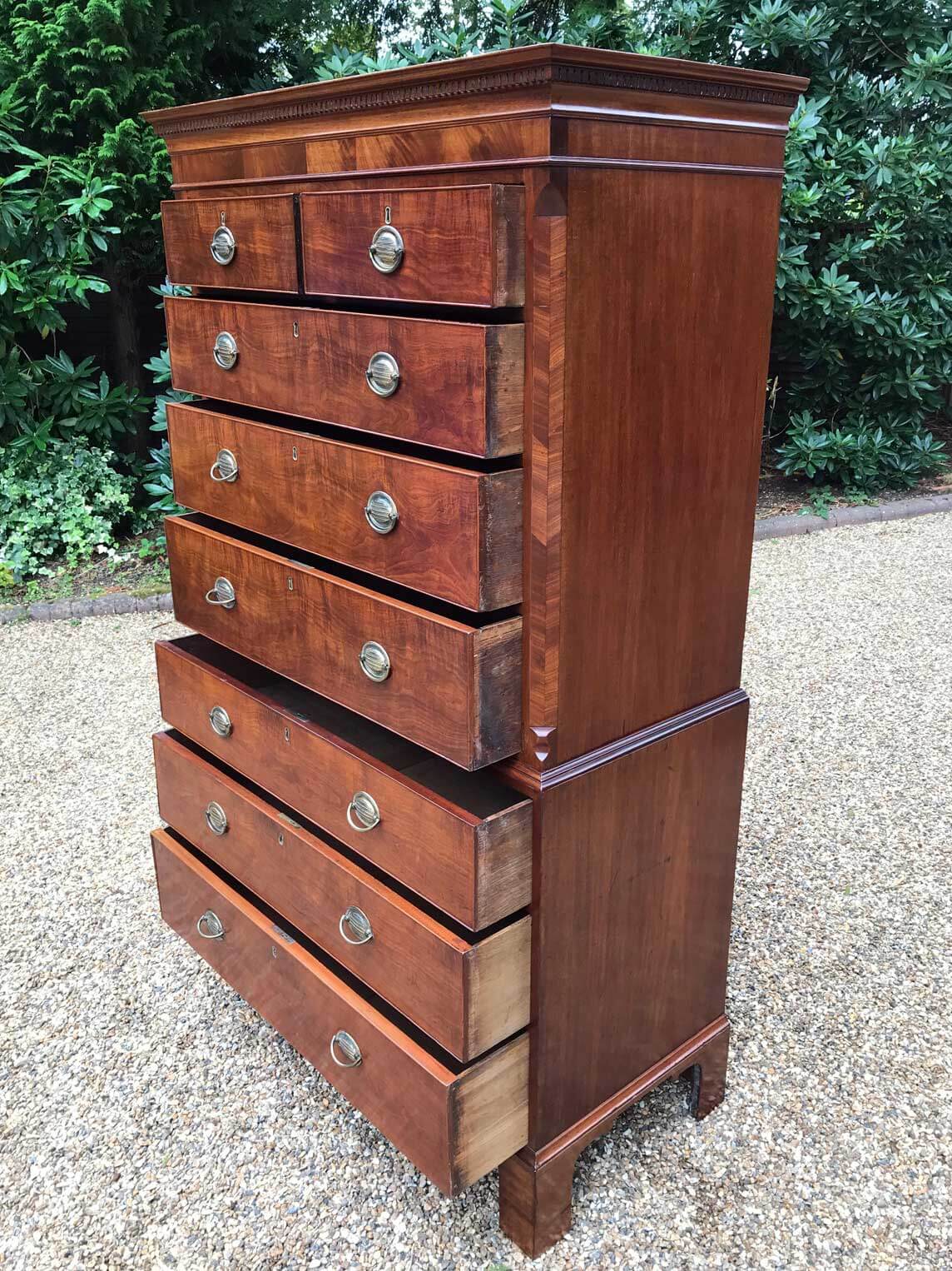 A very high quality 18th Century Mahogany Chest On Chest (Tallboy) Two short drawers at the top and six long drawers. Original oval brass handles and solid oak lined drawers. Comes apart in two separate sections on original bracket feet.