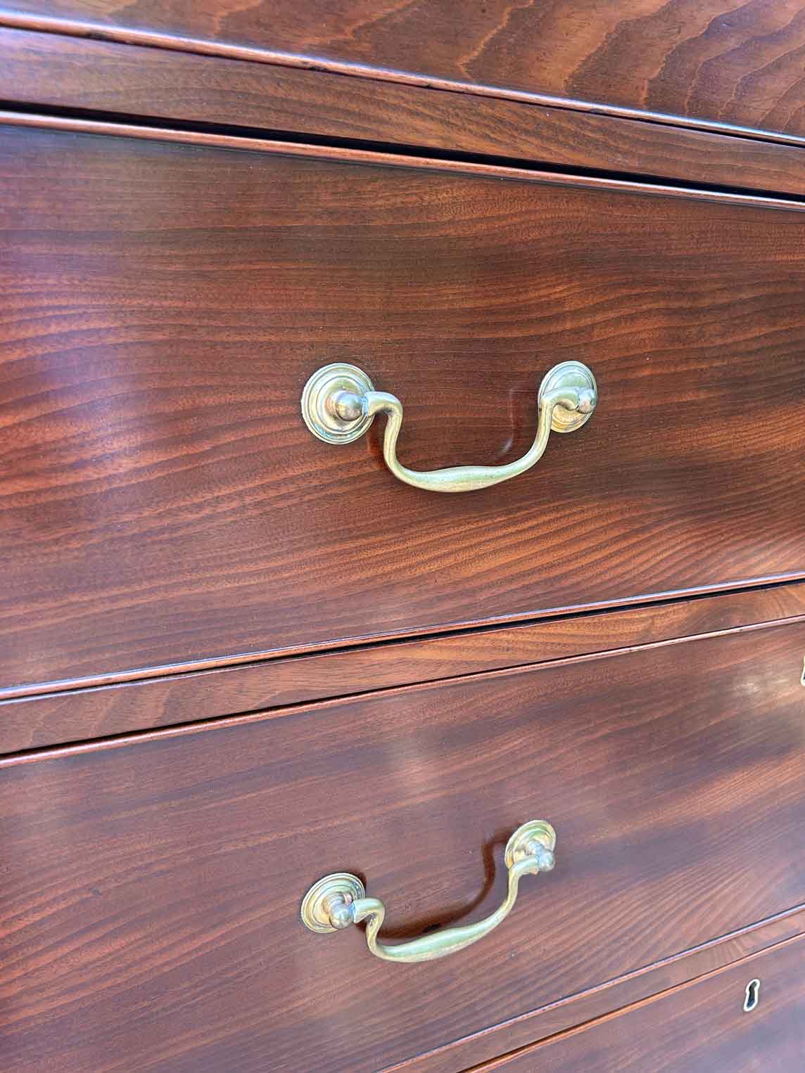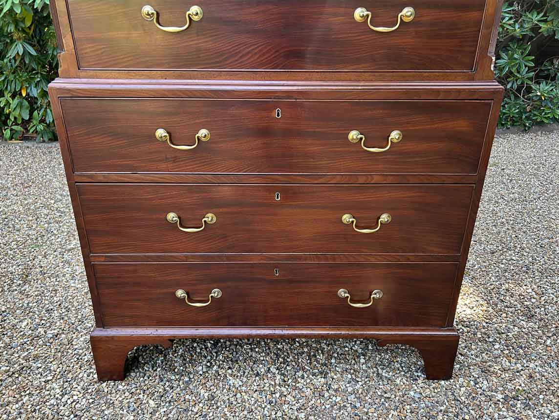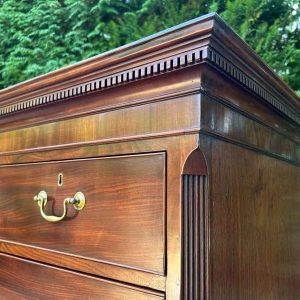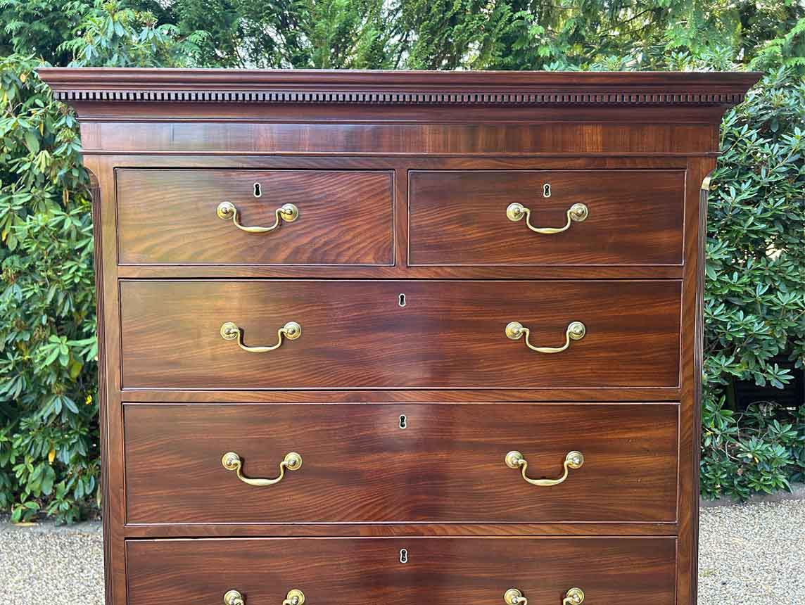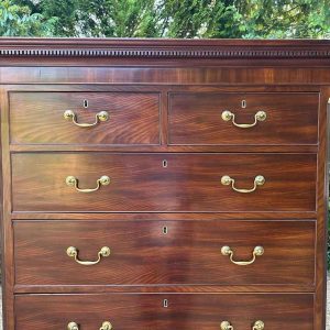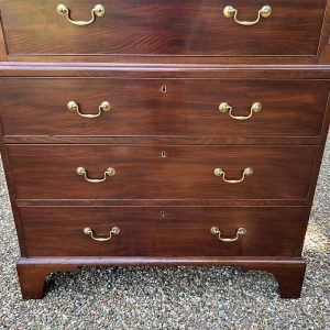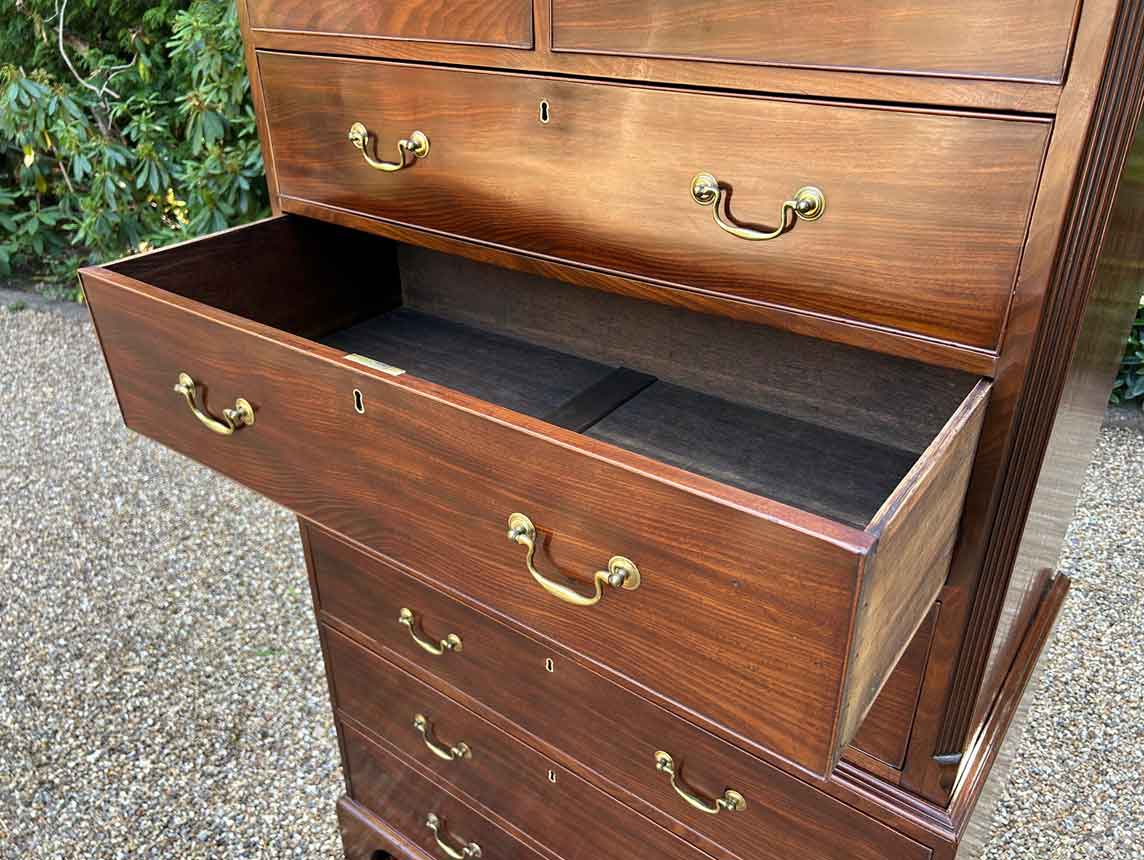 A very high quality 18th Century (George III) Mahogany Chest On Chest / Tallboy. Two short drawers at the top and six long drawers with original swan neck handles and oak lined drawers. With frieze to cornice and reeded sides. Comes apart in two separate sections on original bracket feet.