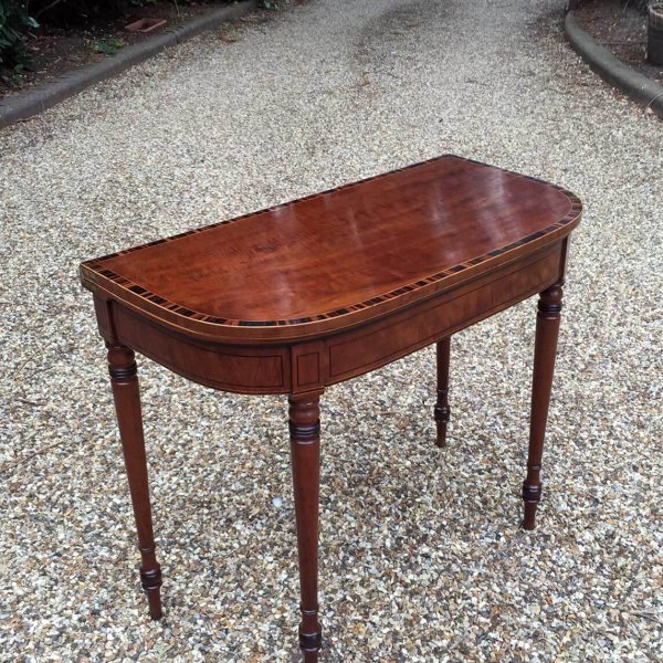 Georgian Mahogany Inlaid Demi Lune Card Table