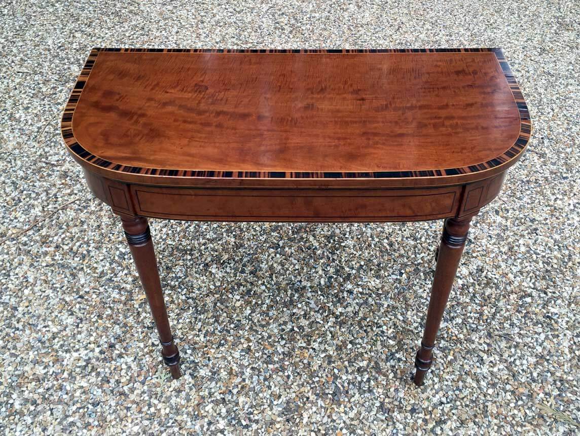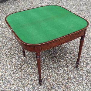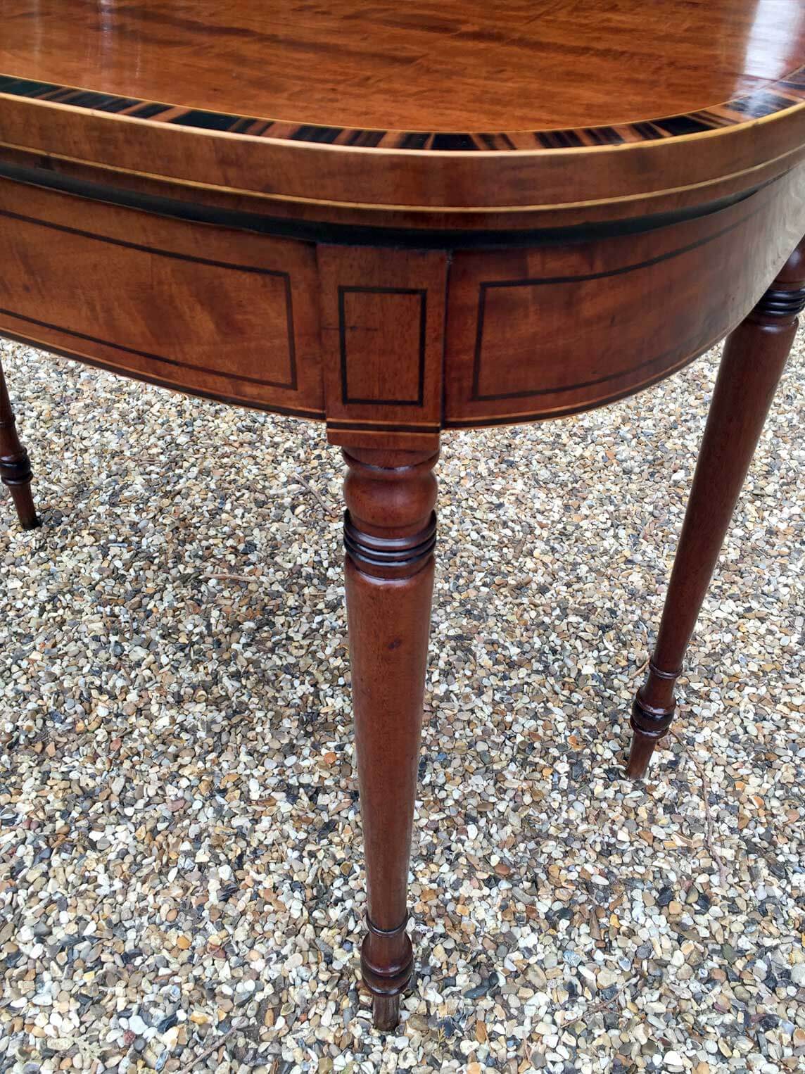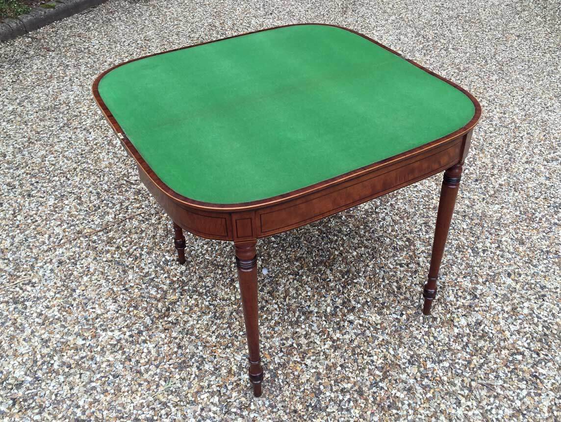 Georgian Mahogany D-Shaped Card Table with crossbanded figured rosewood on the top with original green baize inside.