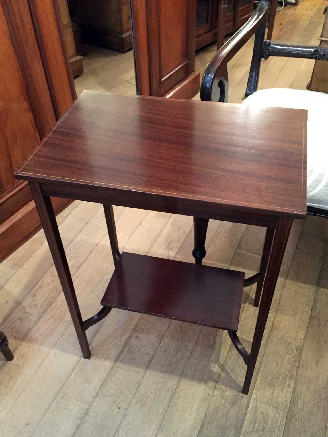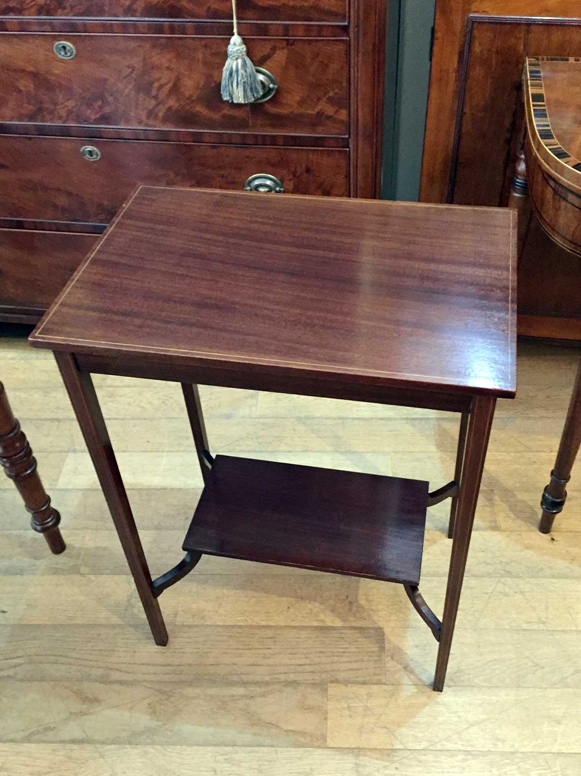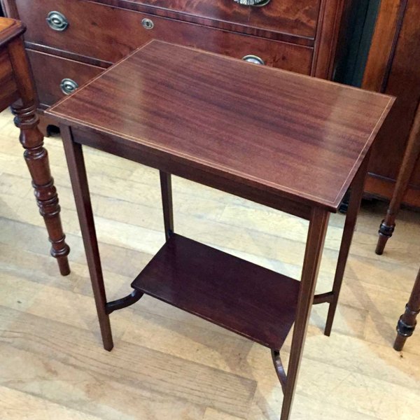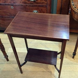 This very attractive small Edwardian Mahogany Occasional Table with lower shelf and inlay throughout.