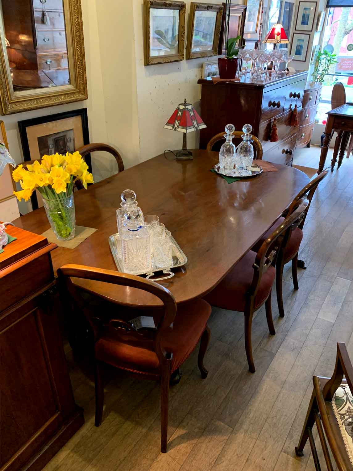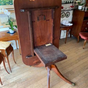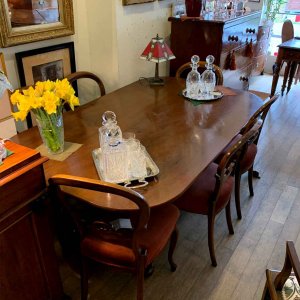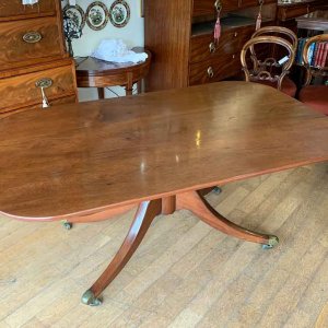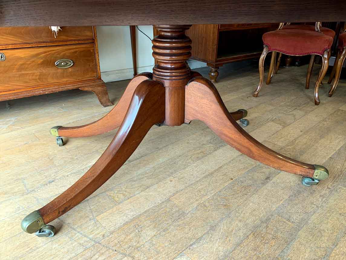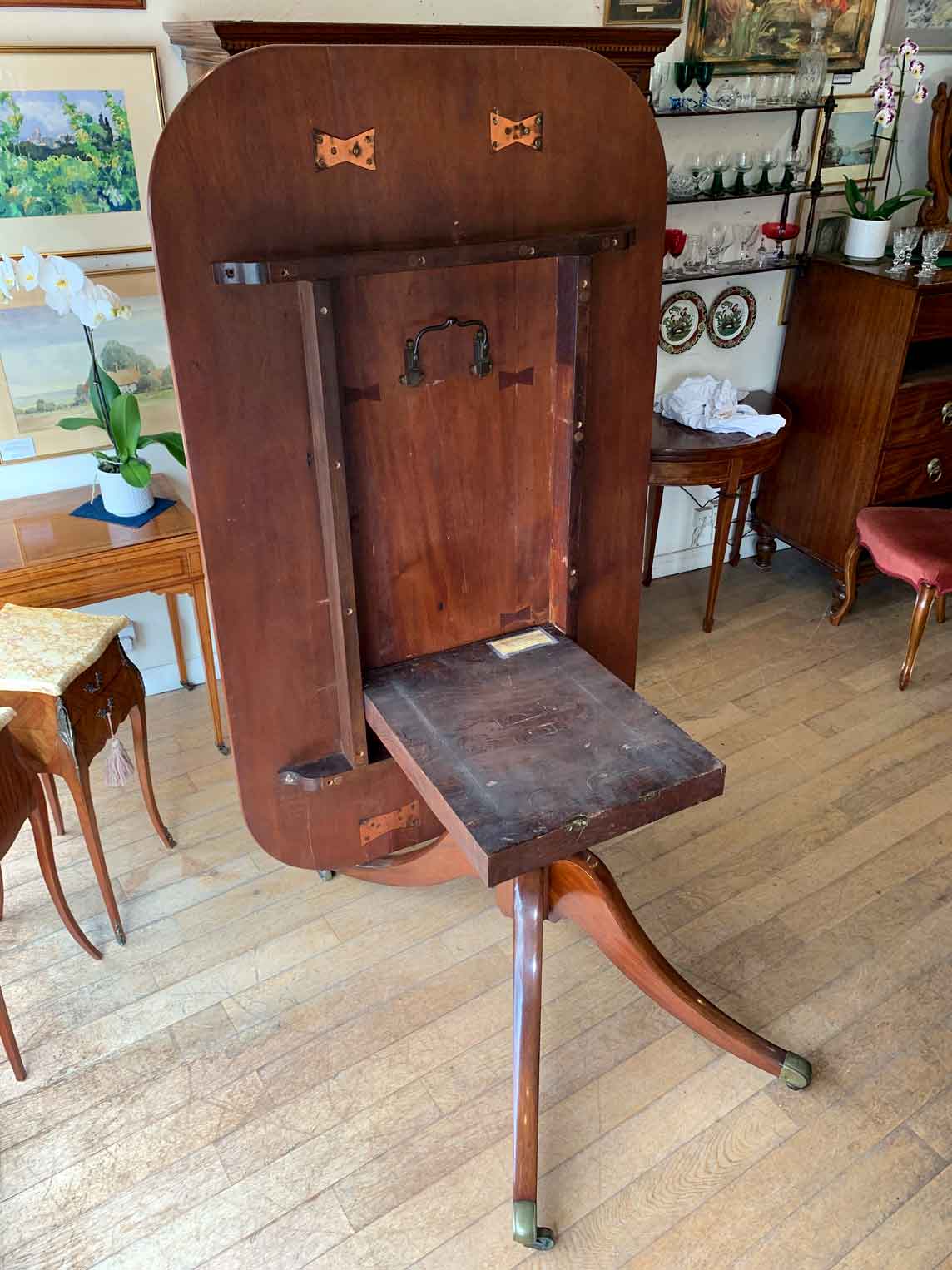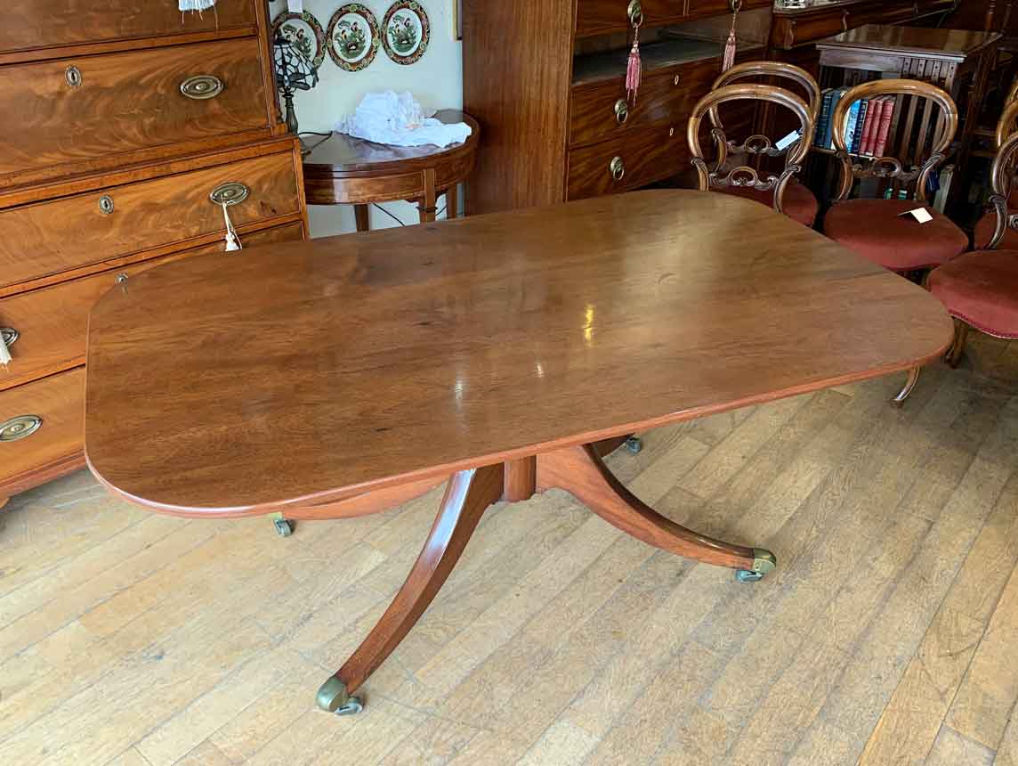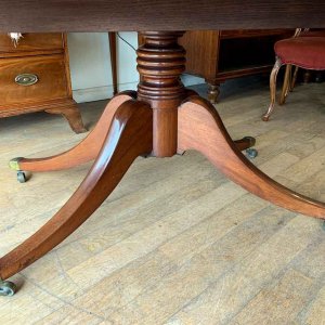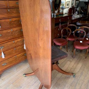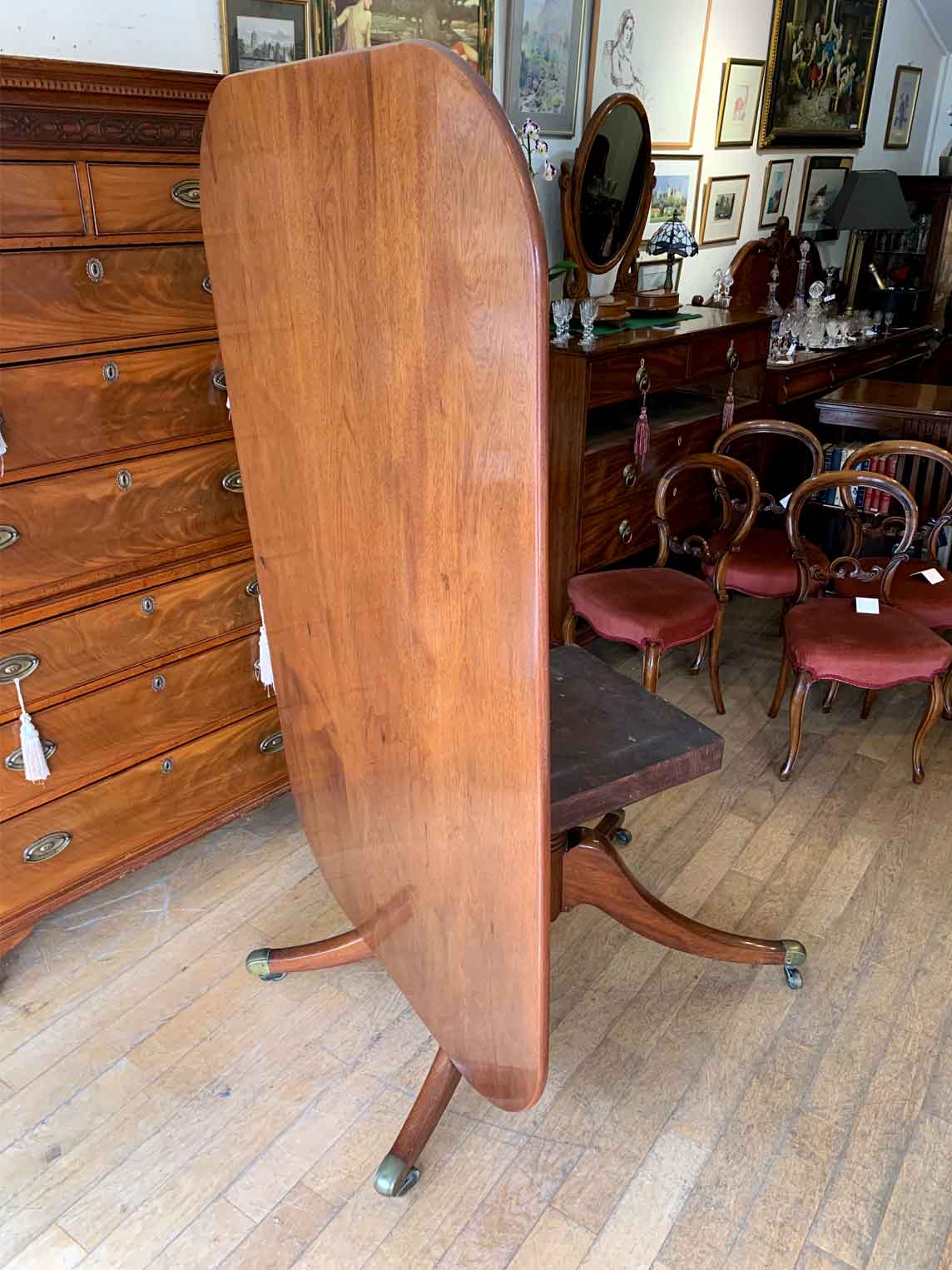 19th Century Tilt Top Dining Table with rounded corners. On an elegant turned column with four splayed legs on castors.
