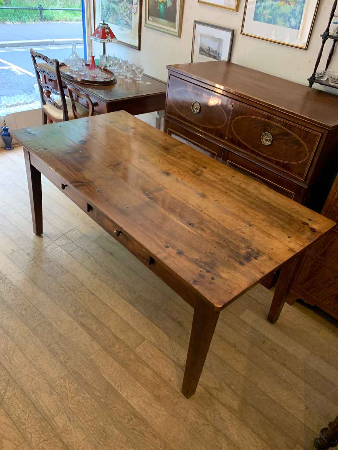 A very high quality 19th Century French Cherry-wood Table with two drawers.