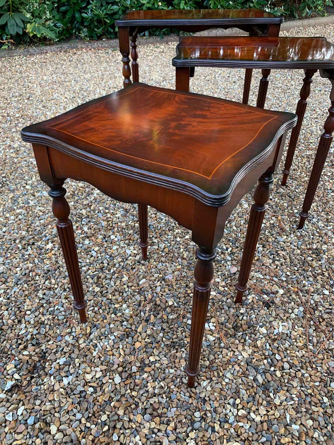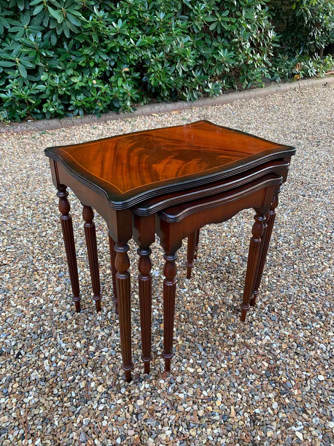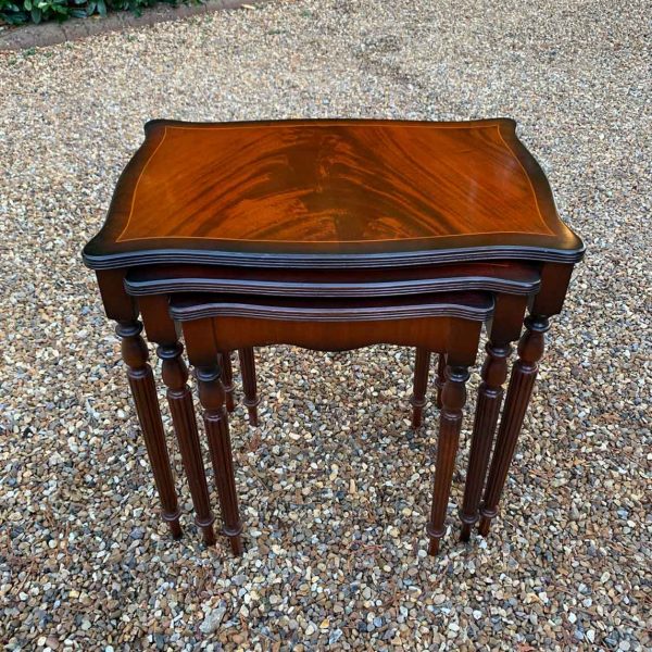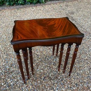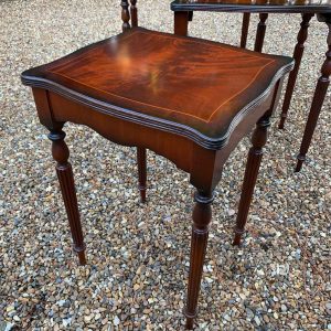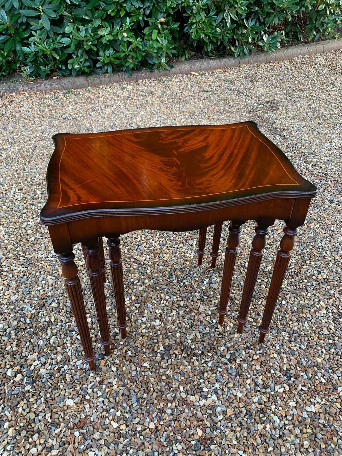 Mahogany Nest of tables, set of 3 with a reeded legs and inlay.