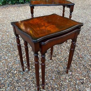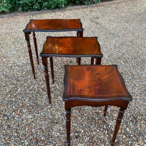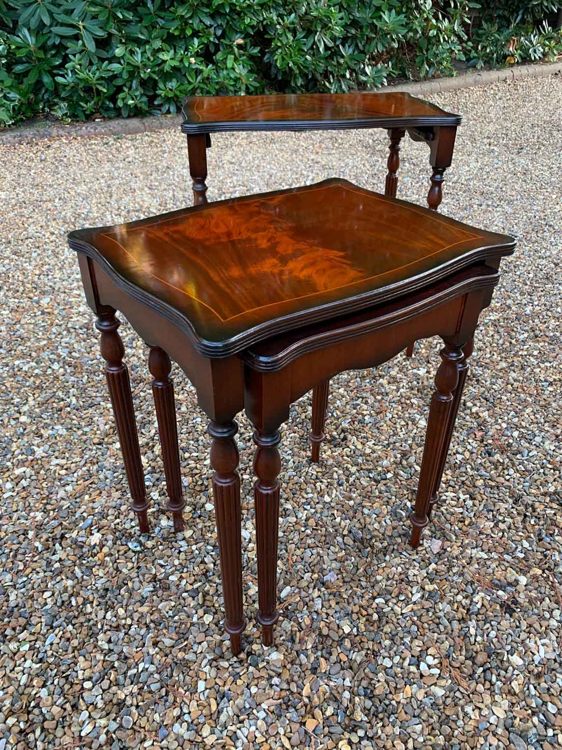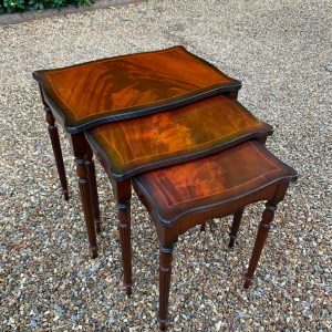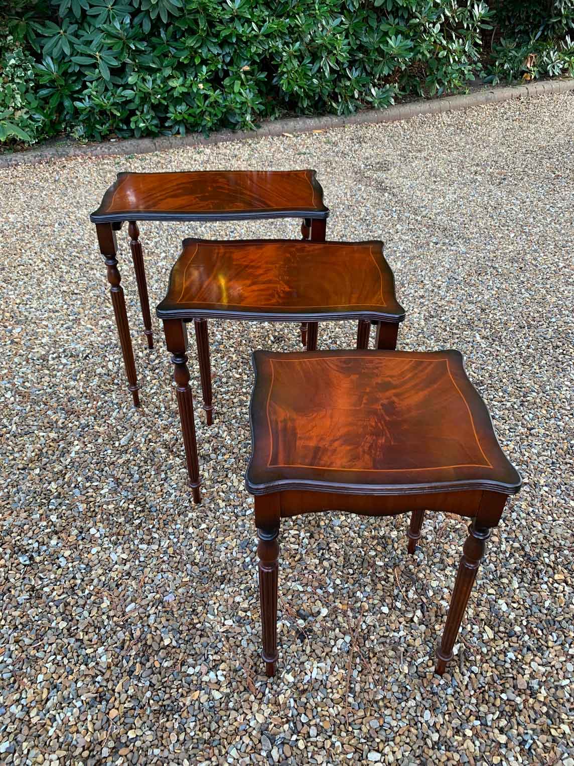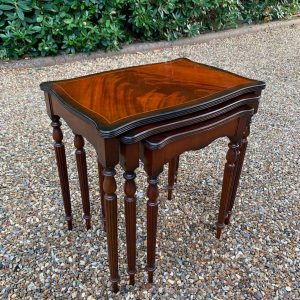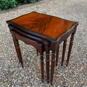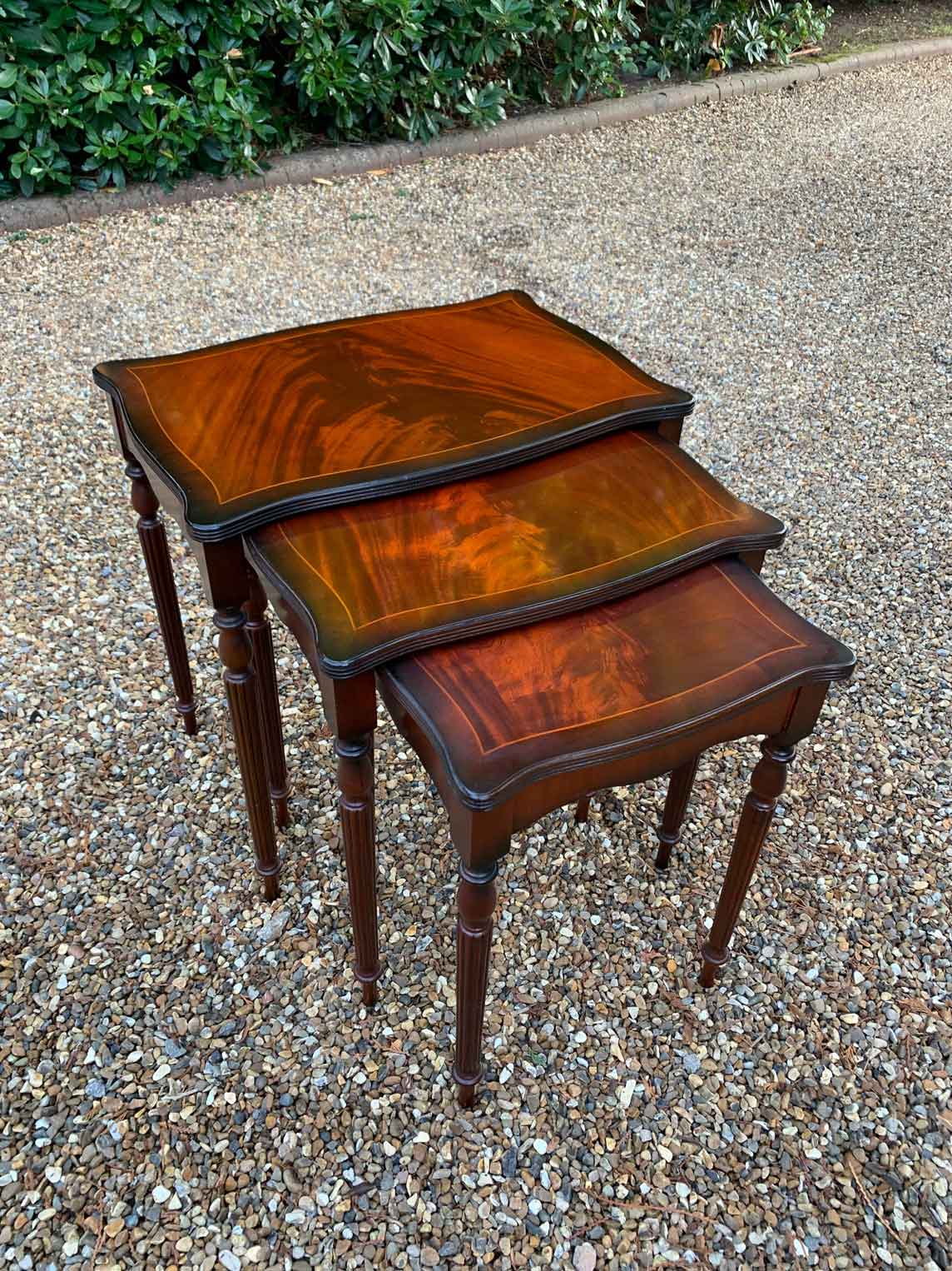 Mahogany Nest of tables, set of 3 with a reeded legs and inlay.