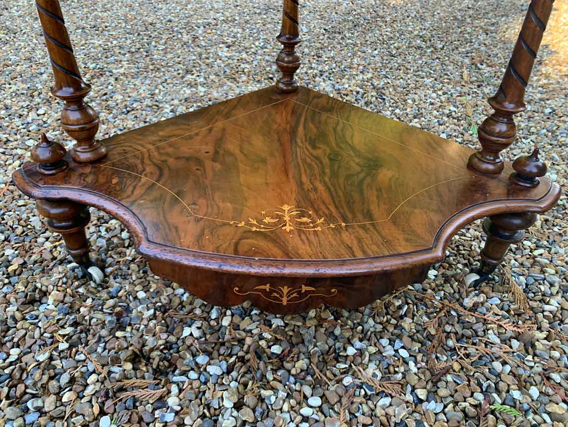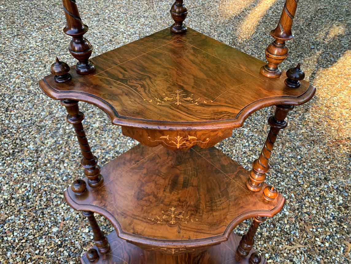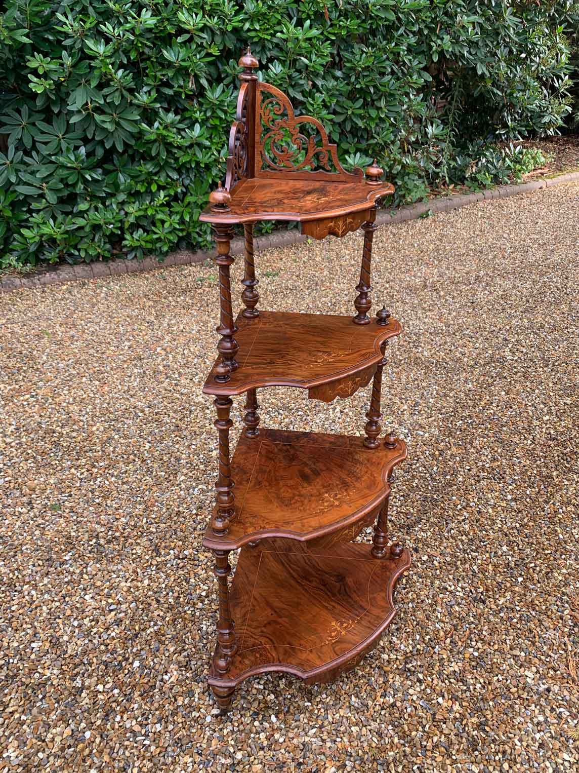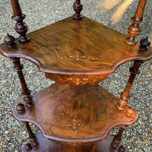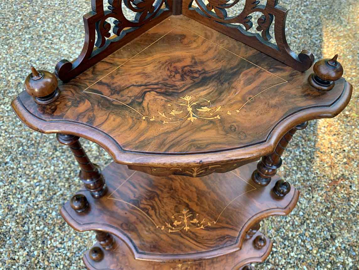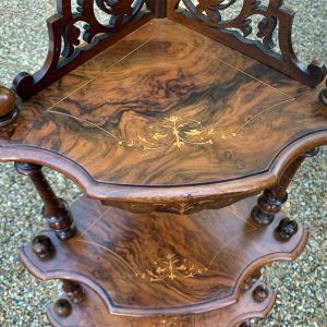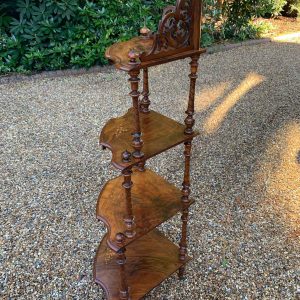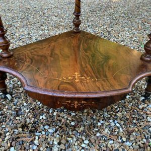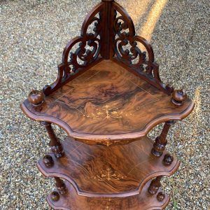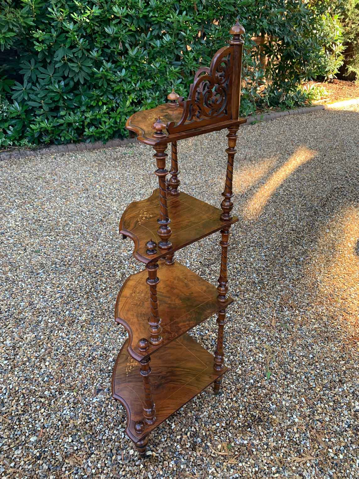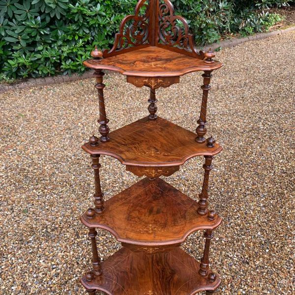 19th Century Victorian Burr Walnut Inlaid Corner Whatnot