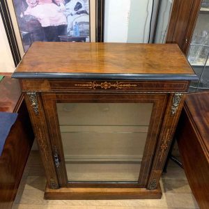 19th Century Victorian Burr Walnut Inlaid Pier Cabinet