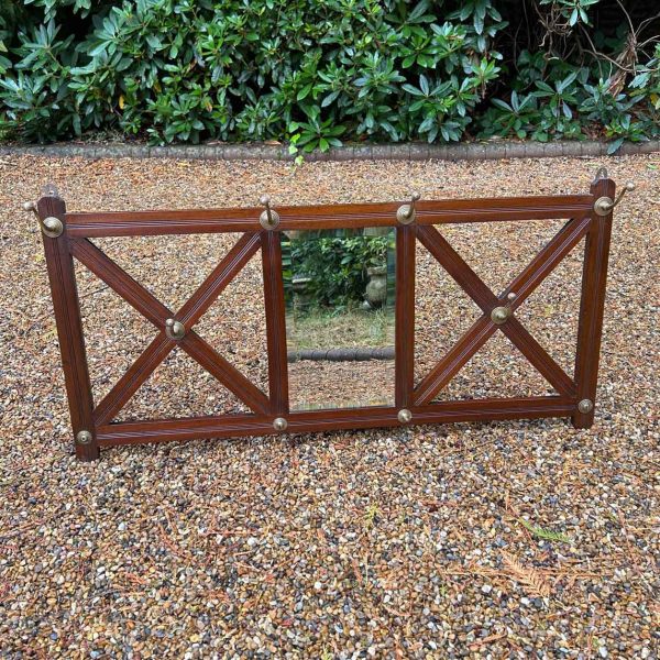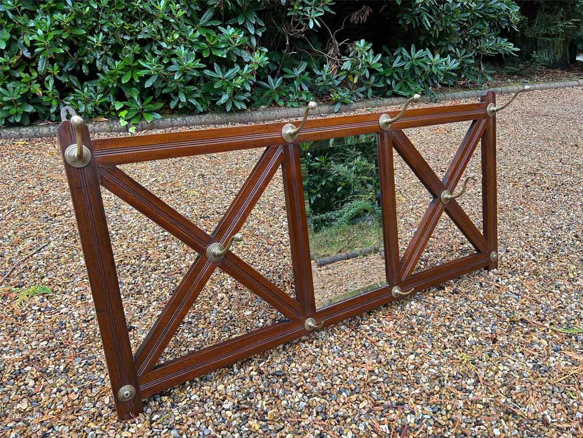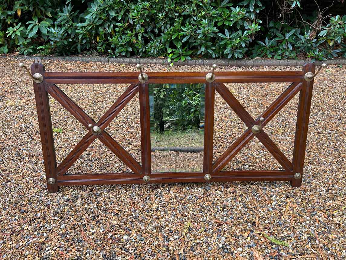 19th Century Mahogany Hanging Coat Rack with brass fittings and a bevelled mirror