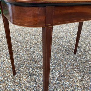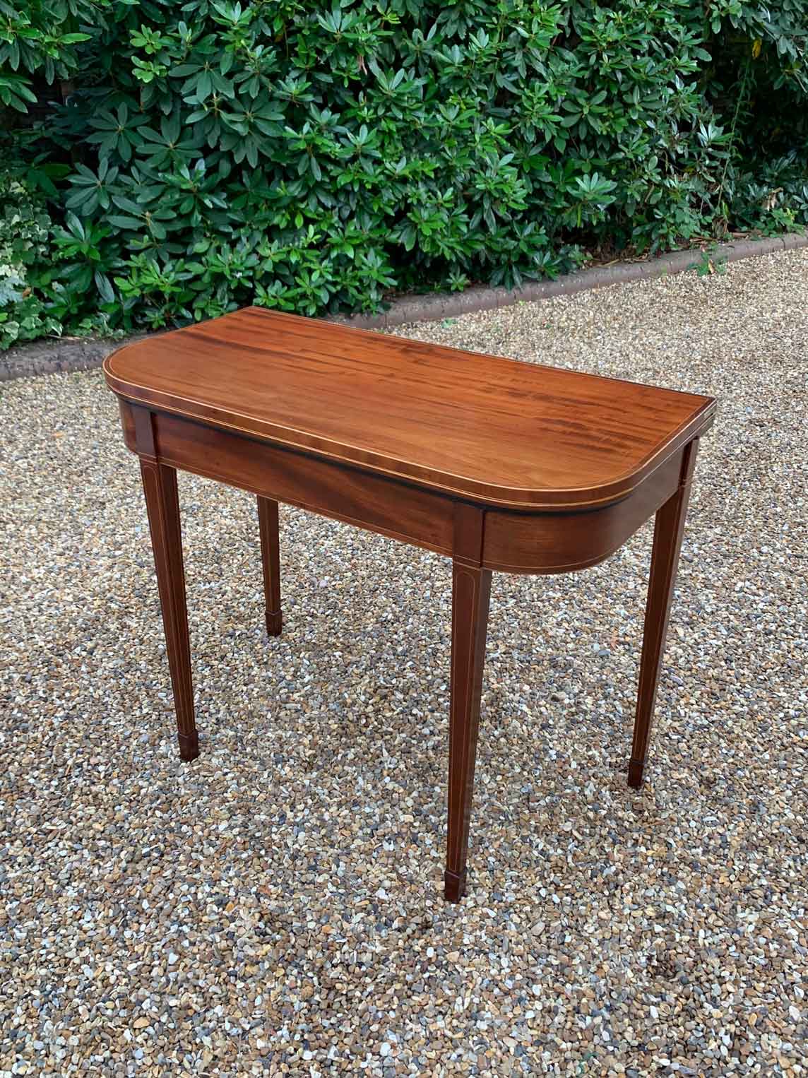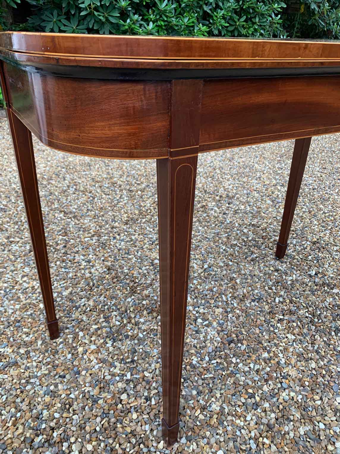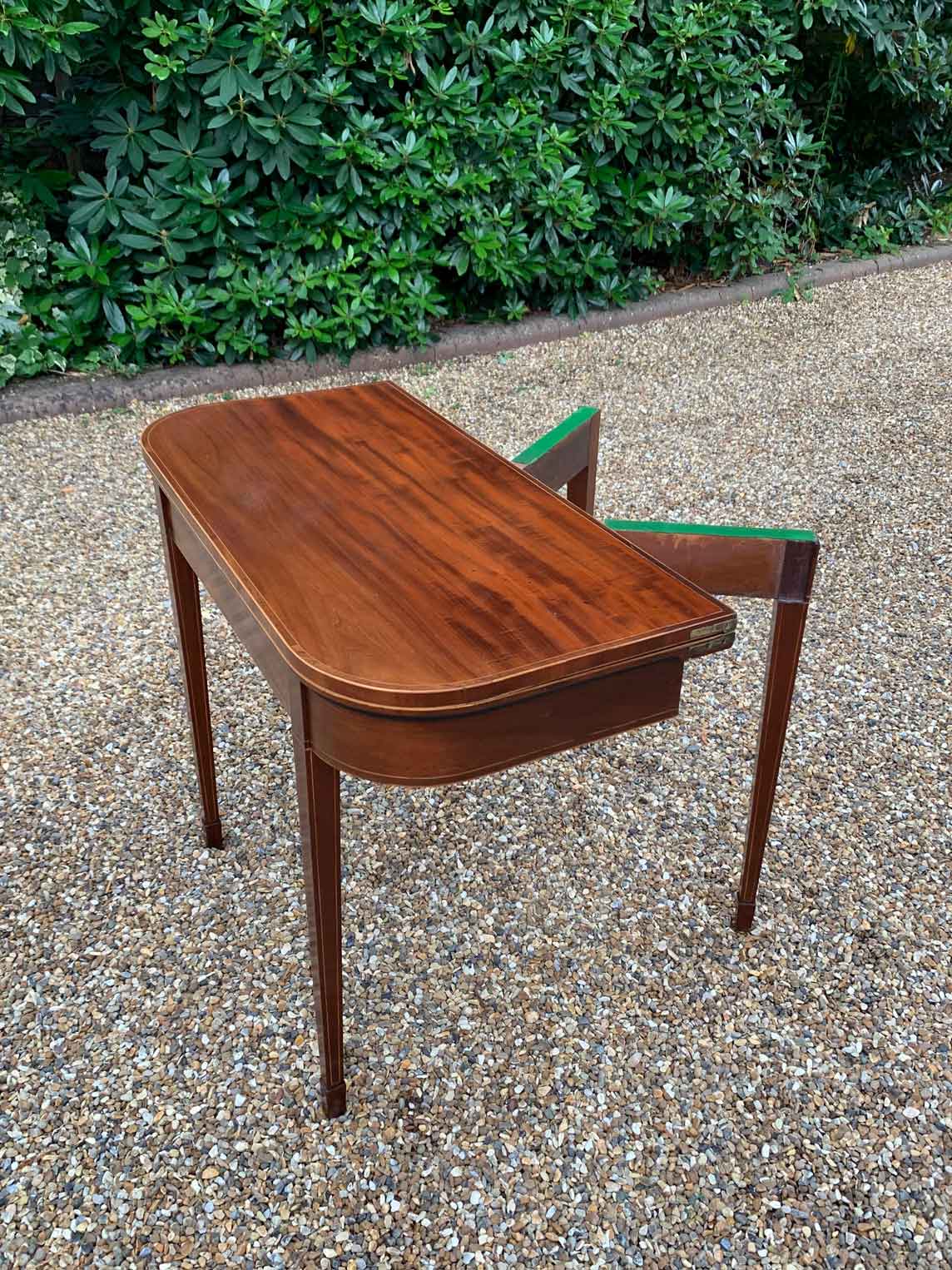Georgian Mahogany Inlaid D-Shaped Card Table with inlay and banding, on square tapering legs and spade feet with a green baize inside.