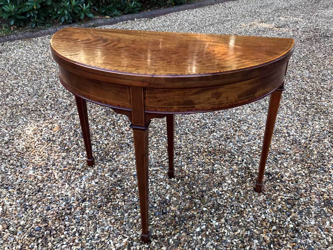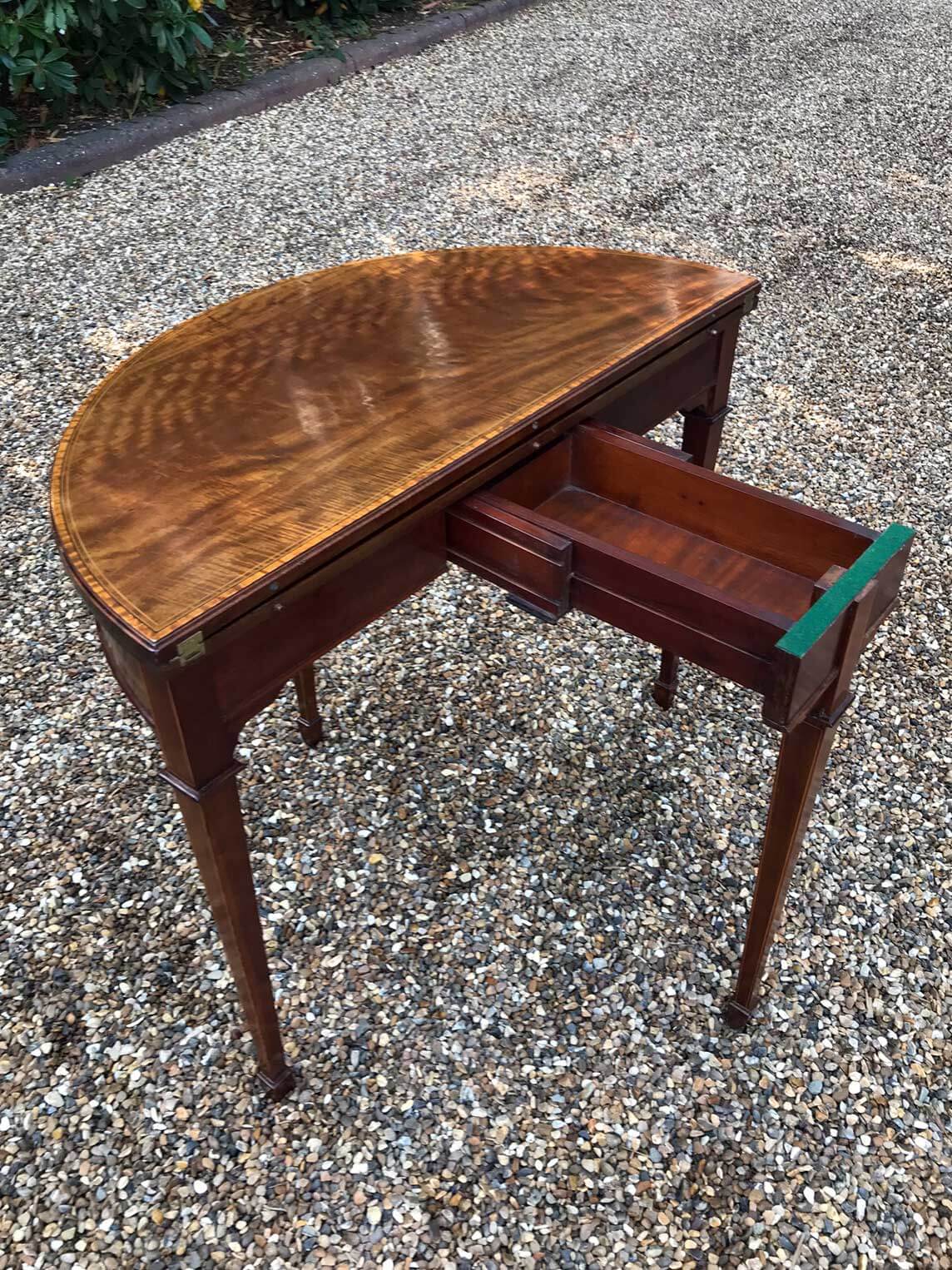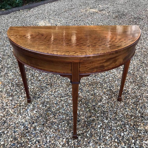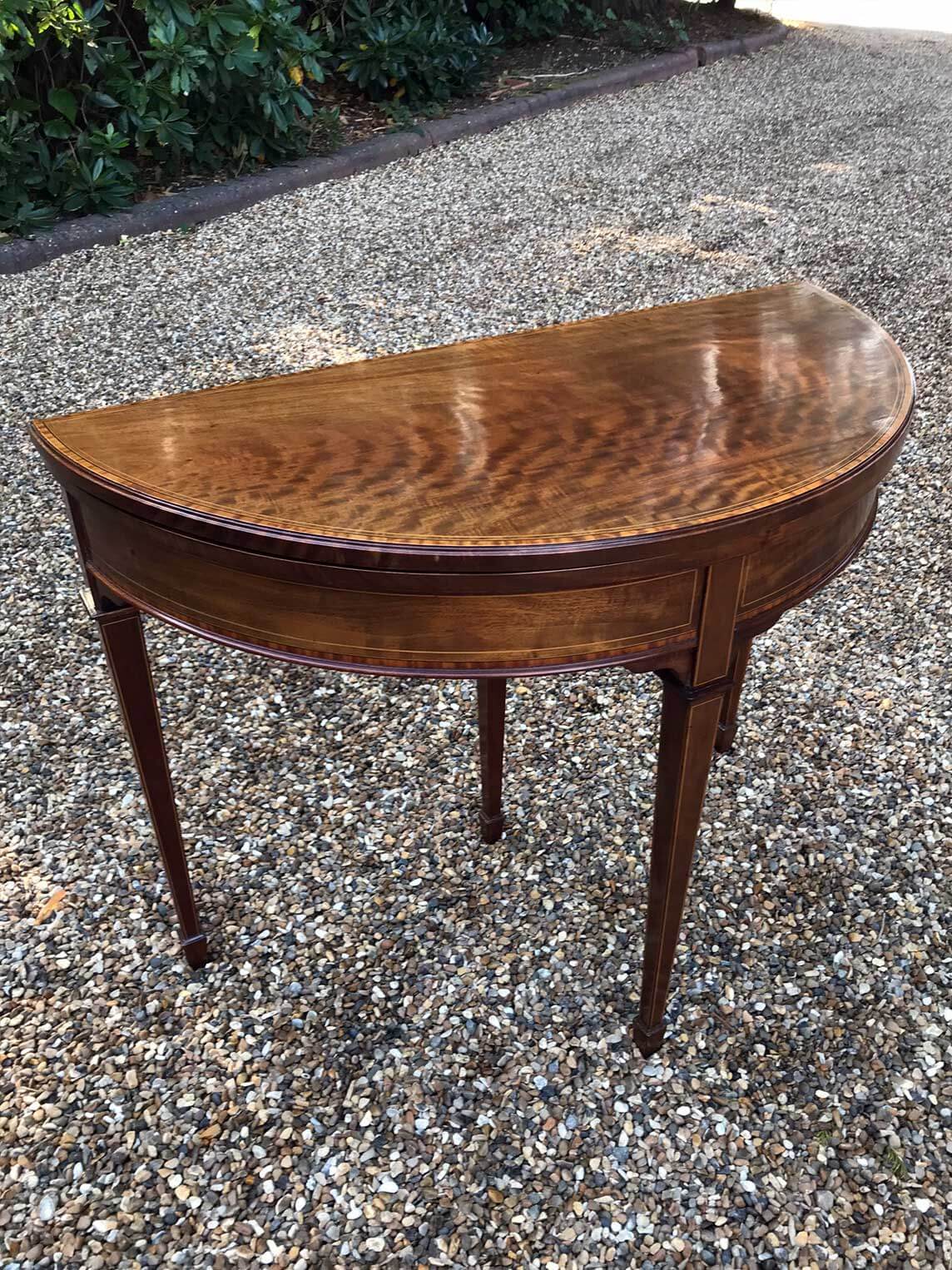 Georgian Mahogany Inlaid Demi Lune Card Table