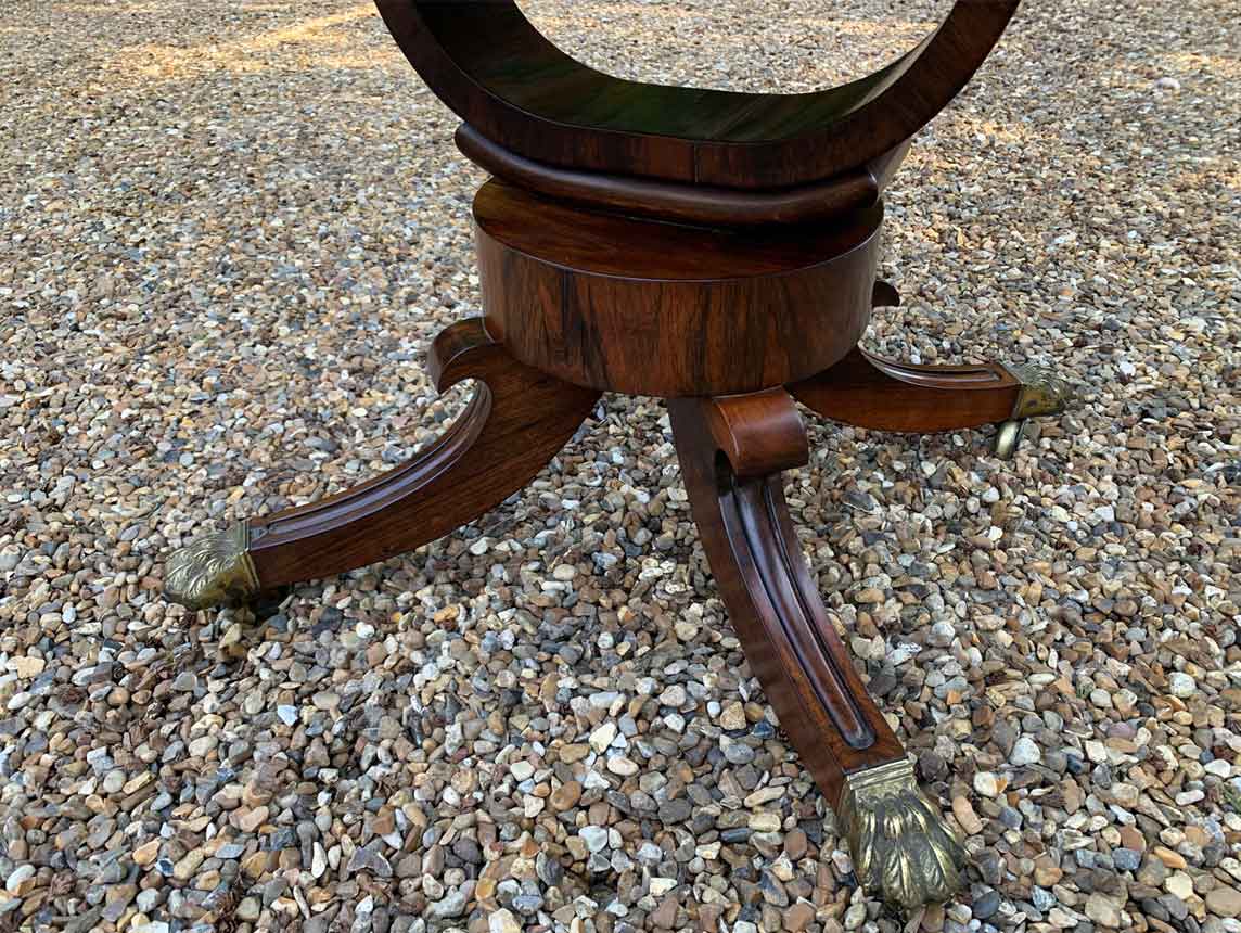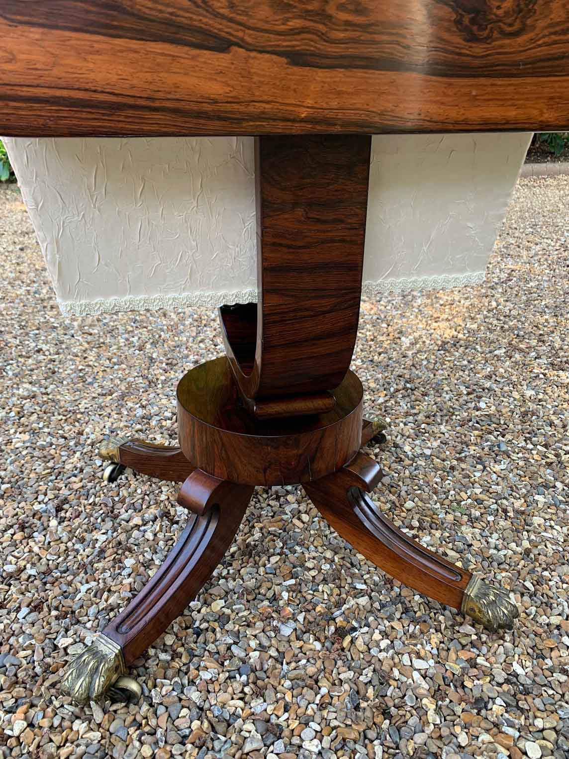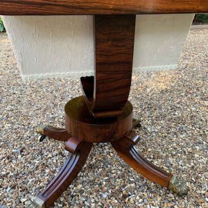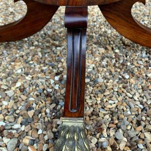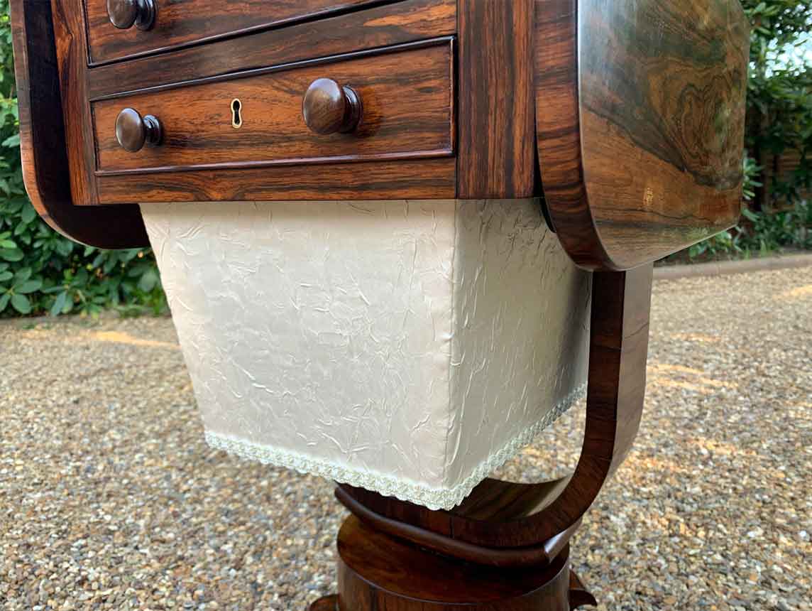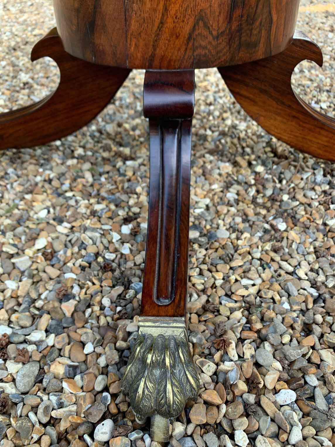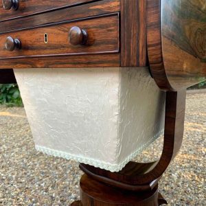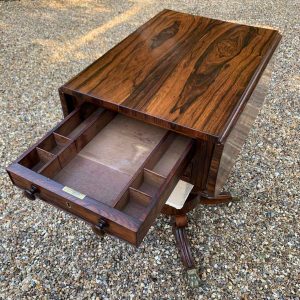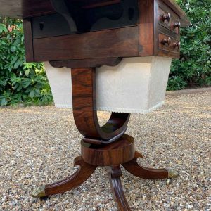 A Regency Rosewood Drop Leaf Work Table, fitted with a drawer and well, on a platform base