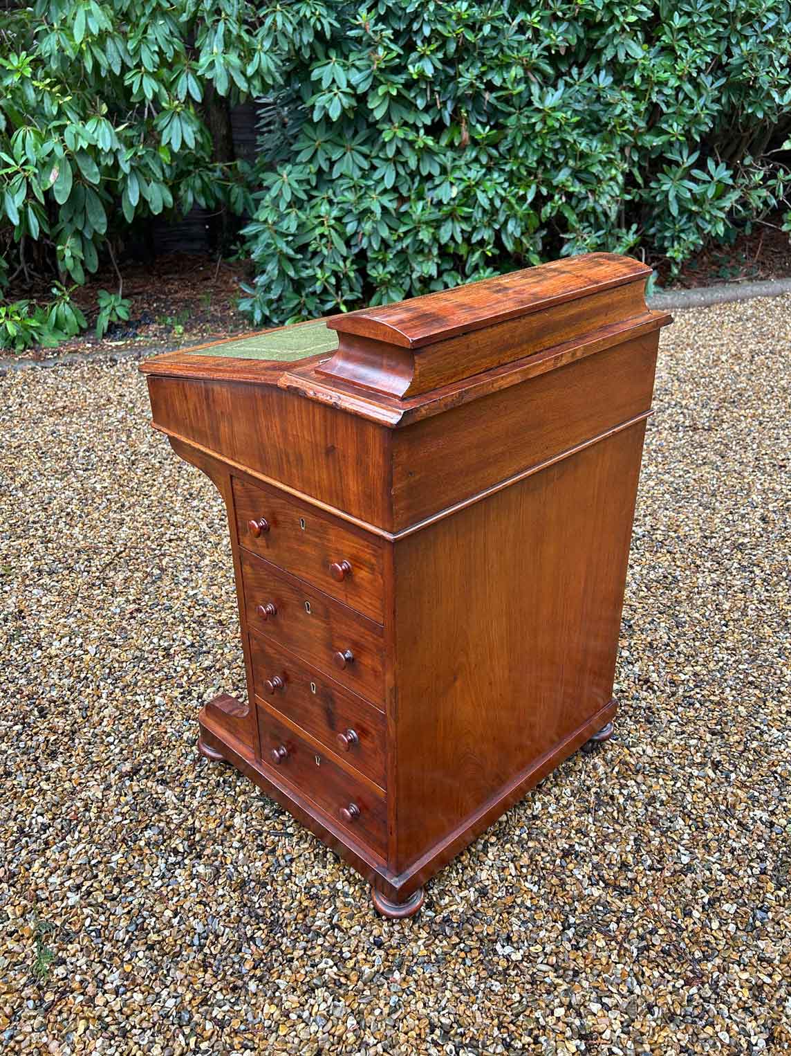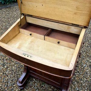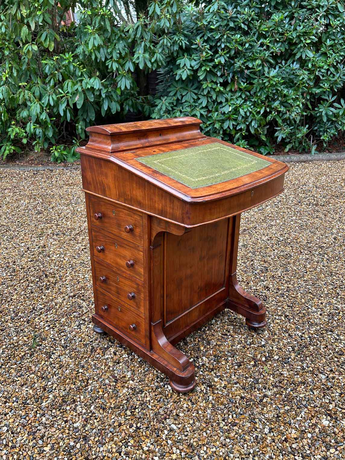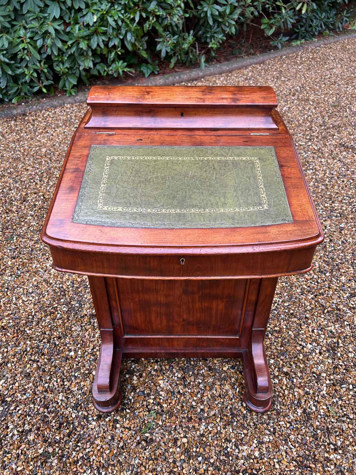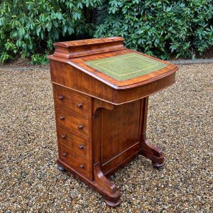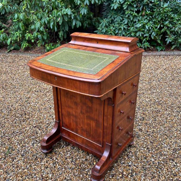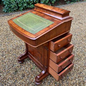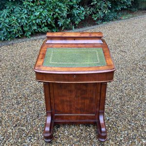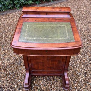 19th Century Victorian Mahogany Davenport with a sloping green leather writing surface.