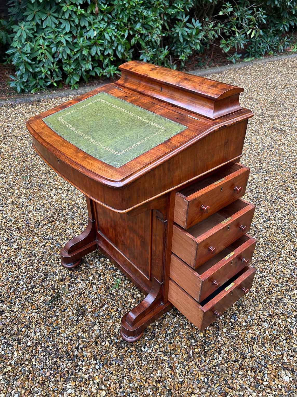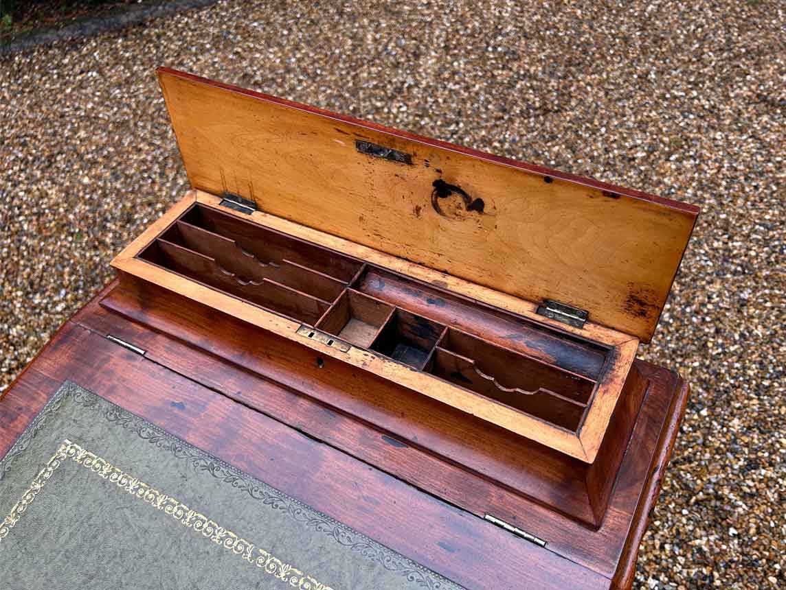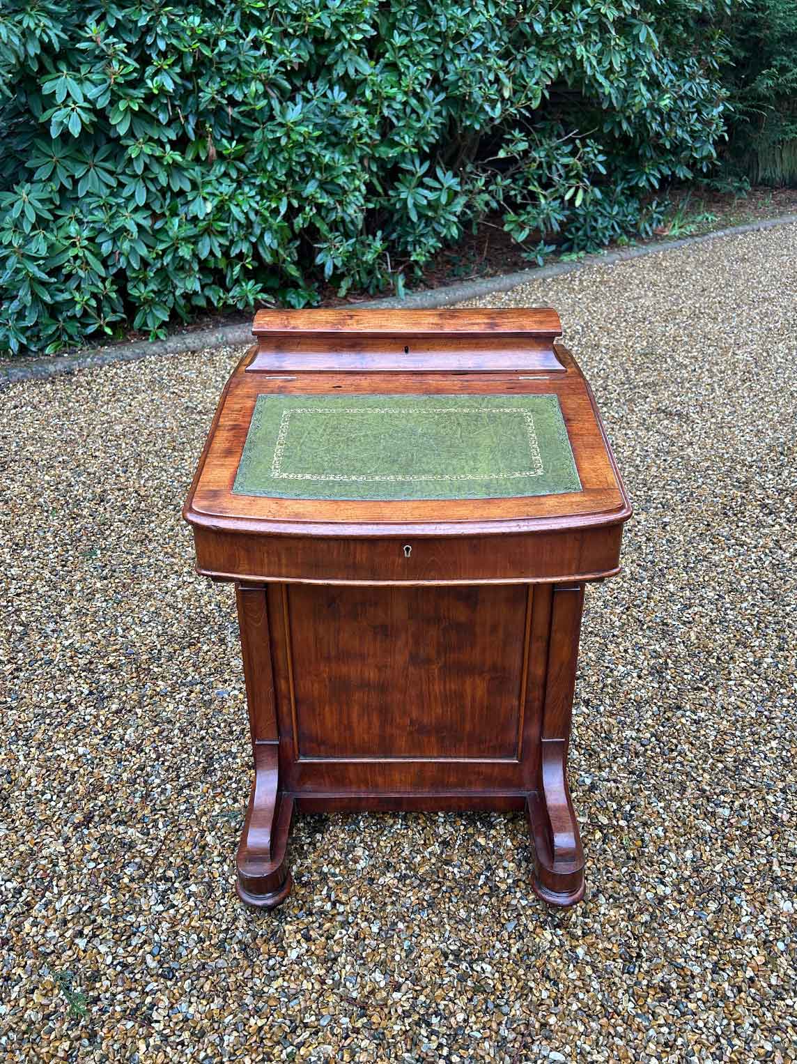 19th Century Victorian Mahogany Davenport with a sloping green leather writing surface.