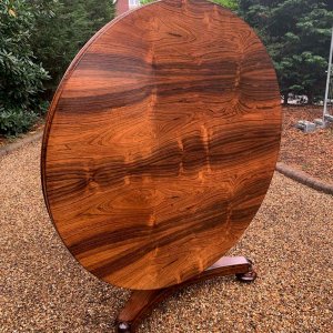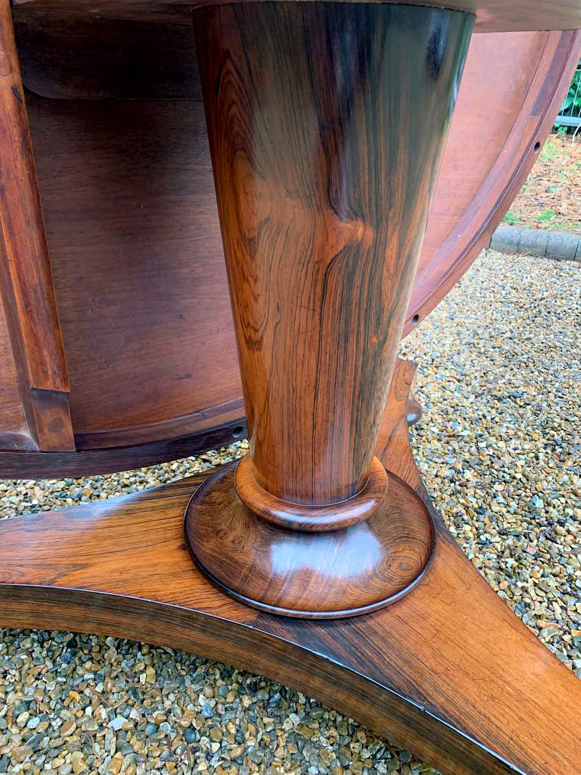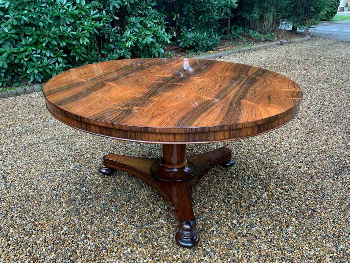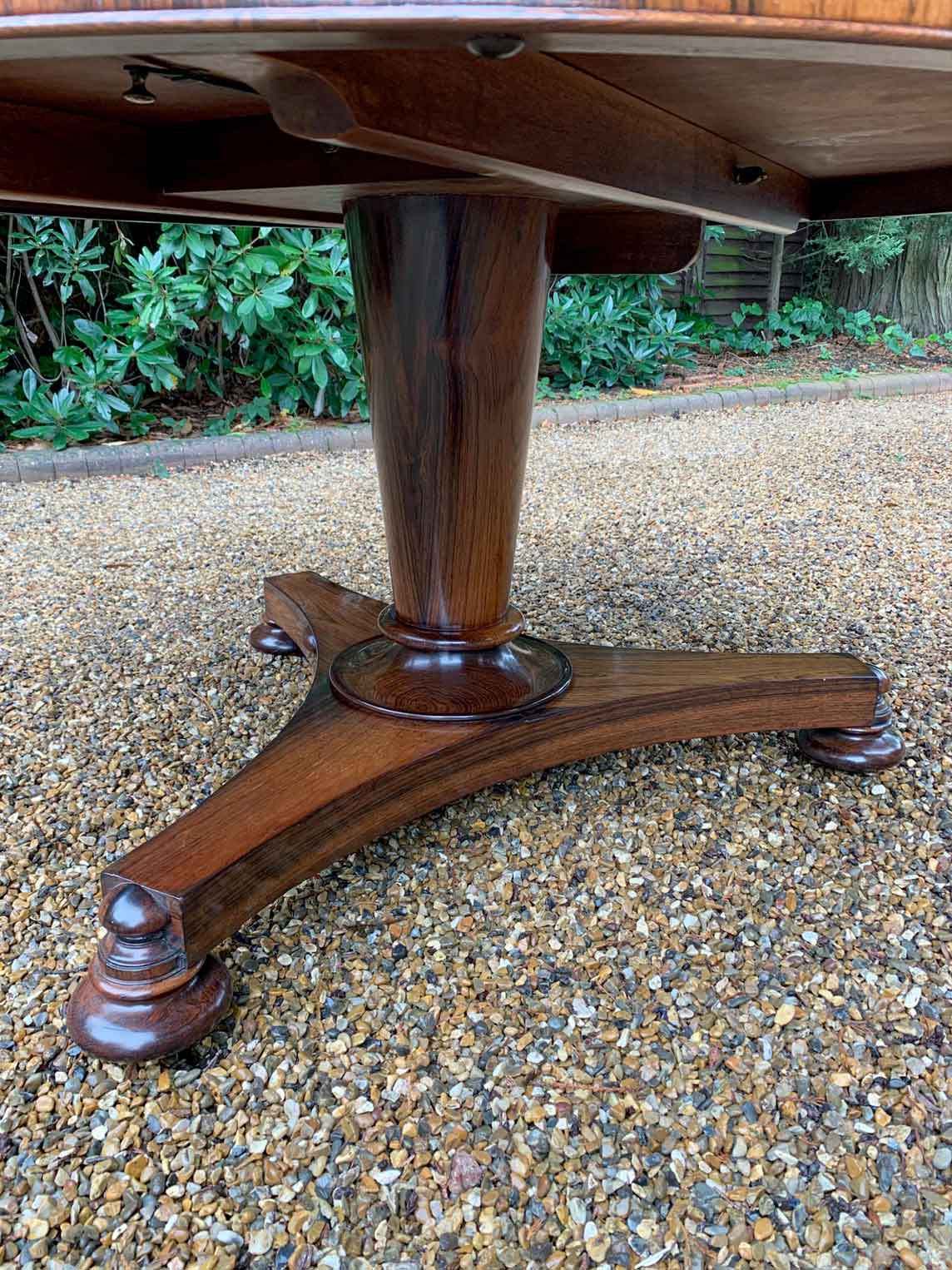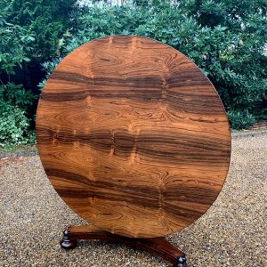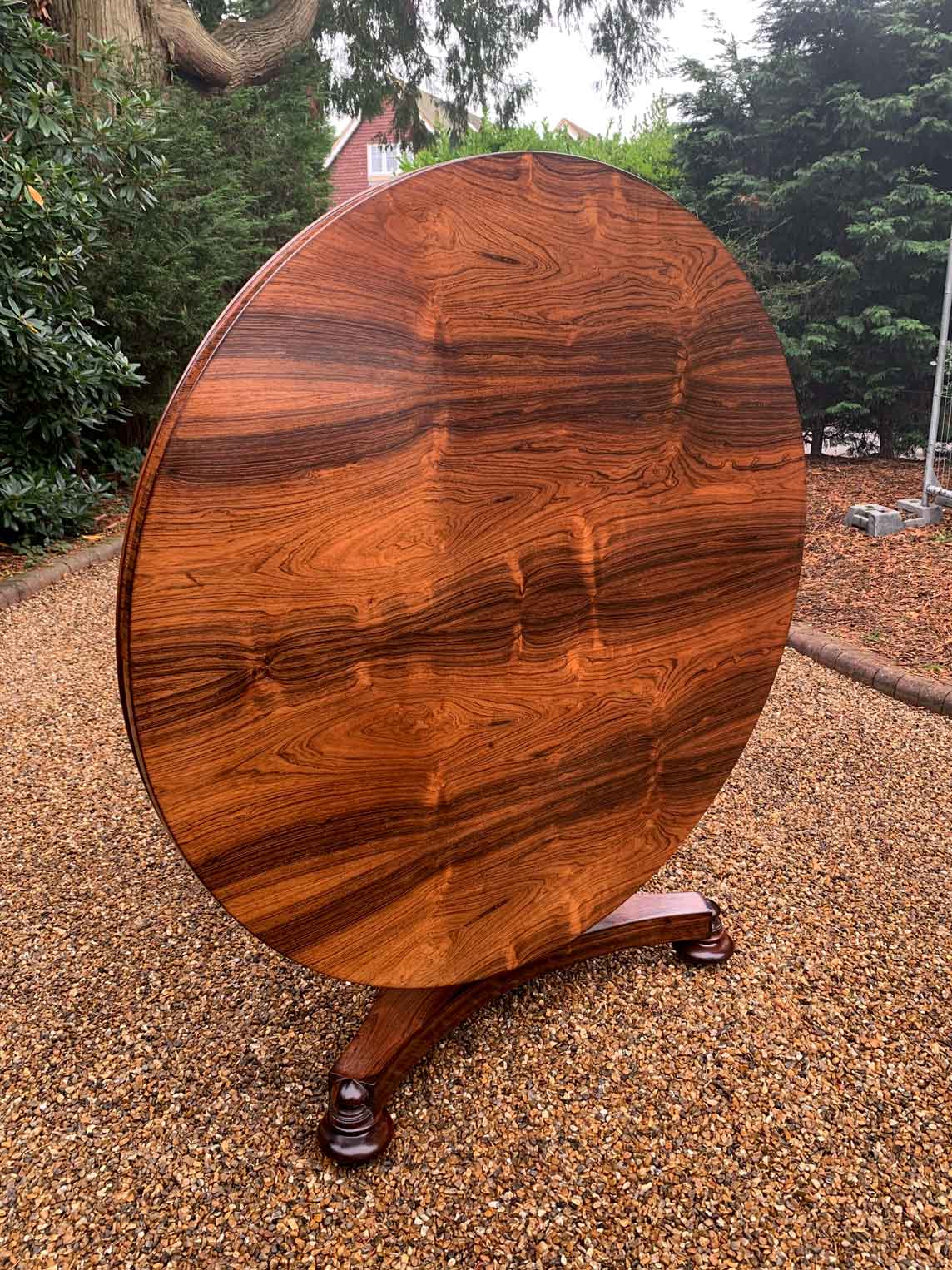 A very high quality 19th Century William IV Rosewood Tilt-Top Breakfast Table, raised on a turned and carved baluster column and three legs on castors.
