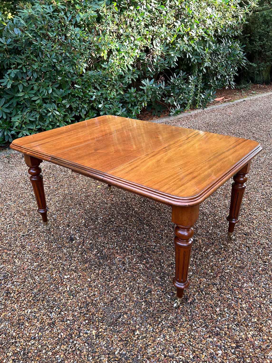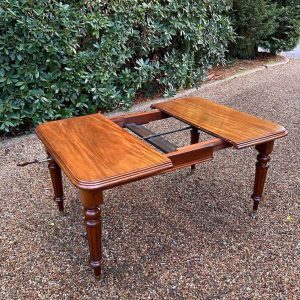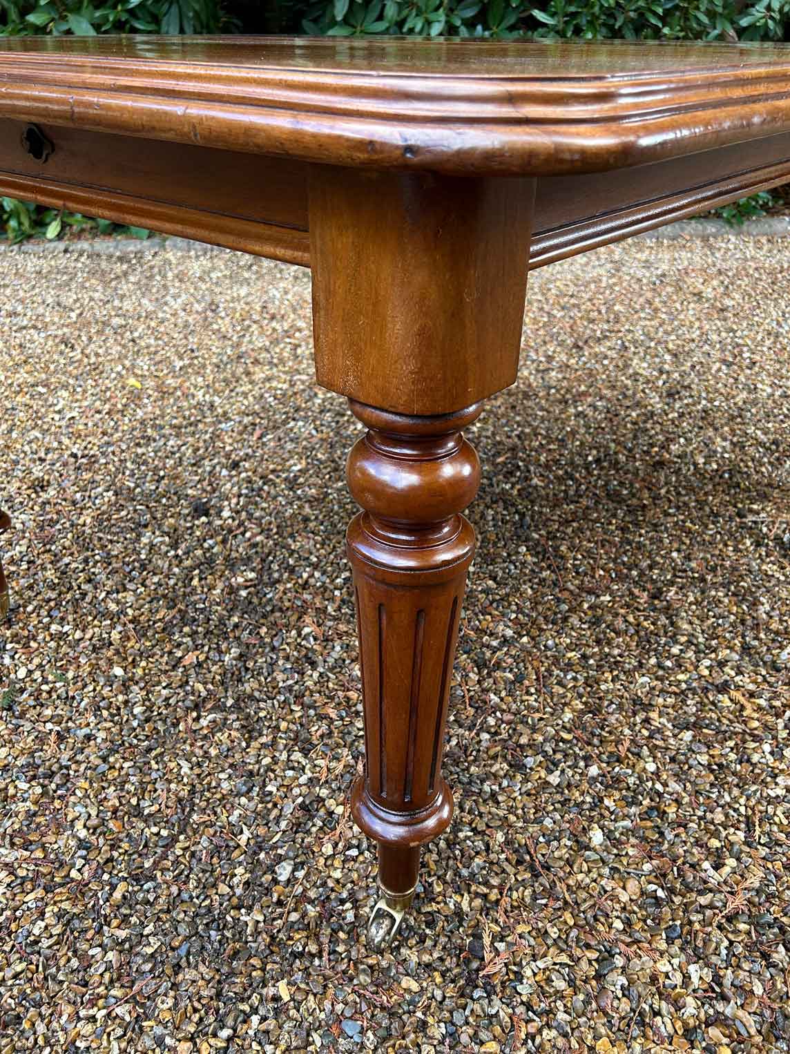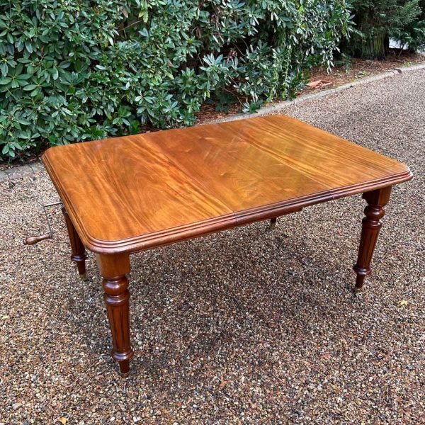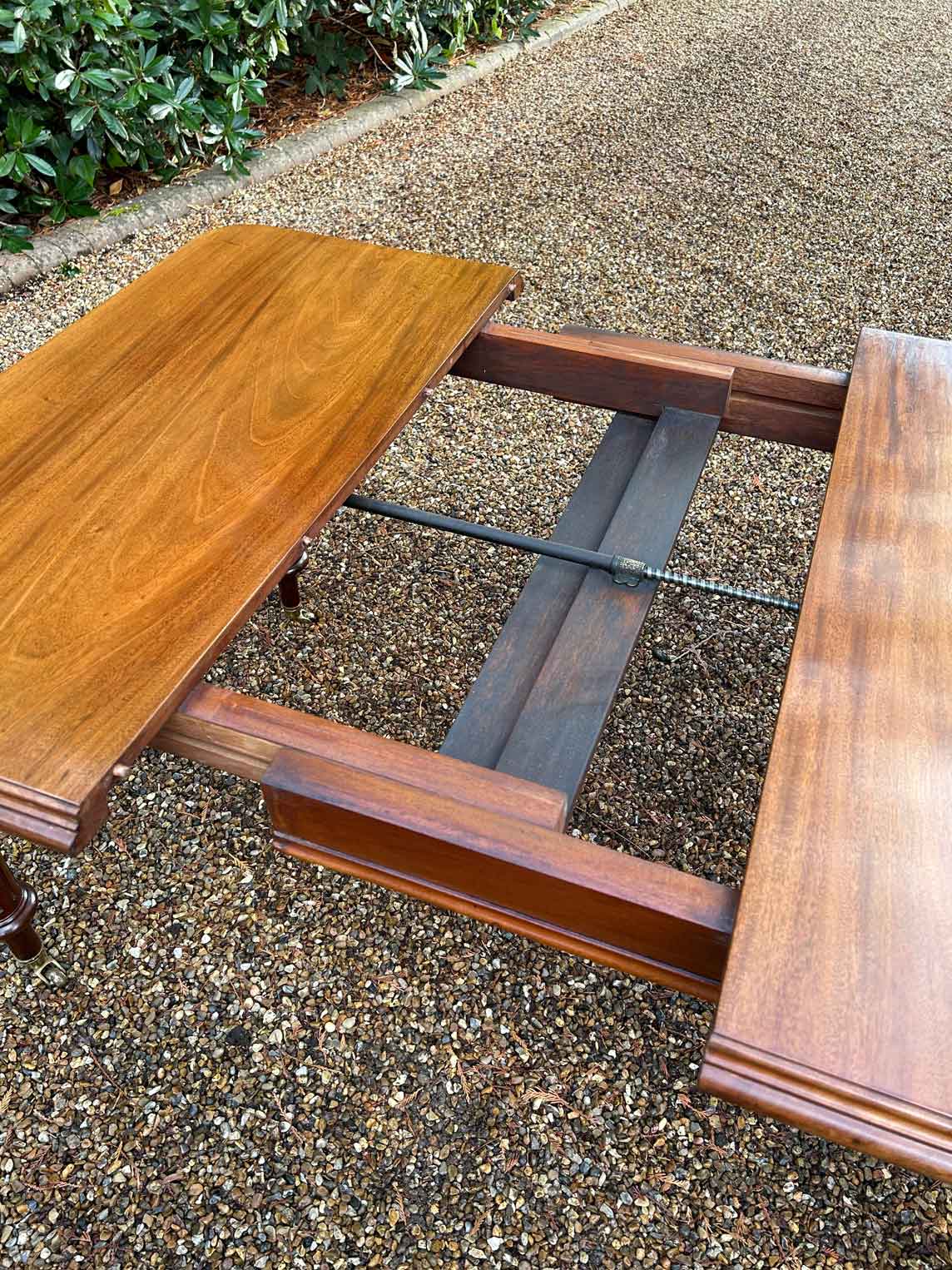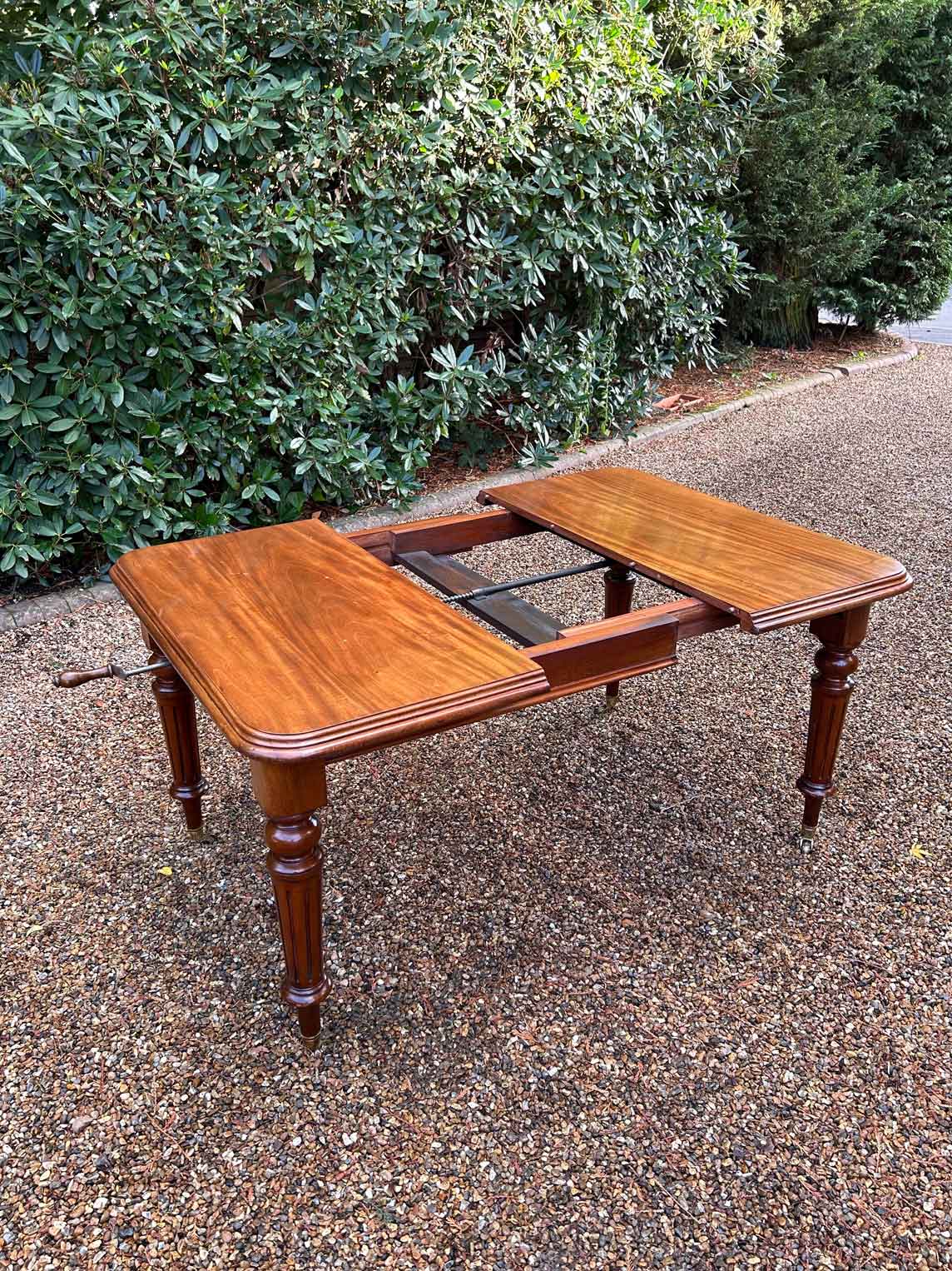 A very high quality 19th Century Victorian Mahogany Windout Dining Table, with a rectangular top and one extra original solid mahogany leaf, raised on turned reeded legs, terminating in brass castors. Including Windout Handle.
