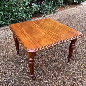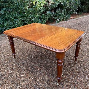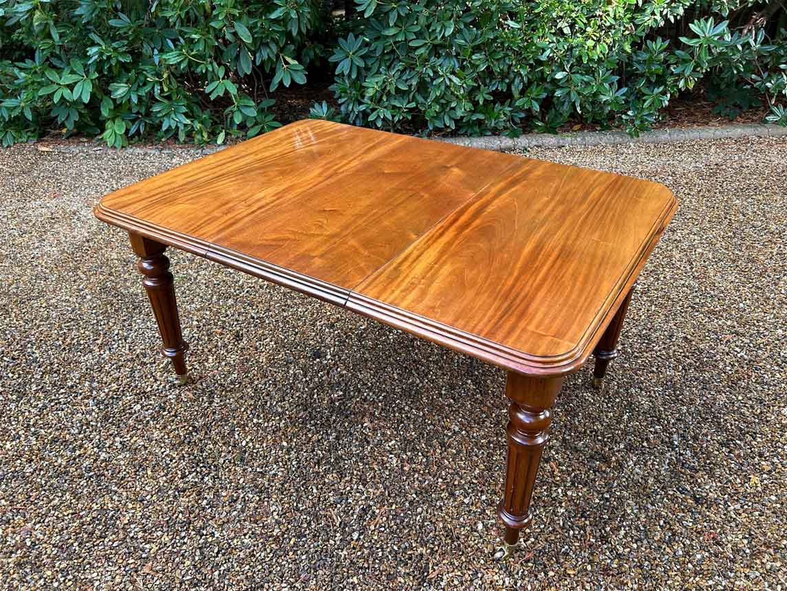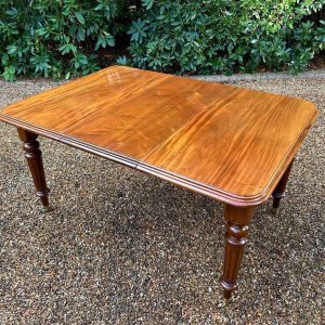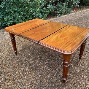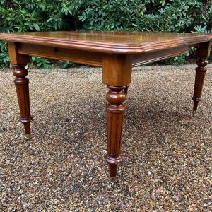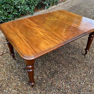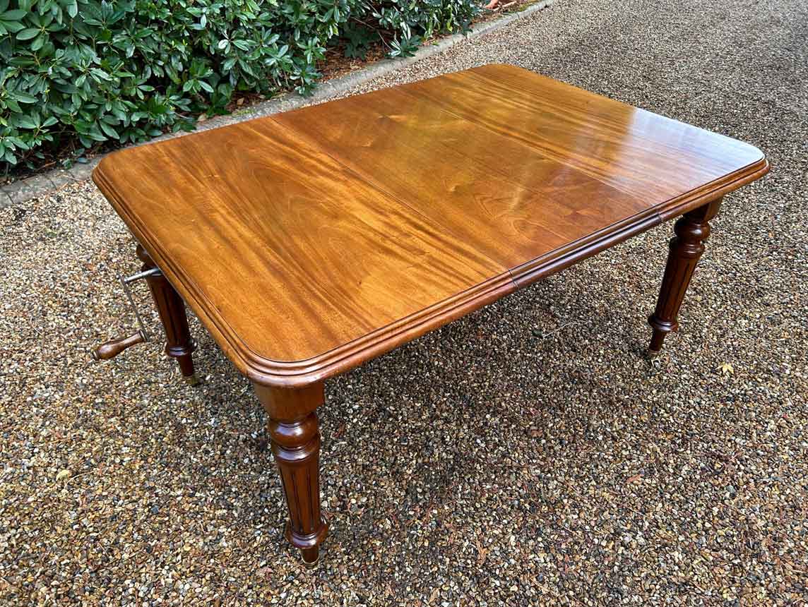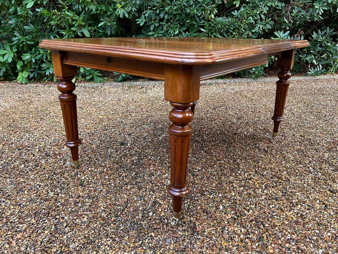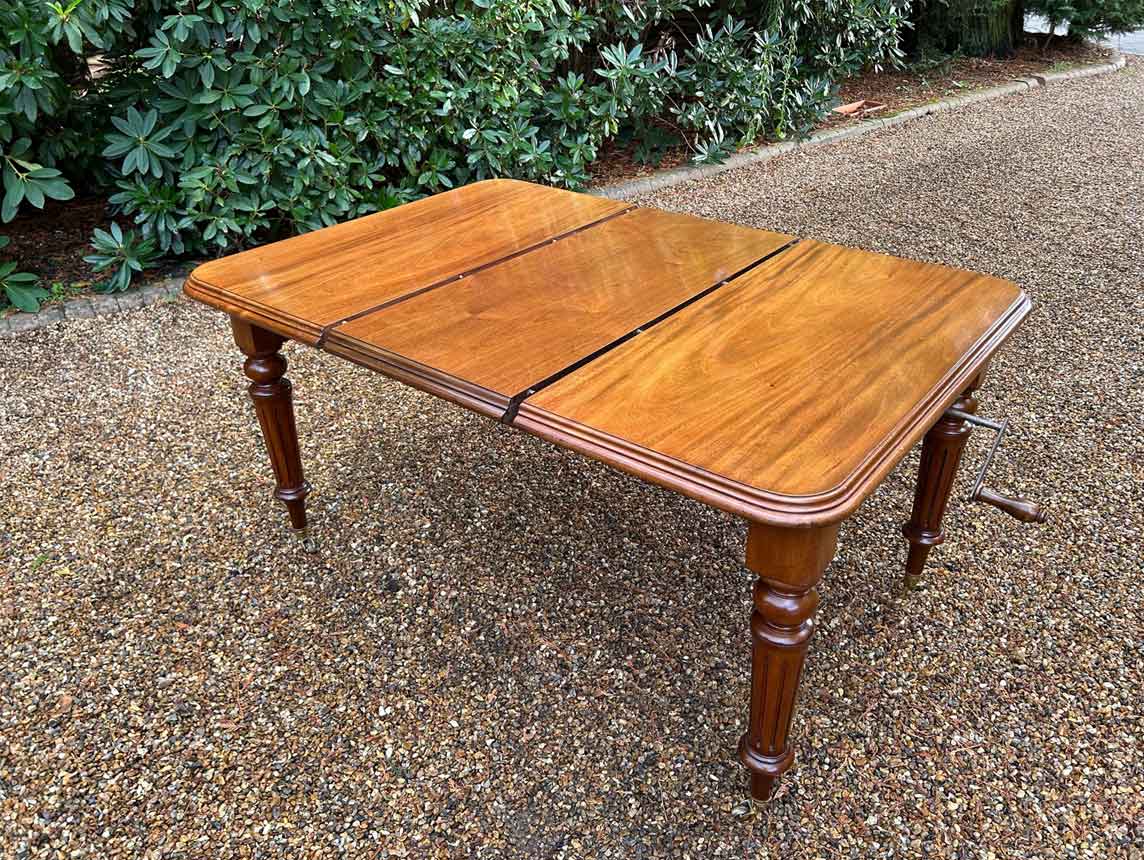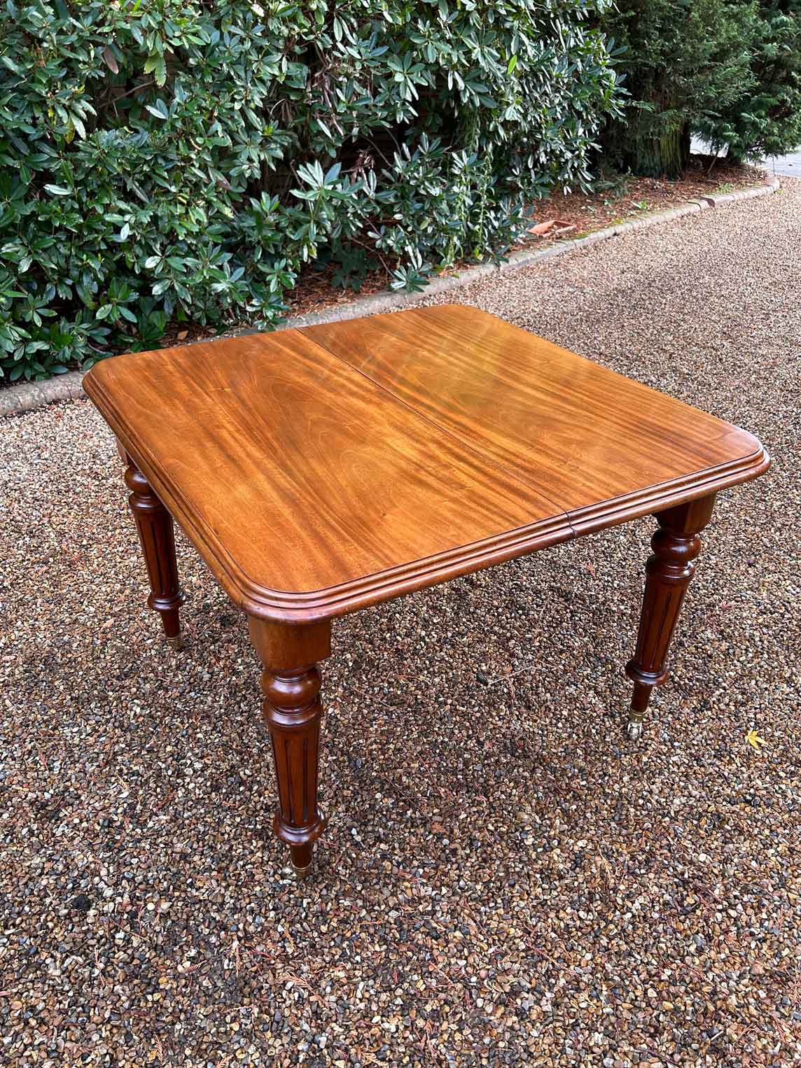 A very high quality 19th Century Victorian Mahogany Windout Dining Table, with a rectangular top and one extra original solid mahogany leaf, raised on turned reeded legs, terminating in brass castors. Including Windout Handle.
