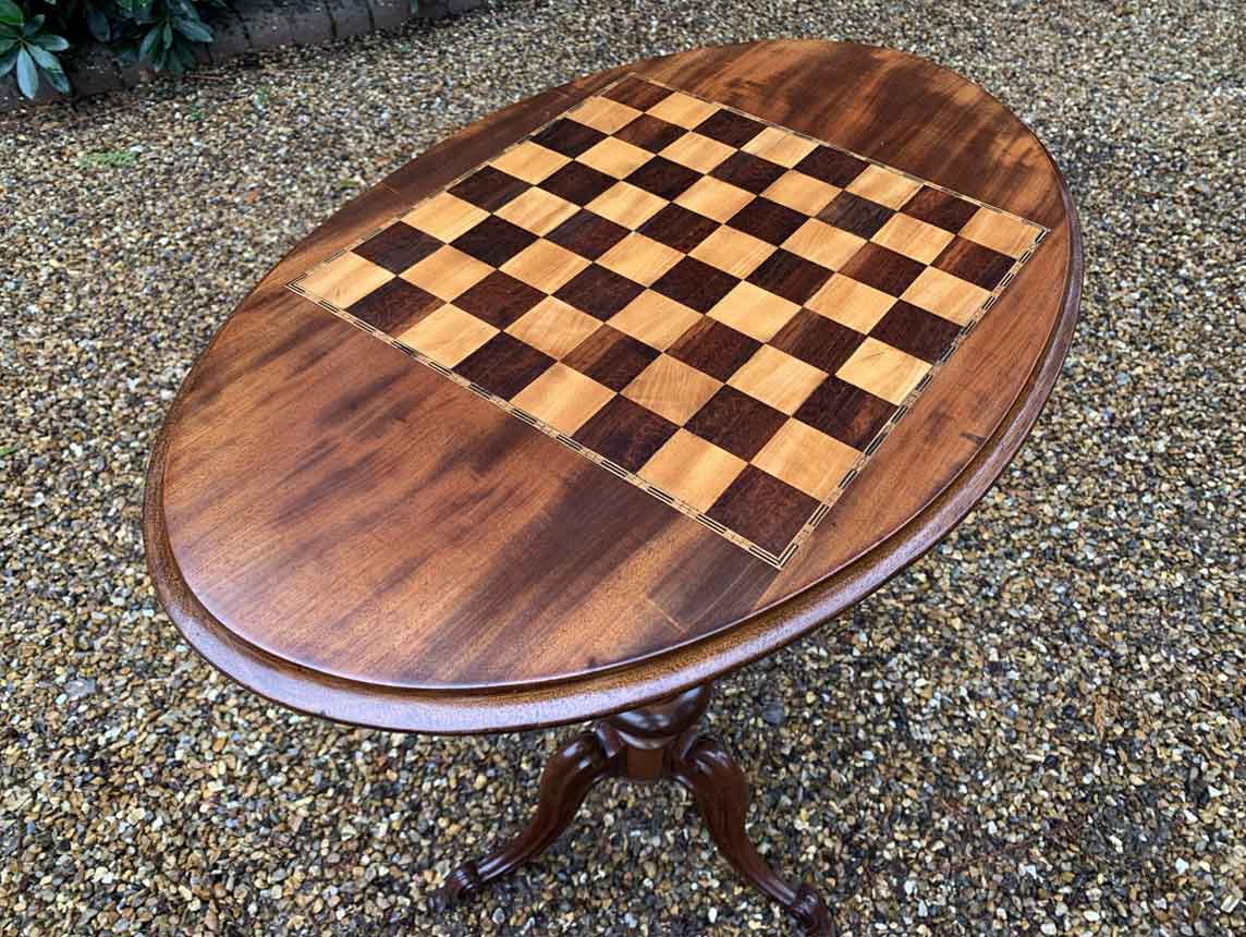 3. Victorian Mahogany Oval Chess Table