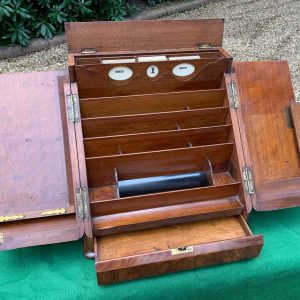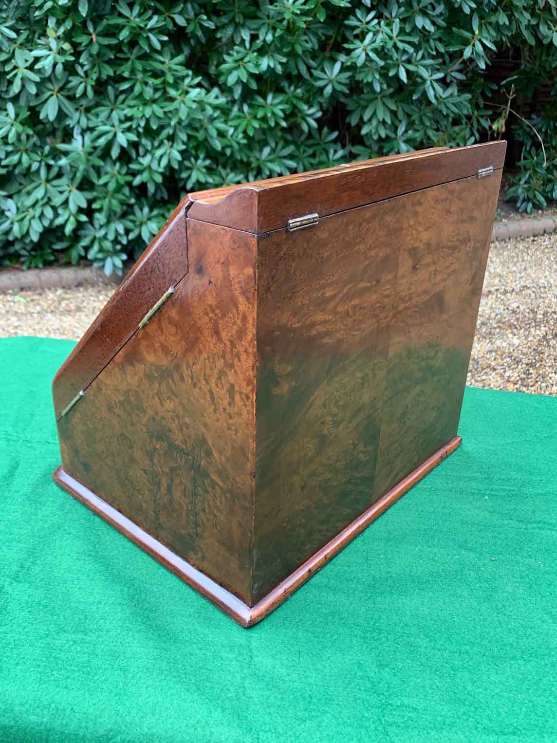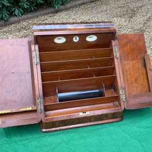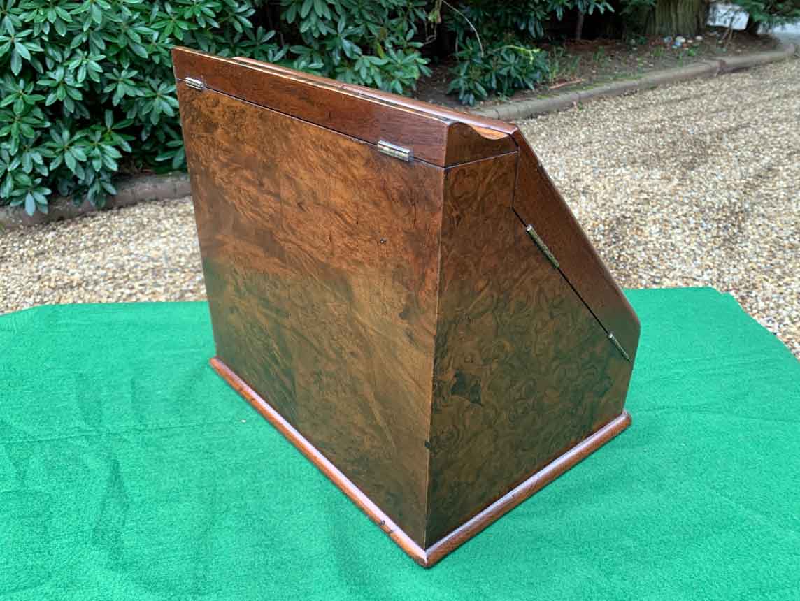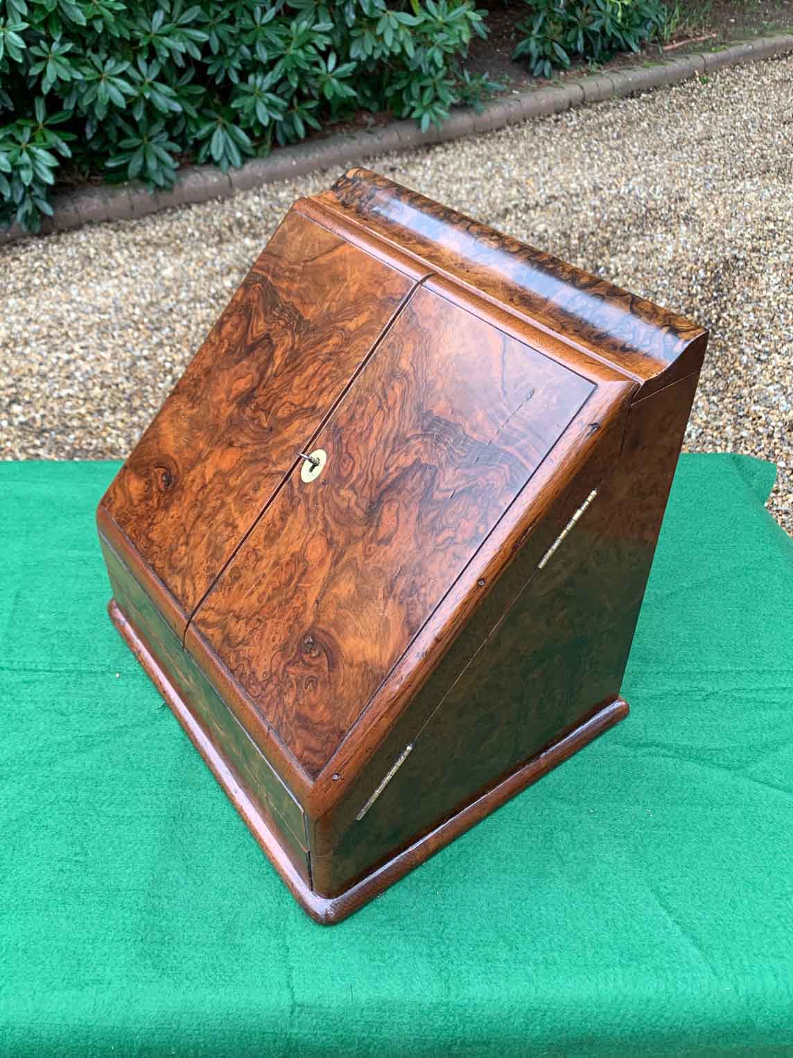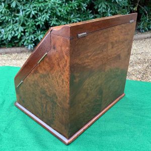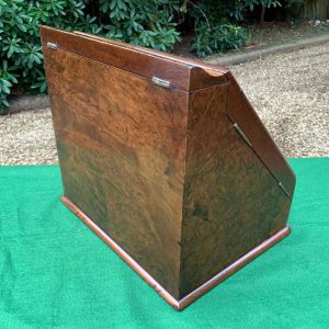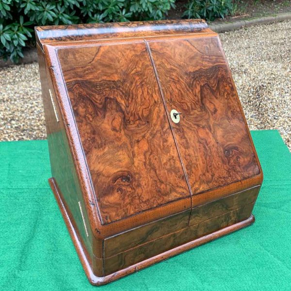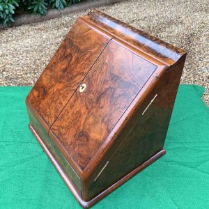 19th Century Victorian, Burr Walnut Stationary Cabinet / Box, with sloping hinged doors, enclosing letter compartment and a drawer. This Victorian stationary cabinet retains its original finish, colour and patina, it’s in excellent condition throughout, ready to place at home. Would make a prefect gift.