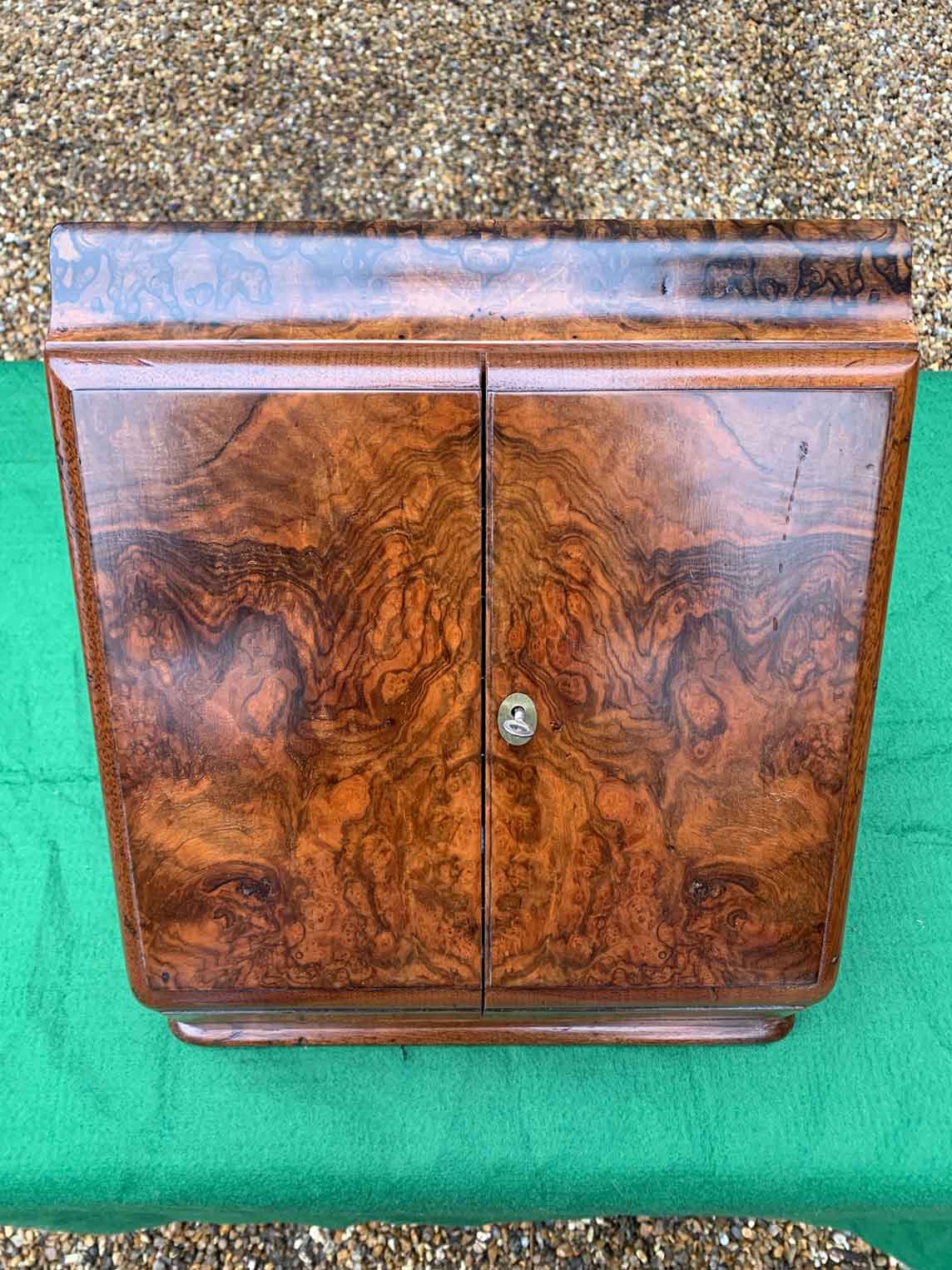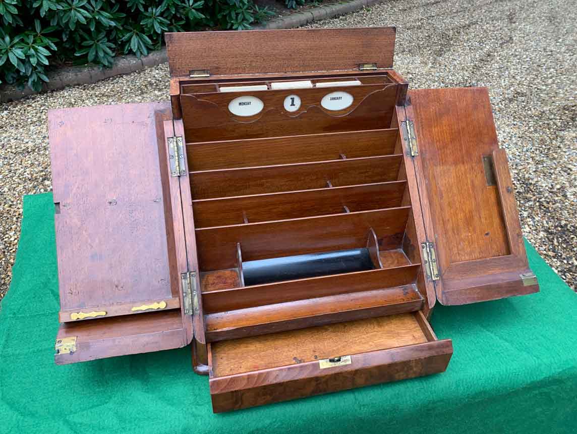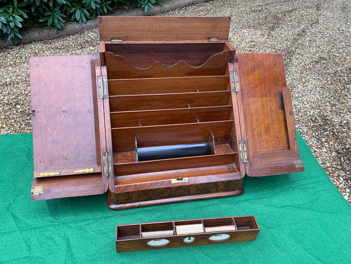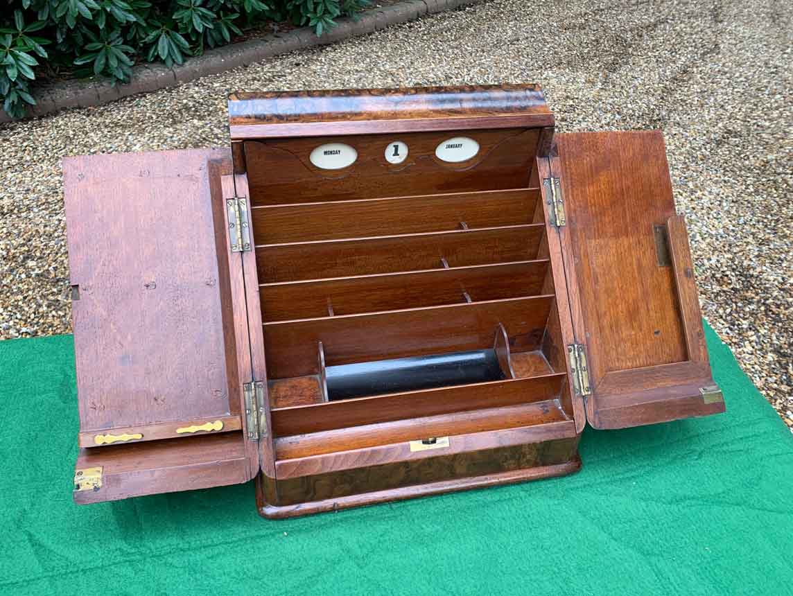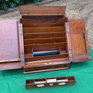 19th Century Victorian, Burr Walnut Stationary Cabinet / Box, with sloping hinged doors, enclosing letter compartment and a drawer. This Victorian stationary cabinet retains its original finish, colour and patina, it’s in excellent condition throughout, ready to place at home. Would make a prefect gift.