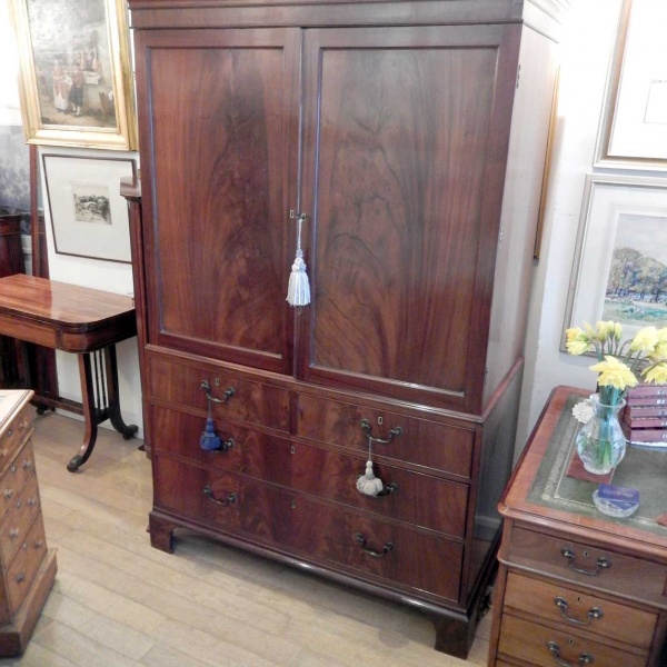 19th Century George III Mahogany Linen Press