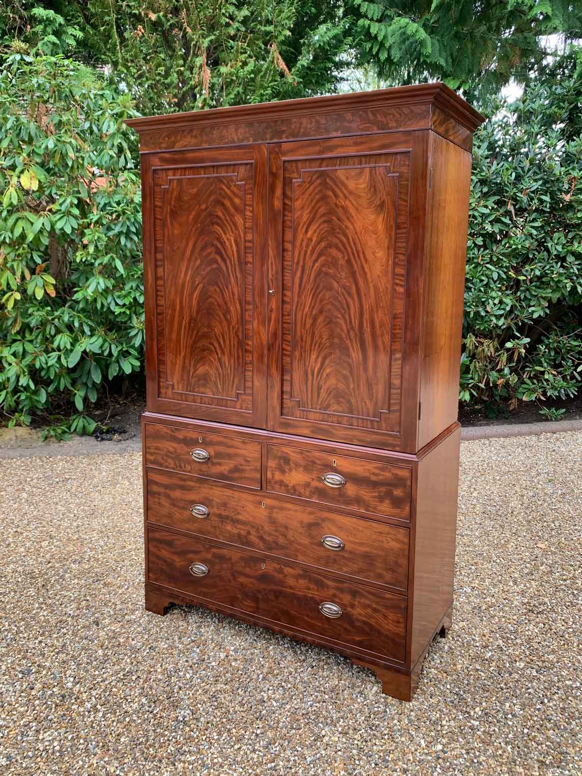 19th Century George III Mahogany Linen Press