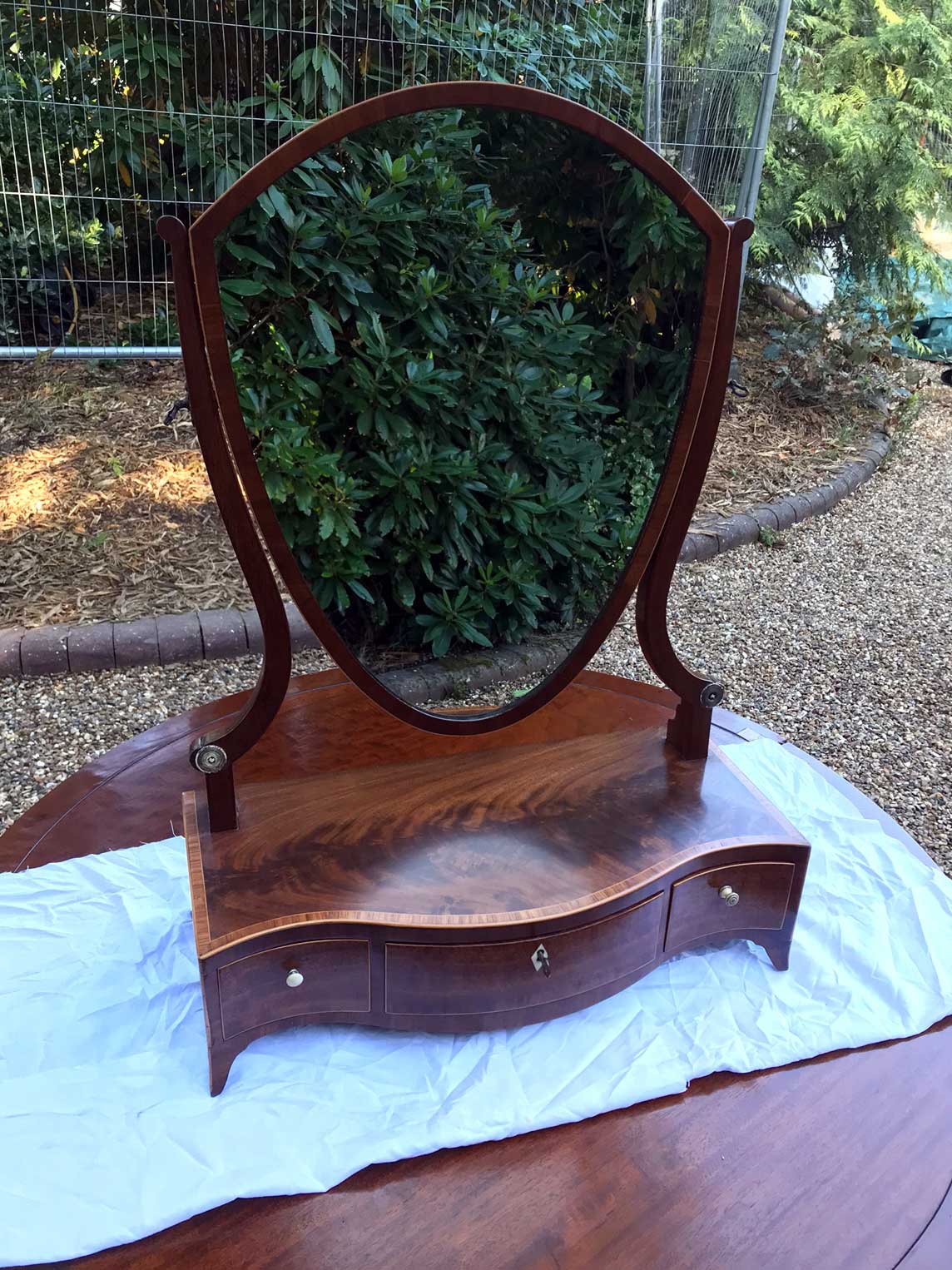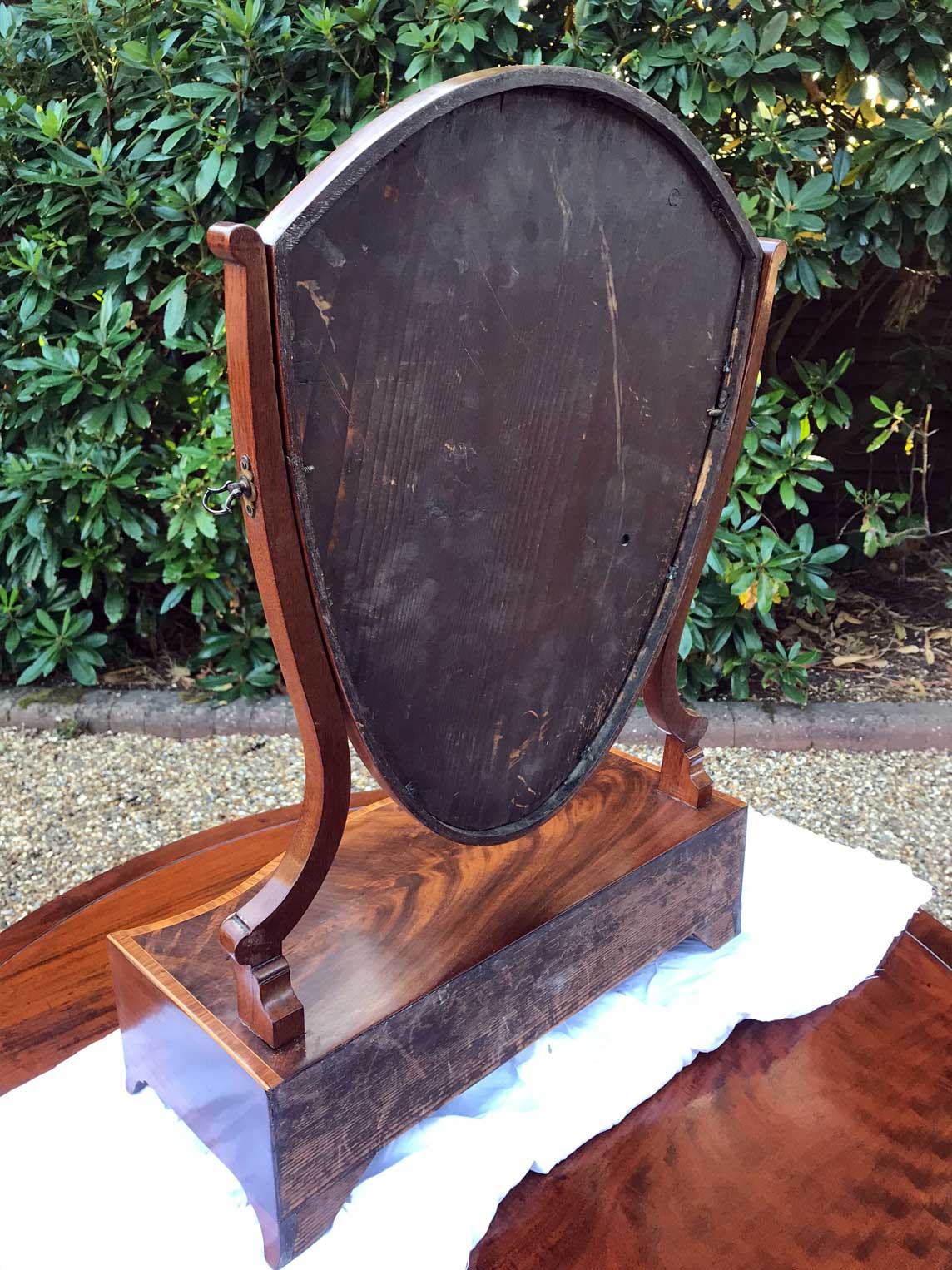 19th Century Georgian Mahogany Shield Shaped Serpentine Dressing Mirror with three drawers to base.