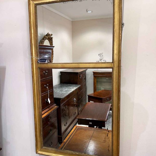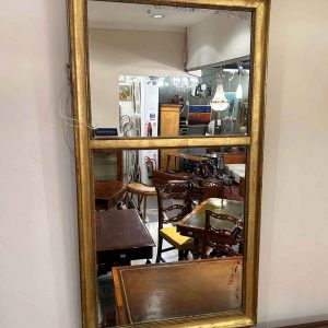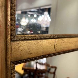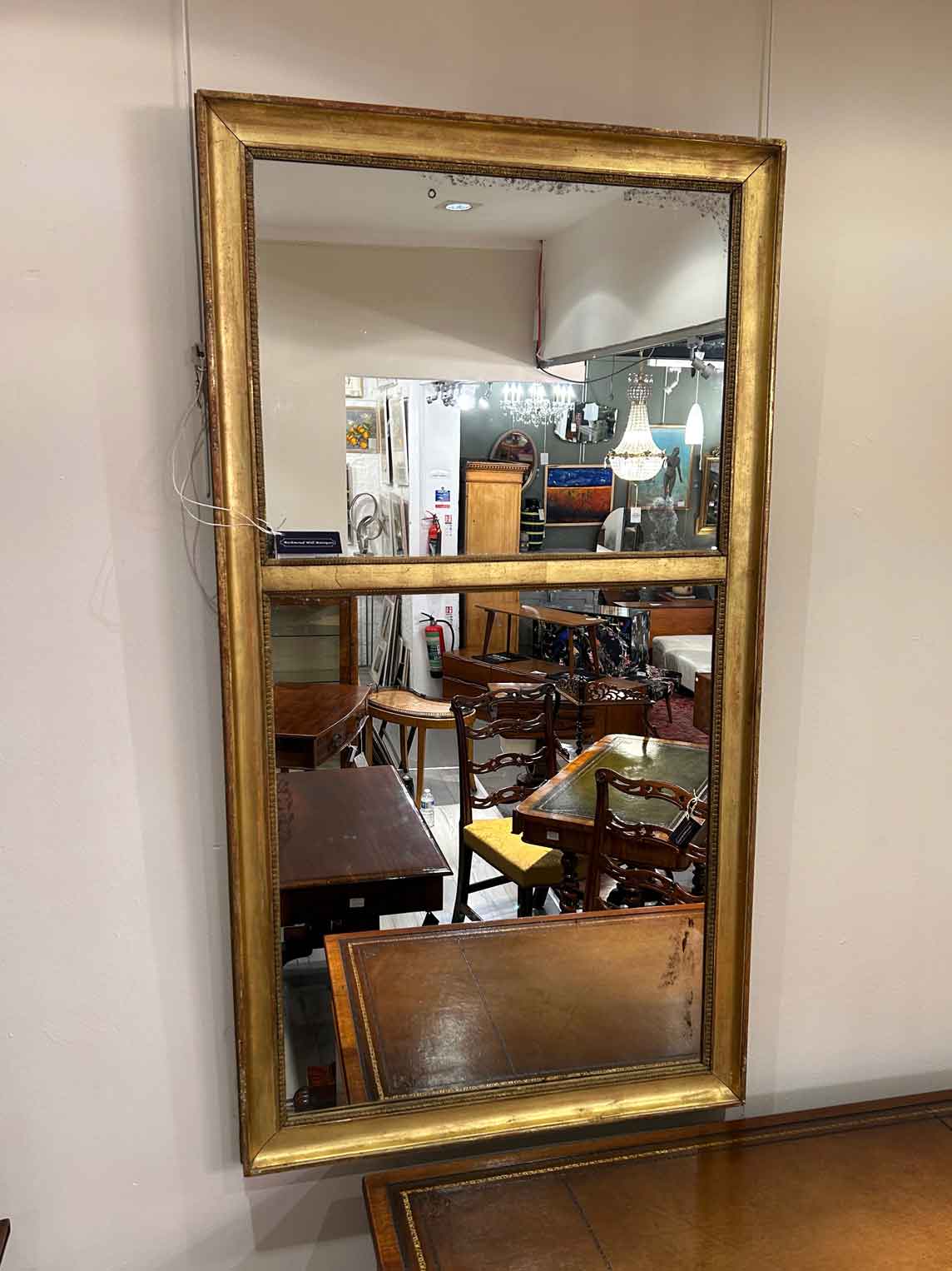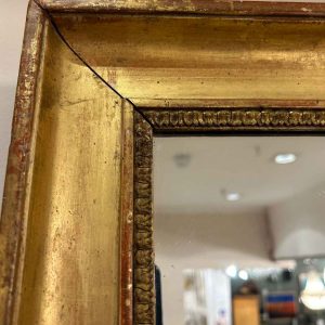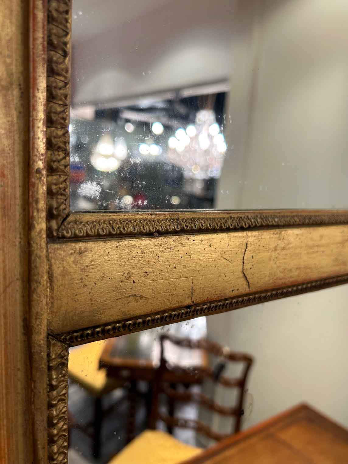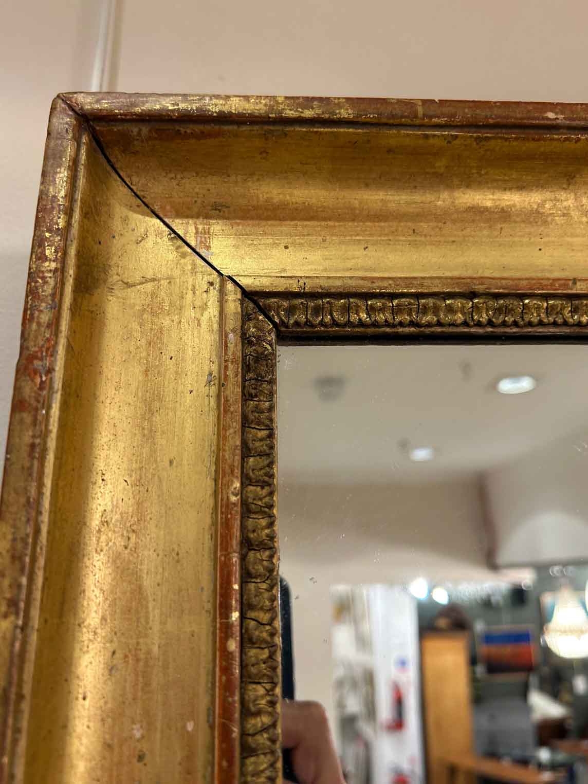 A large gilded 2-plate mirror with classic straight lines and an ornate sight edge. The gilded frame is showing the red bole base.