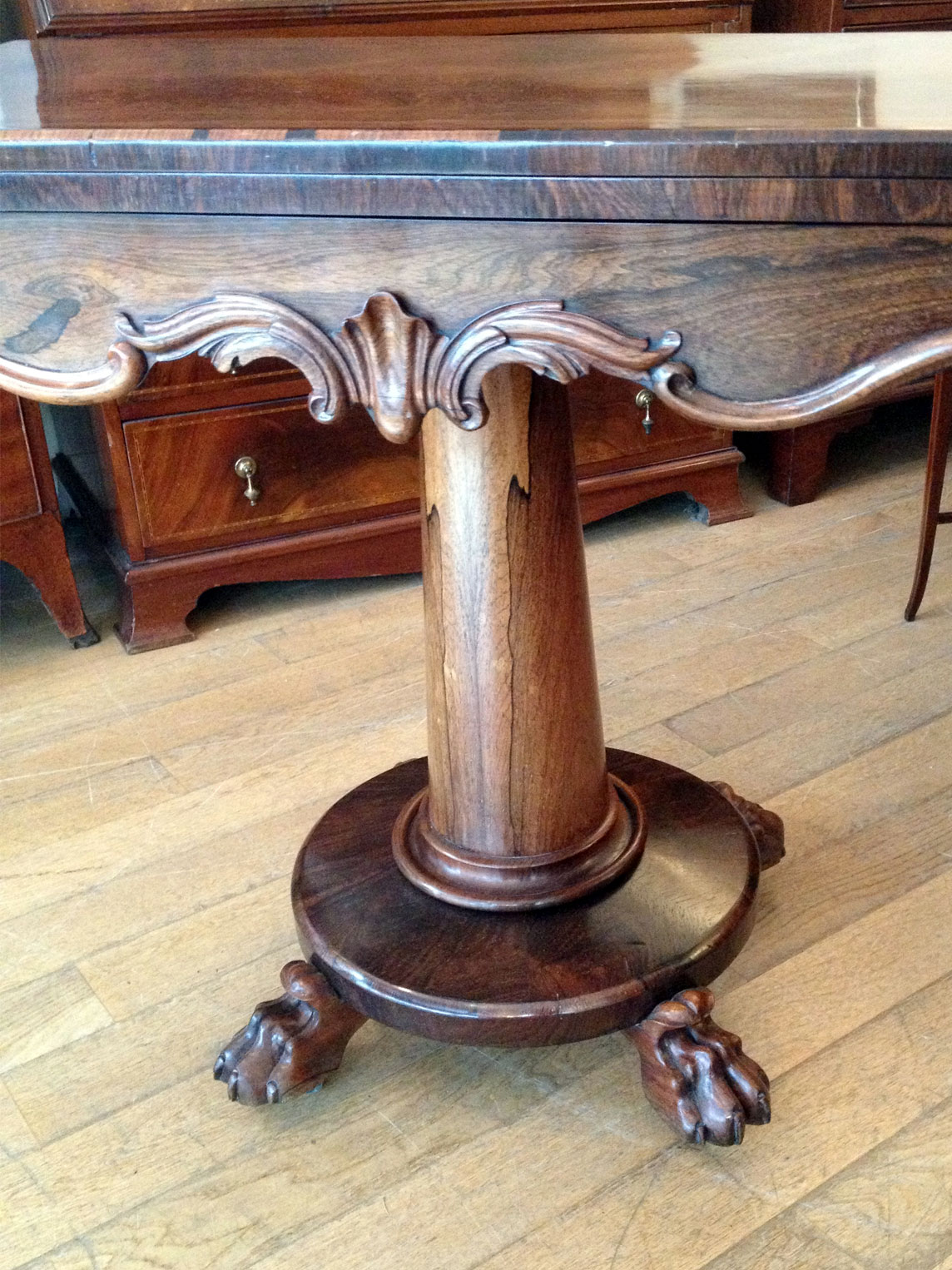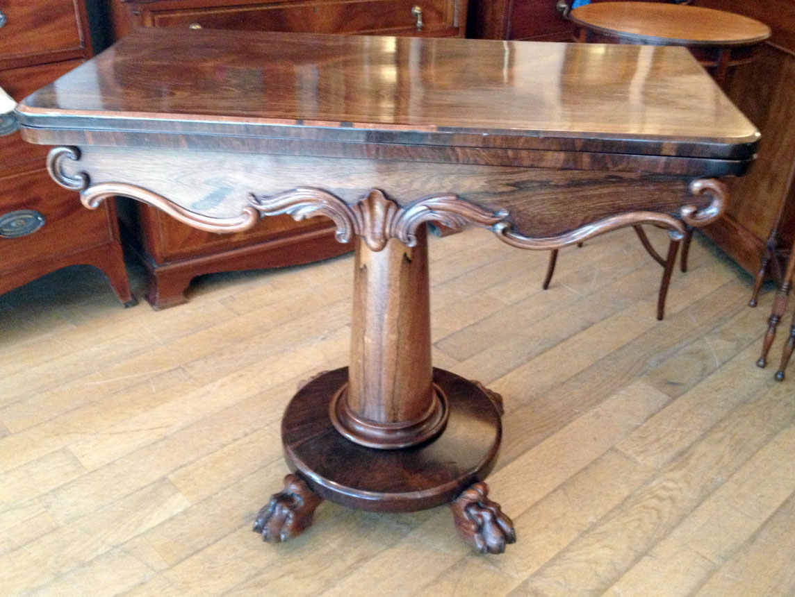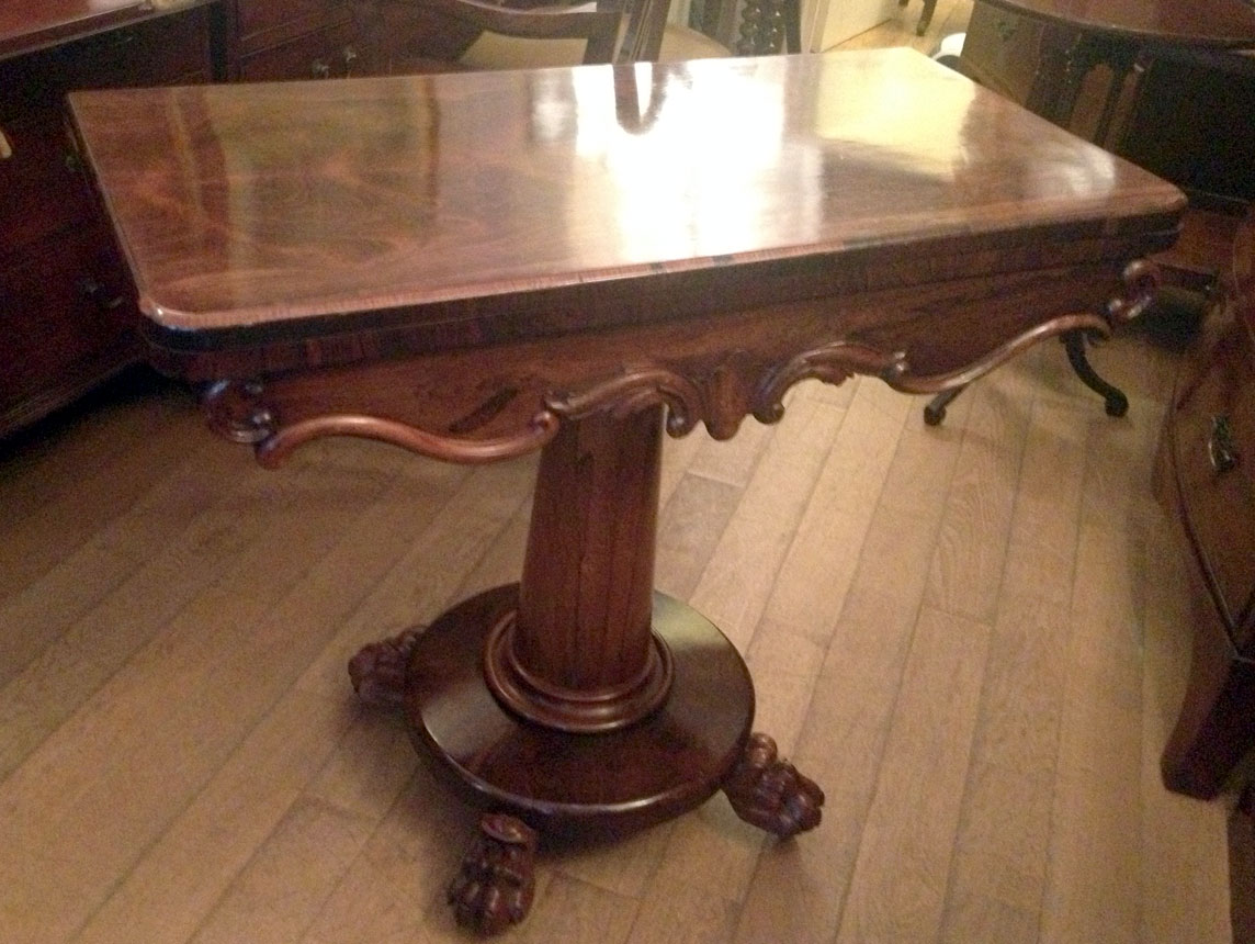 William IV Rosewood Card Table. The top rotates by 90 degrees and unfolds to convert to the card table.