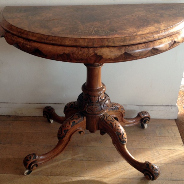 19th Century Burr Walnut Card Table. The top rotates by 90 degrees and unfolds to convert to the card table.
