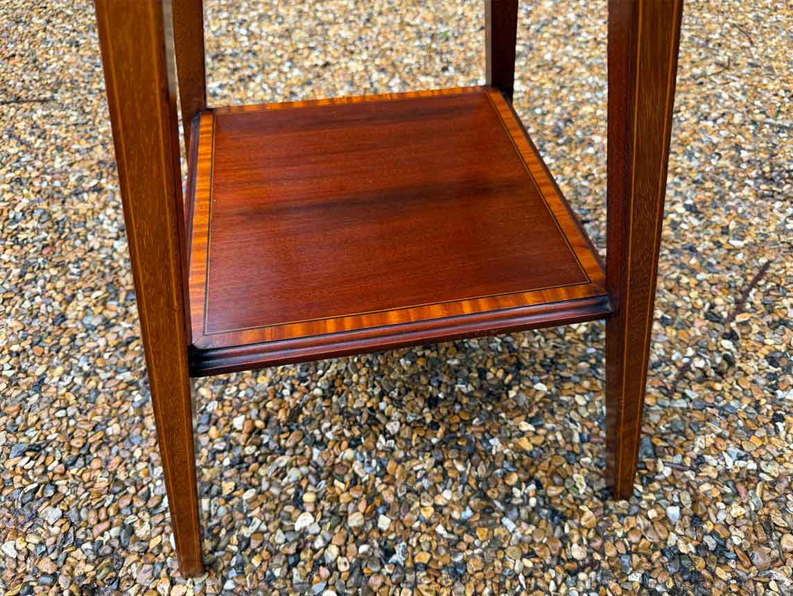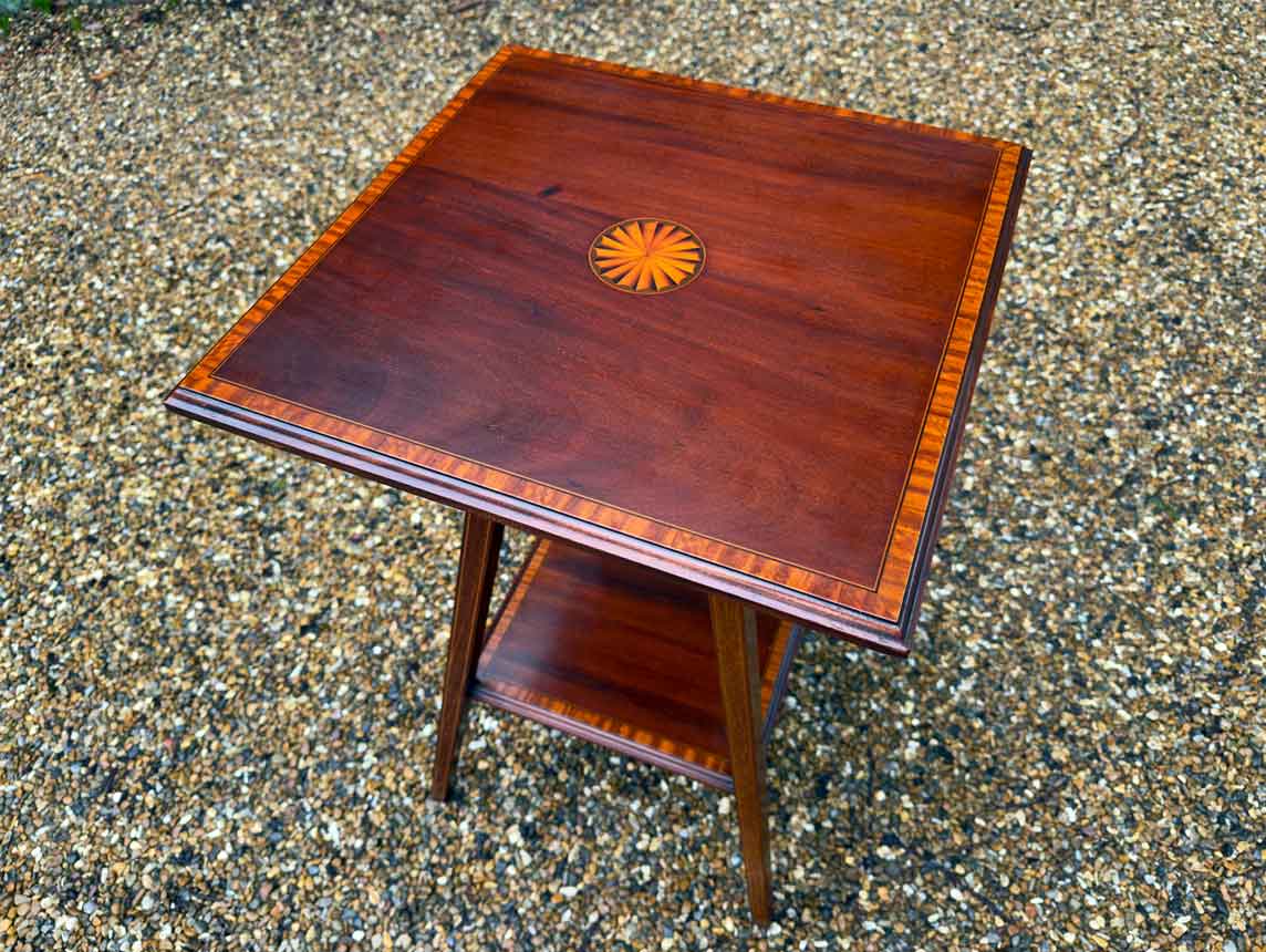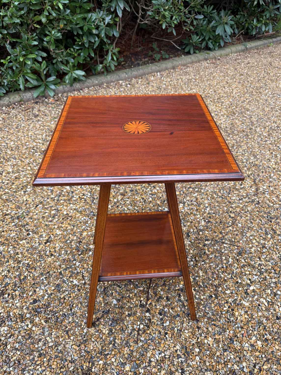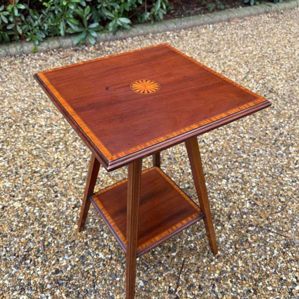 A very attractive small Edwardian Mahogany Square Occasional Table with inlaid decoration throughout and lower shelf