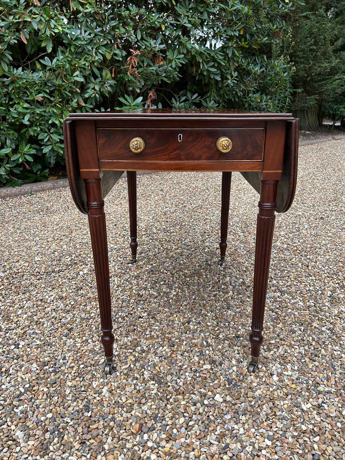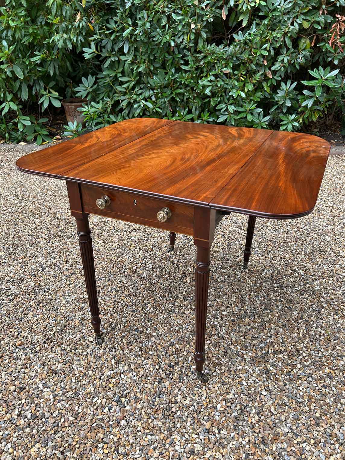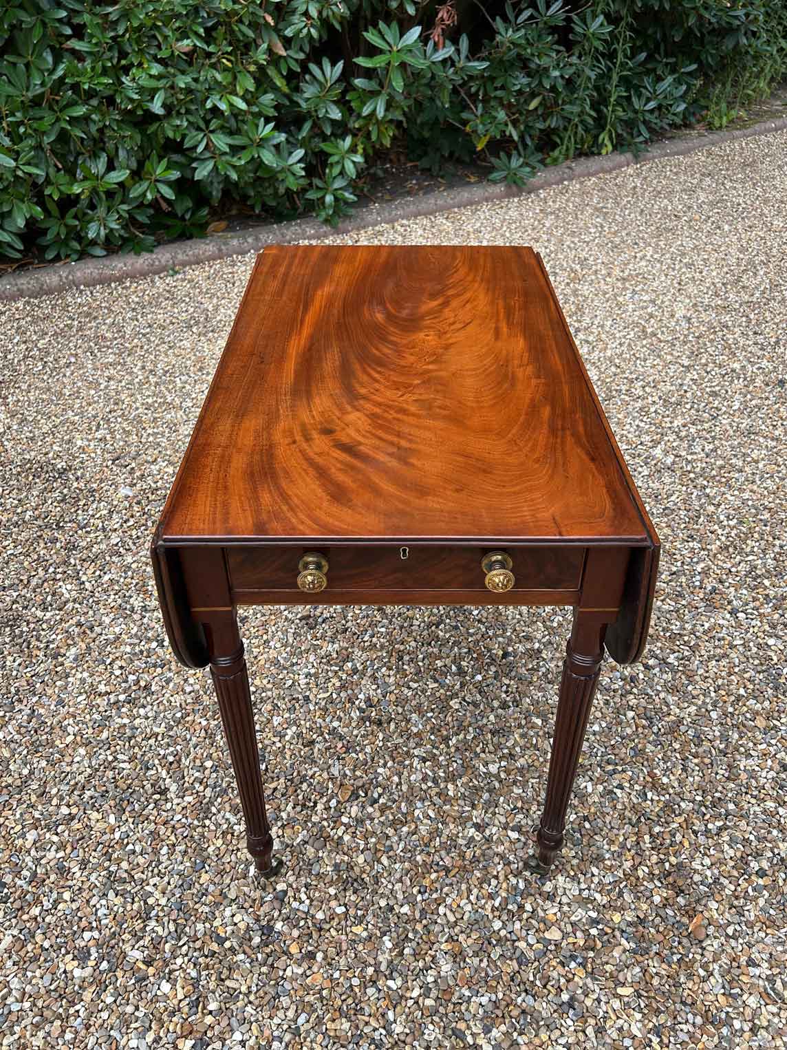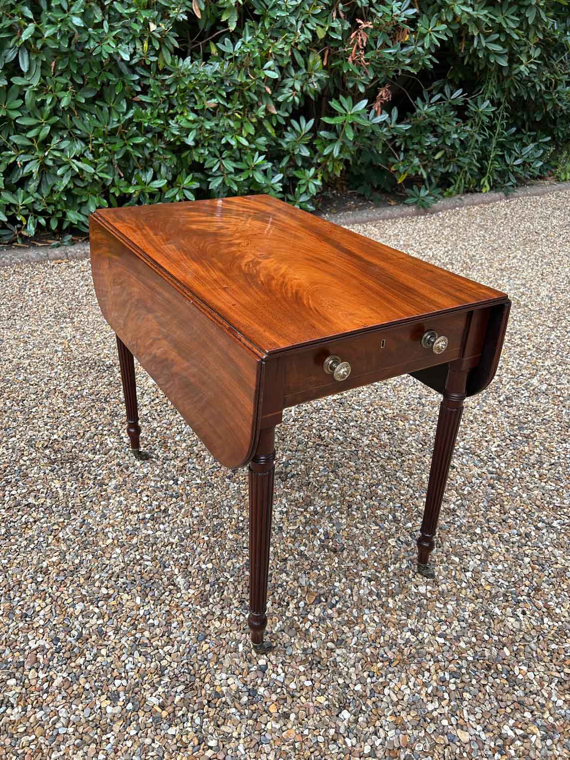 A George III Mahogany Pembroke Table, fitted with a single frieze drawer, on reeded tapering legs and original brass castors.