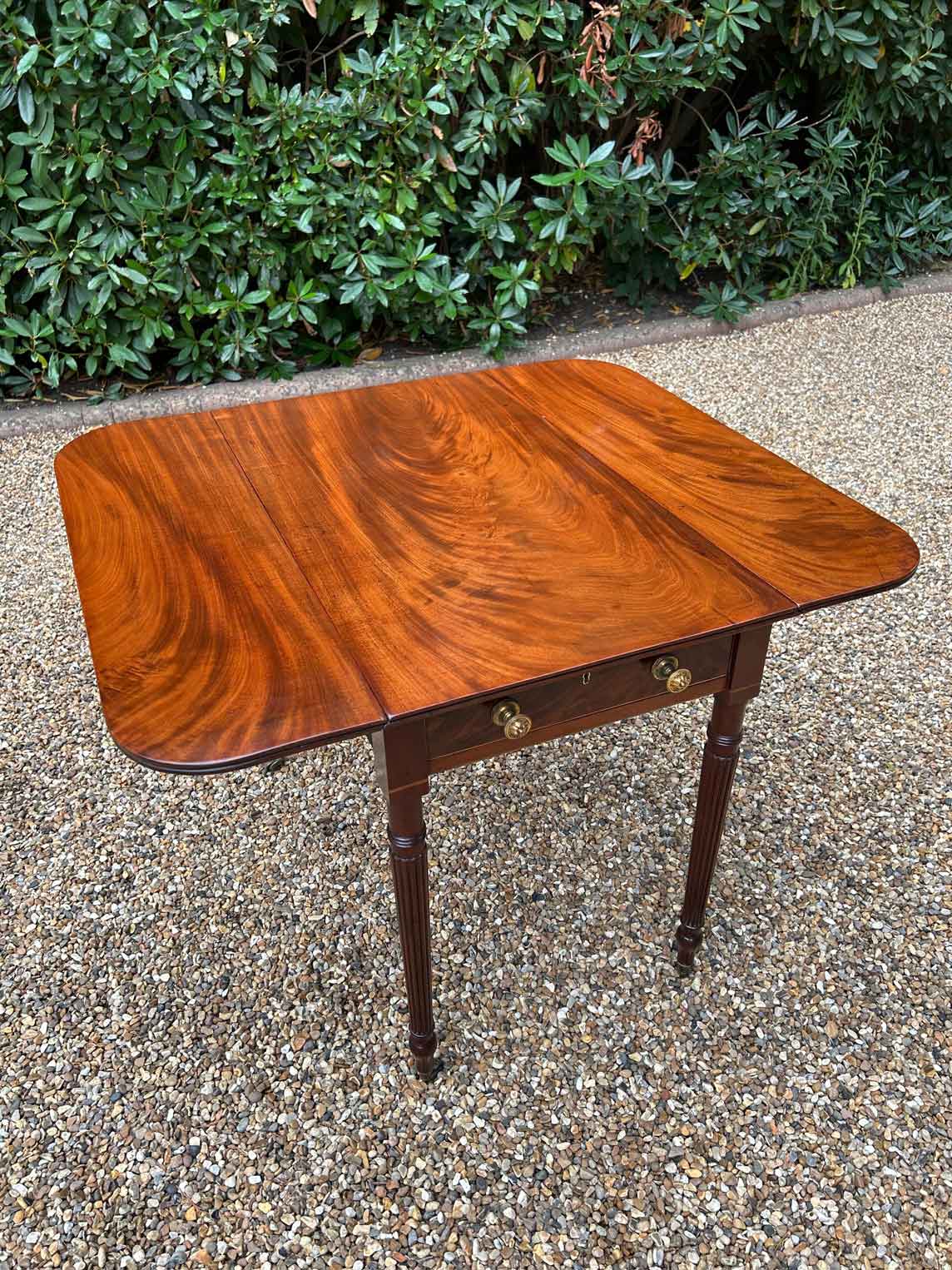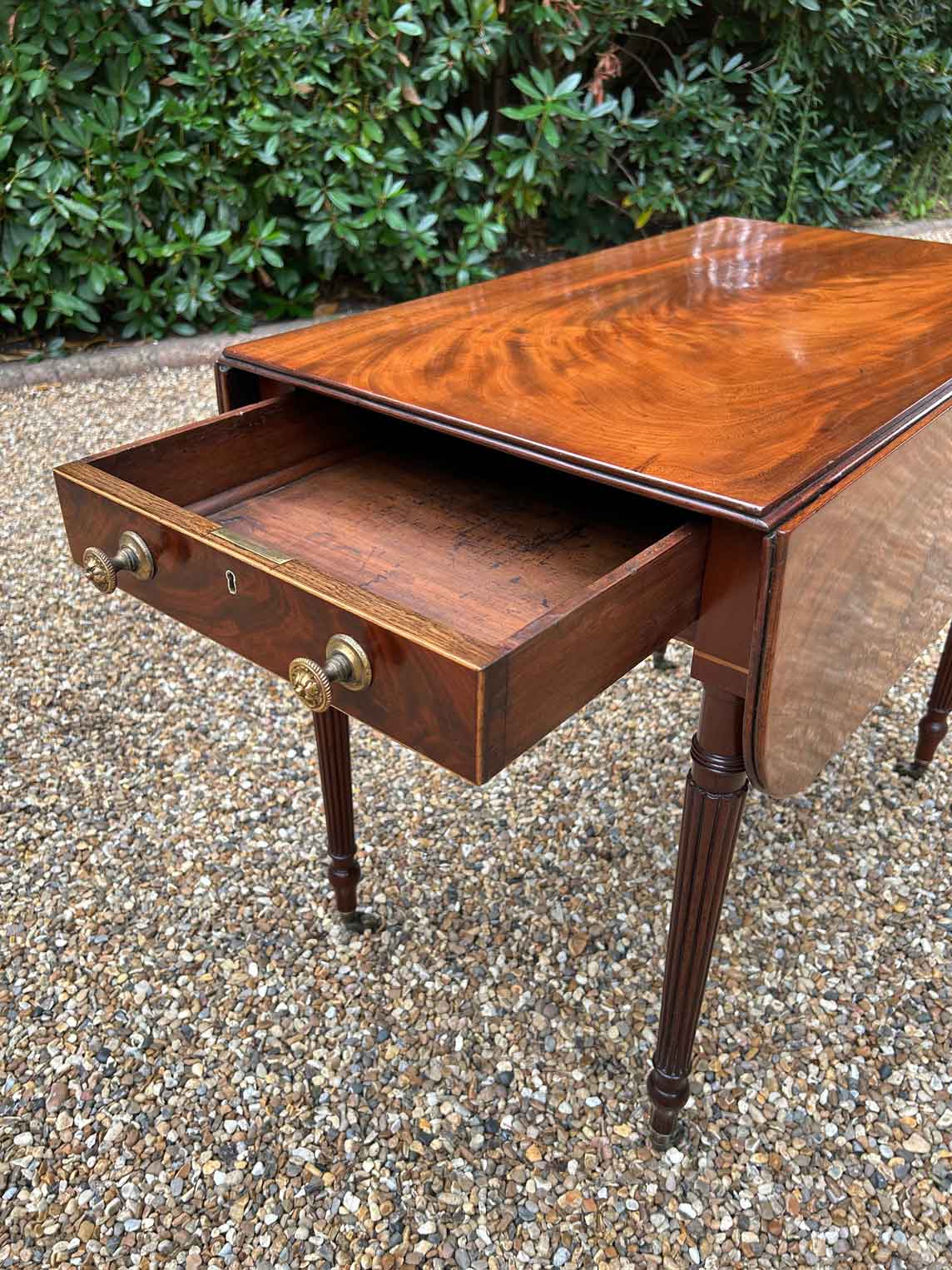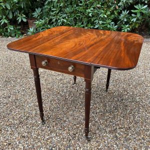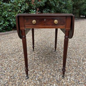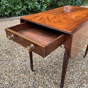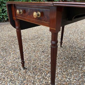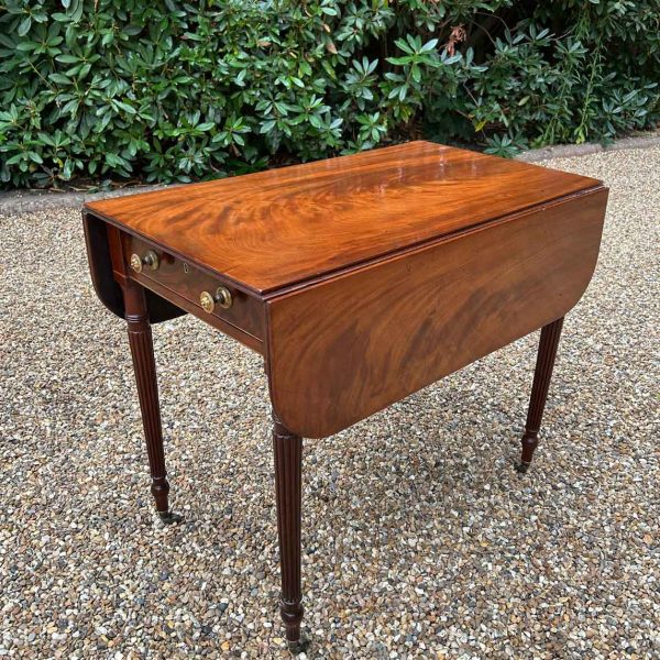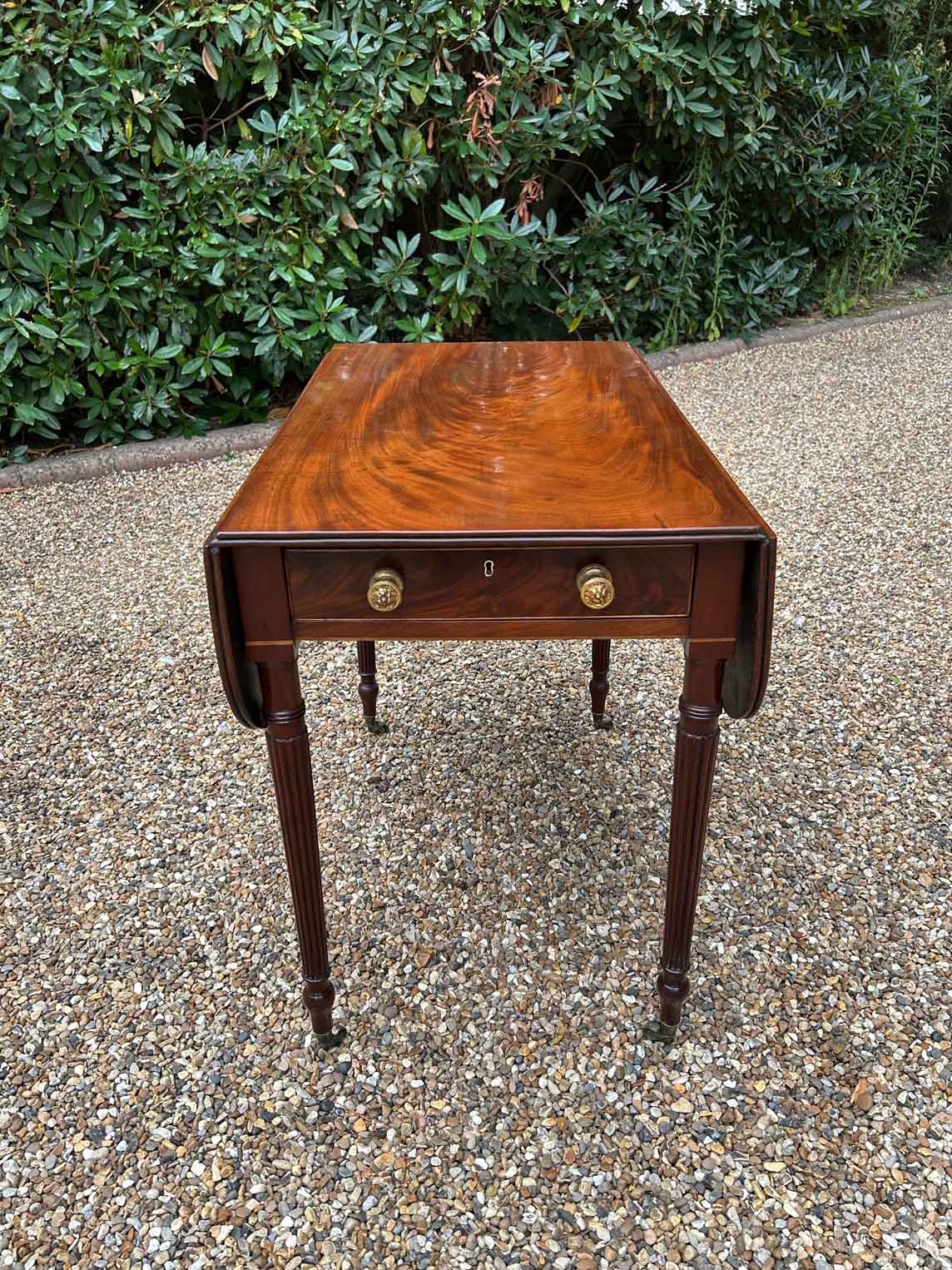 A George III Mahogany Pembroke Table, fitted with a single frieze drawer, on reeded tapering legs and original brass castors.