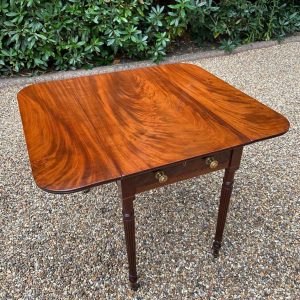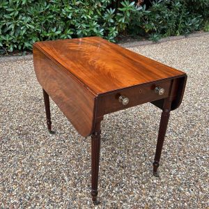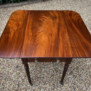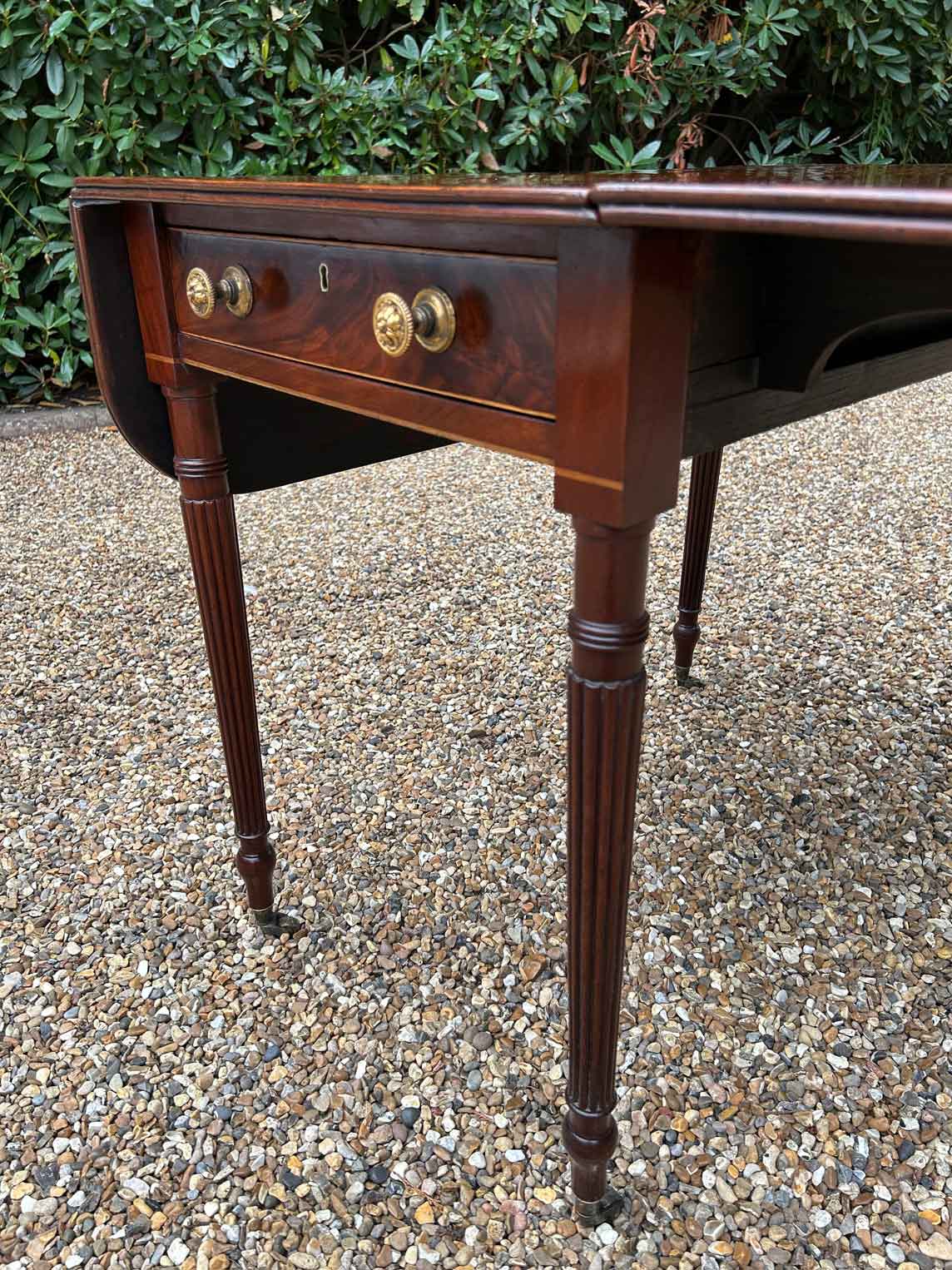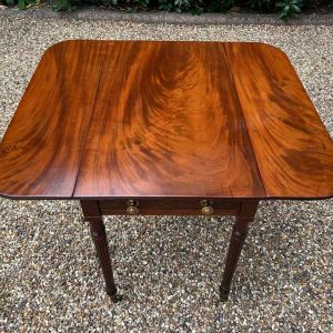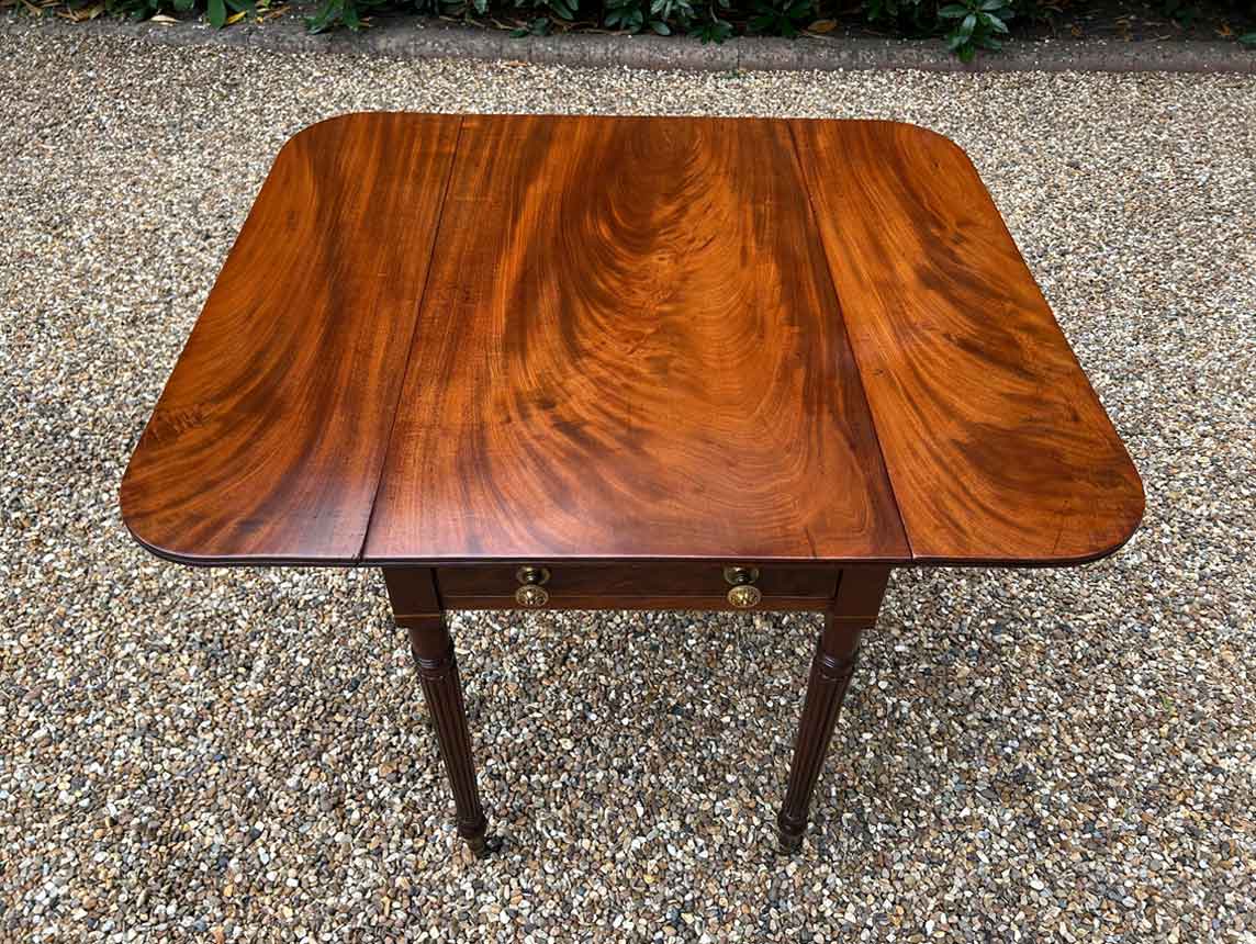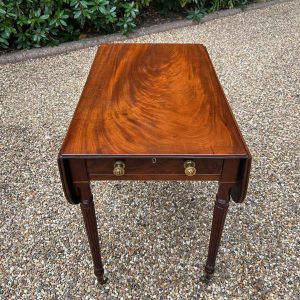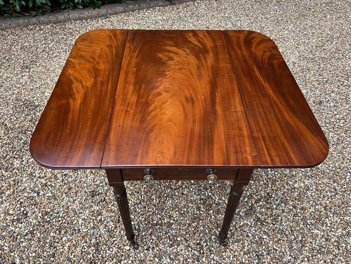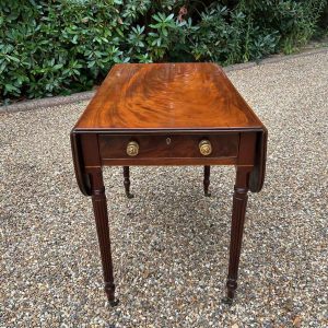 A George III Mahogany Pembroke Table, fitted with a single frieze drawer, on reeded tapering legs and original brass castors.