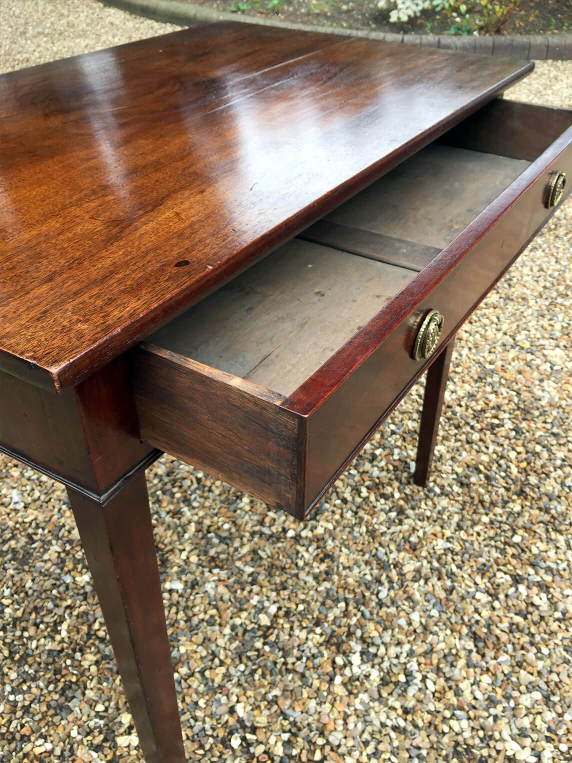 Georgian Mahogany Side Table with brass ring handles, all raised on elegant legs.