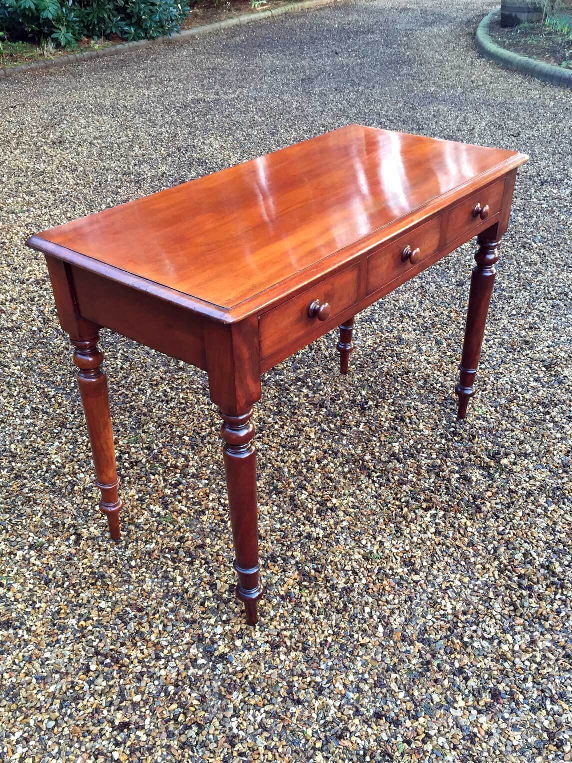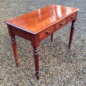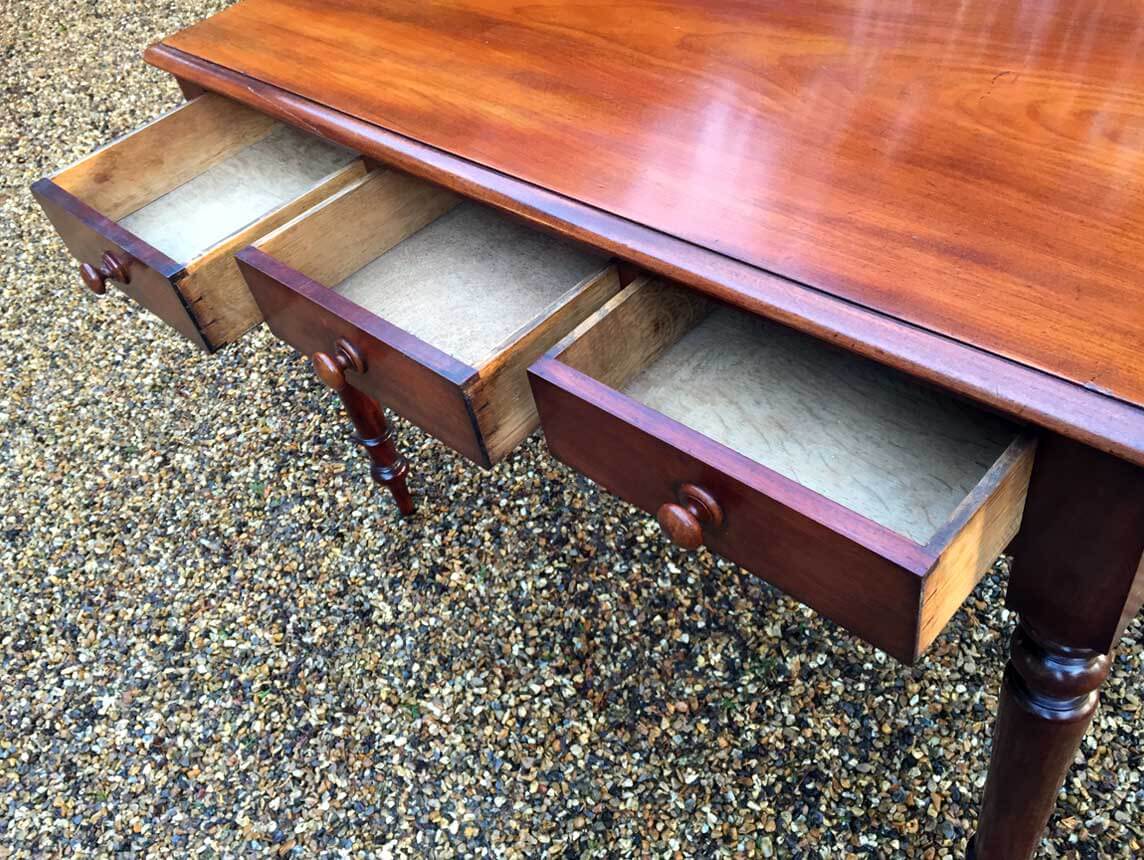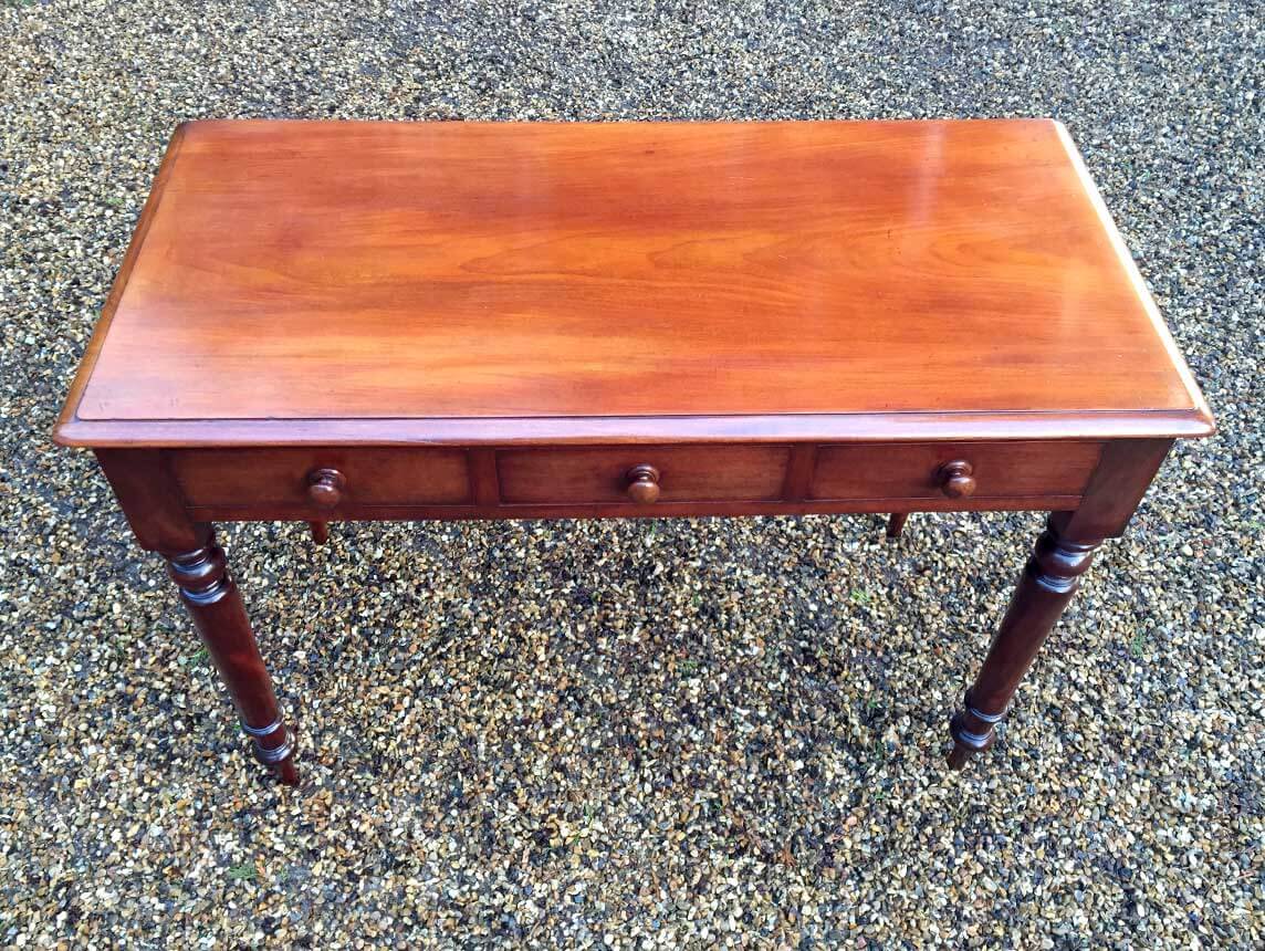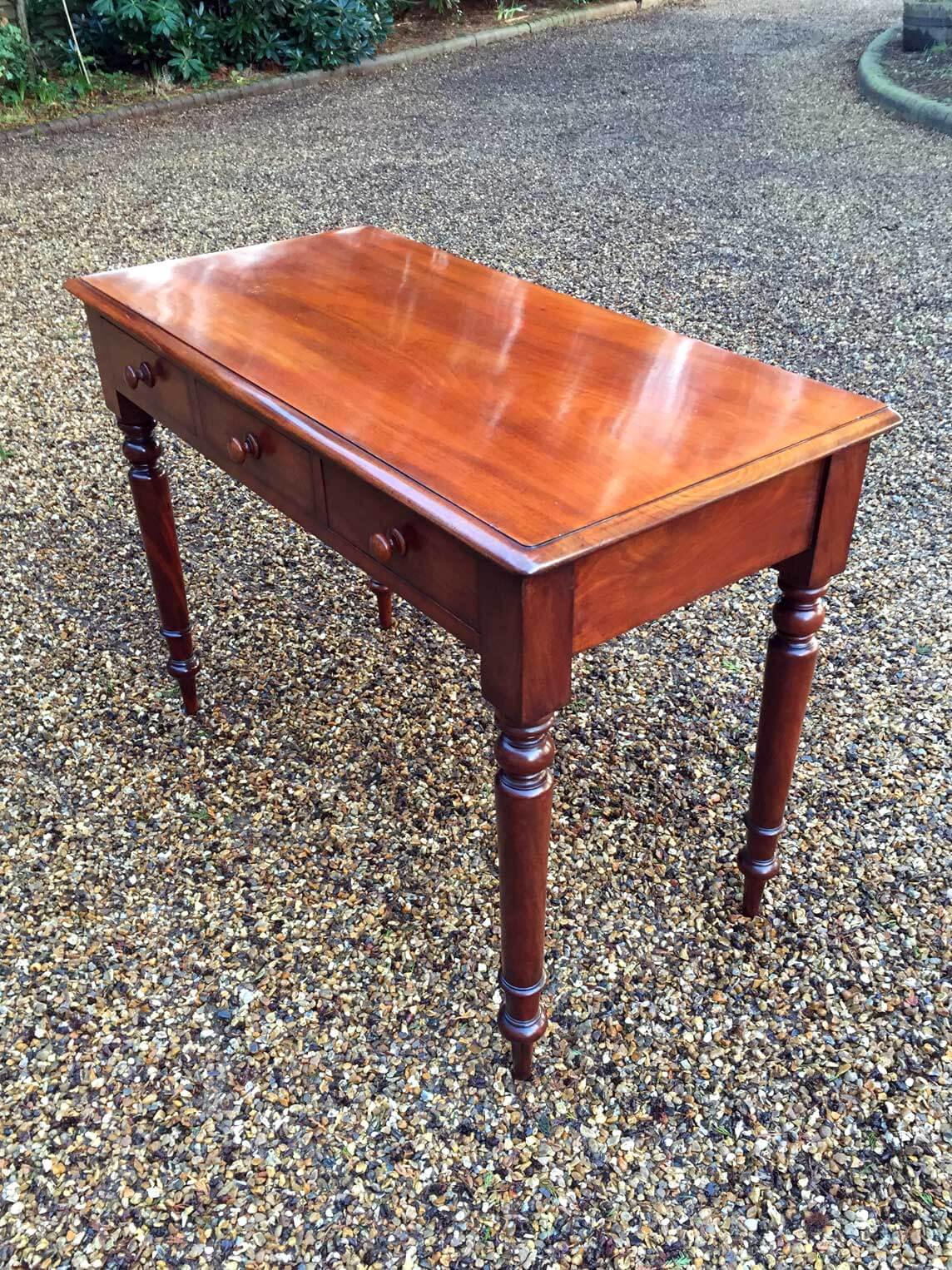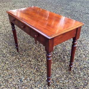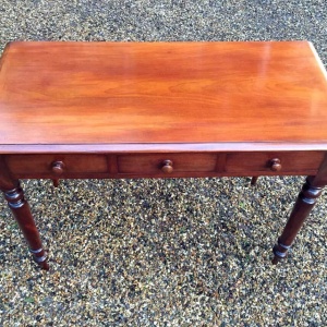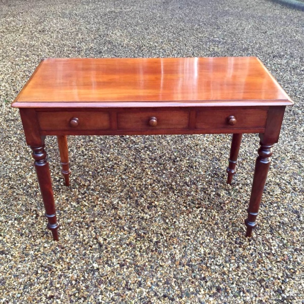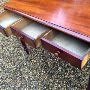 Victorian Mahogany Side Table with three drawers, raised on turned legs.