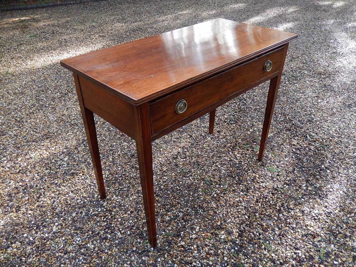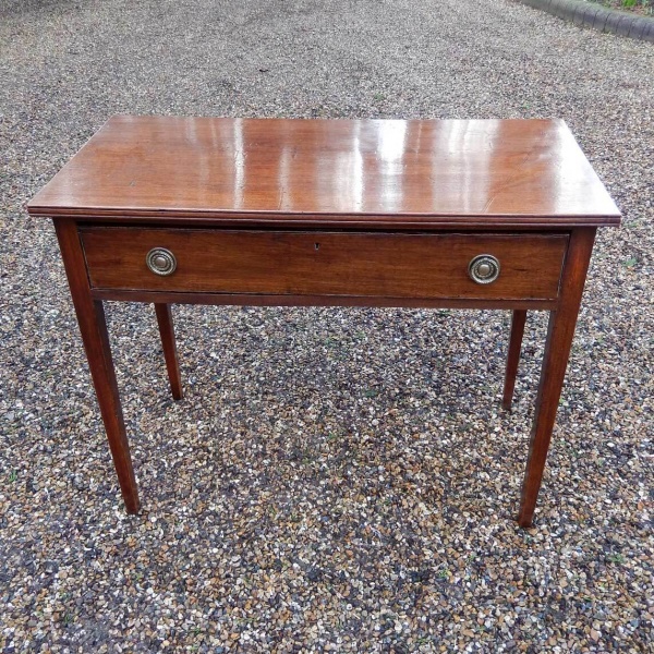 George III Mahogany Side Table, fitted with a single drawer on square tapering legs.