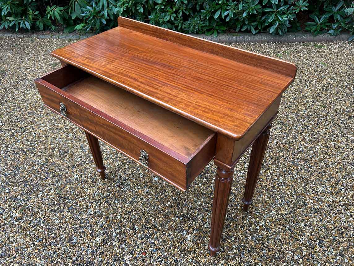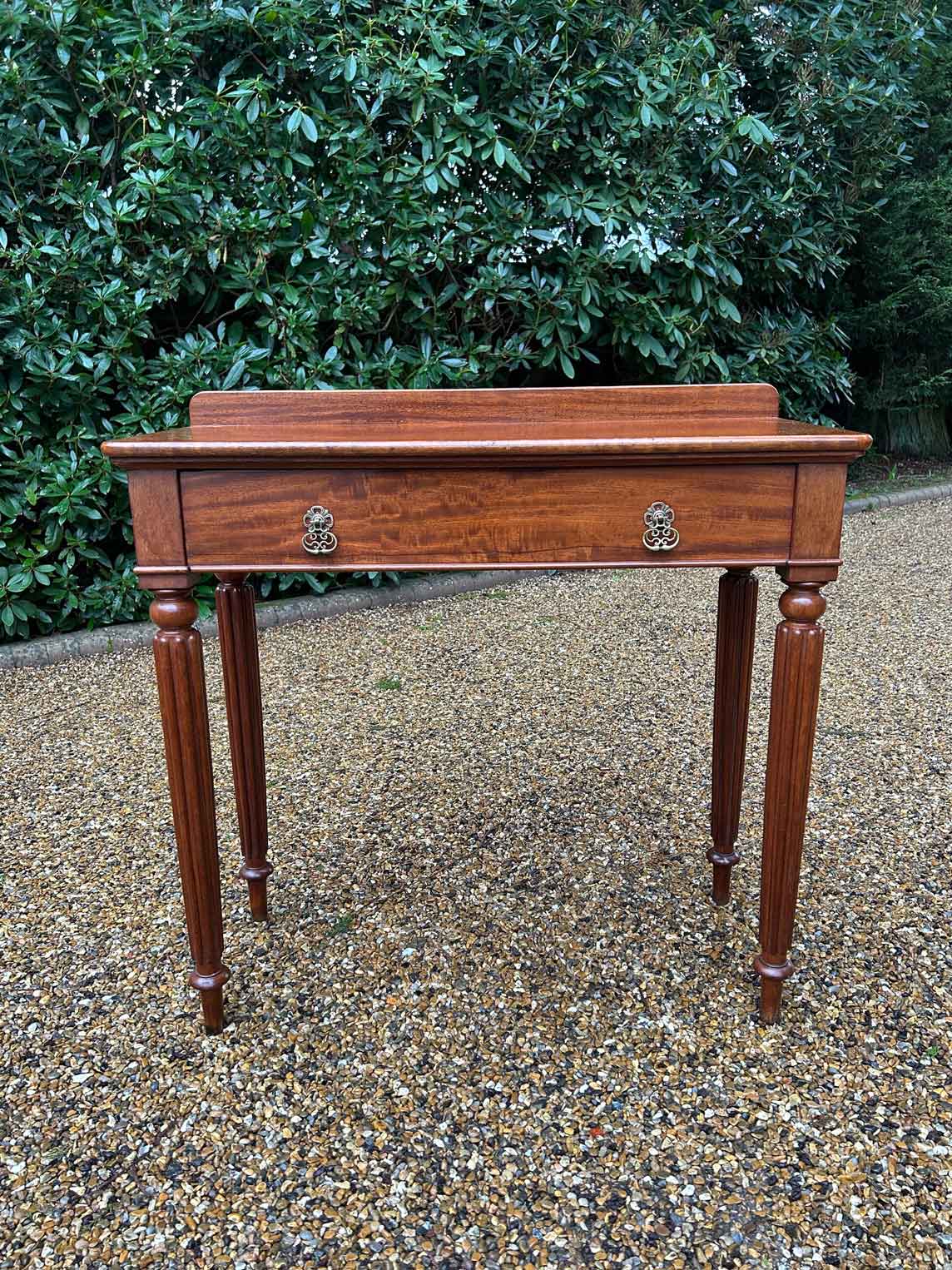 A high quality 19th Century Victorian Mahogany Side Table with one single drawer on turned reeded legs.