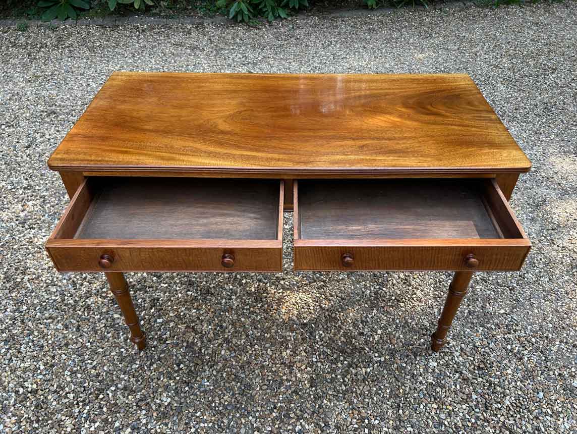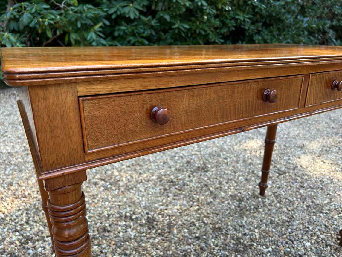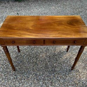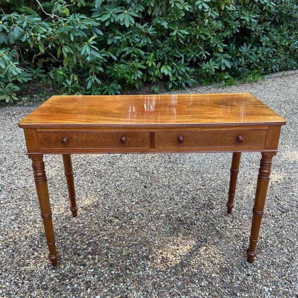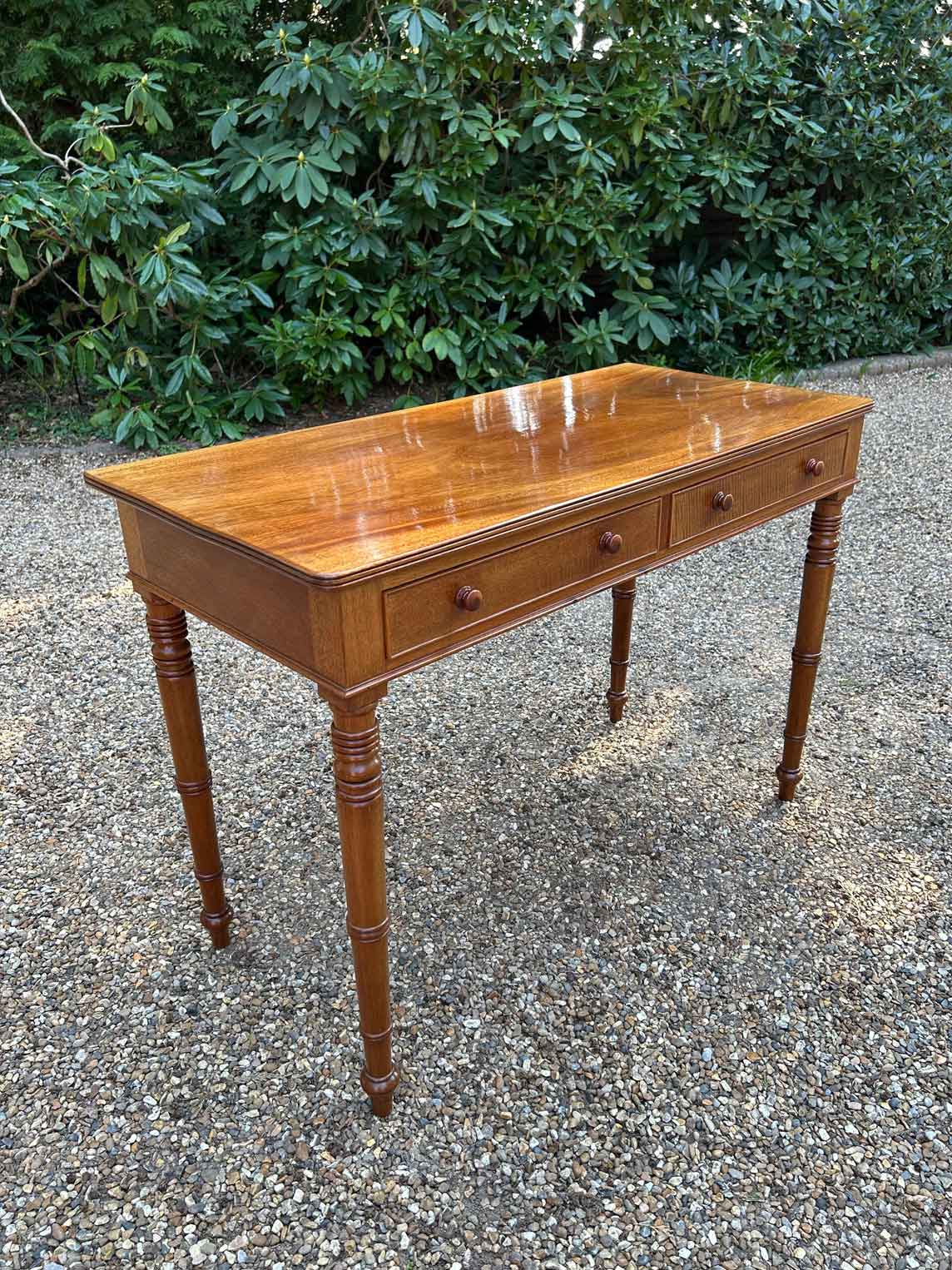 A very high quality 19th Century Victorian Mahogany Side Table with two drawers, turned supports and small bun handles.