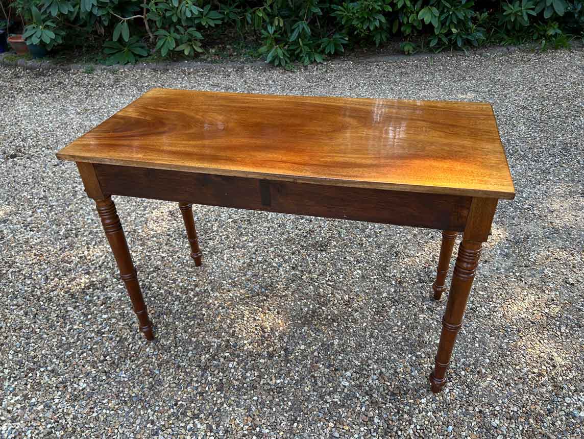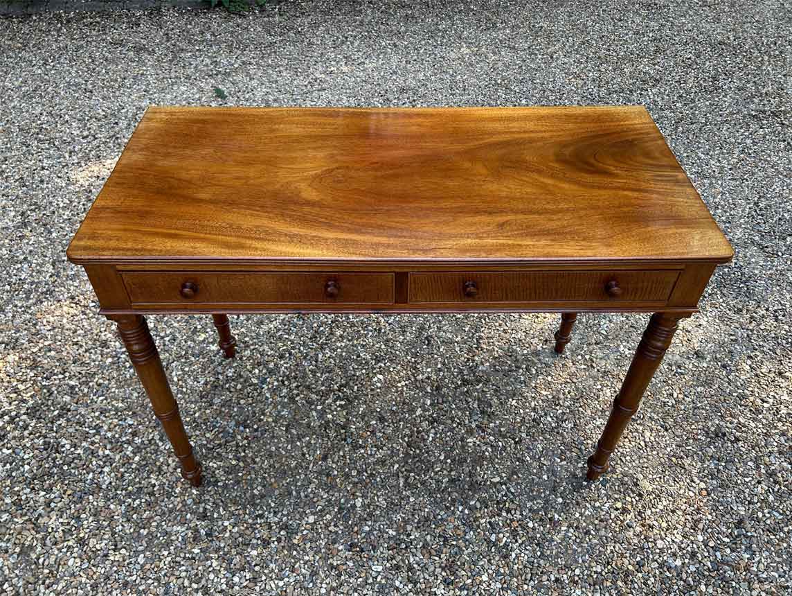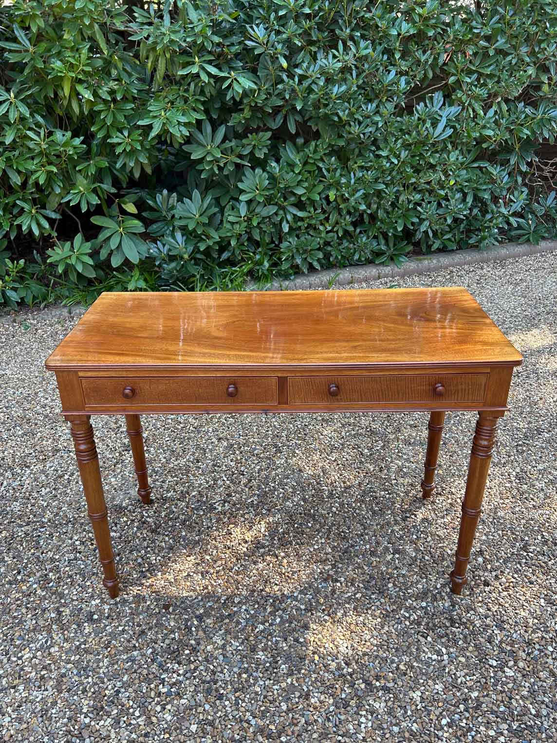 A very high quality 19th Century Victorian Mahogany Side Table with two drawers, turned supports and small bun handles.