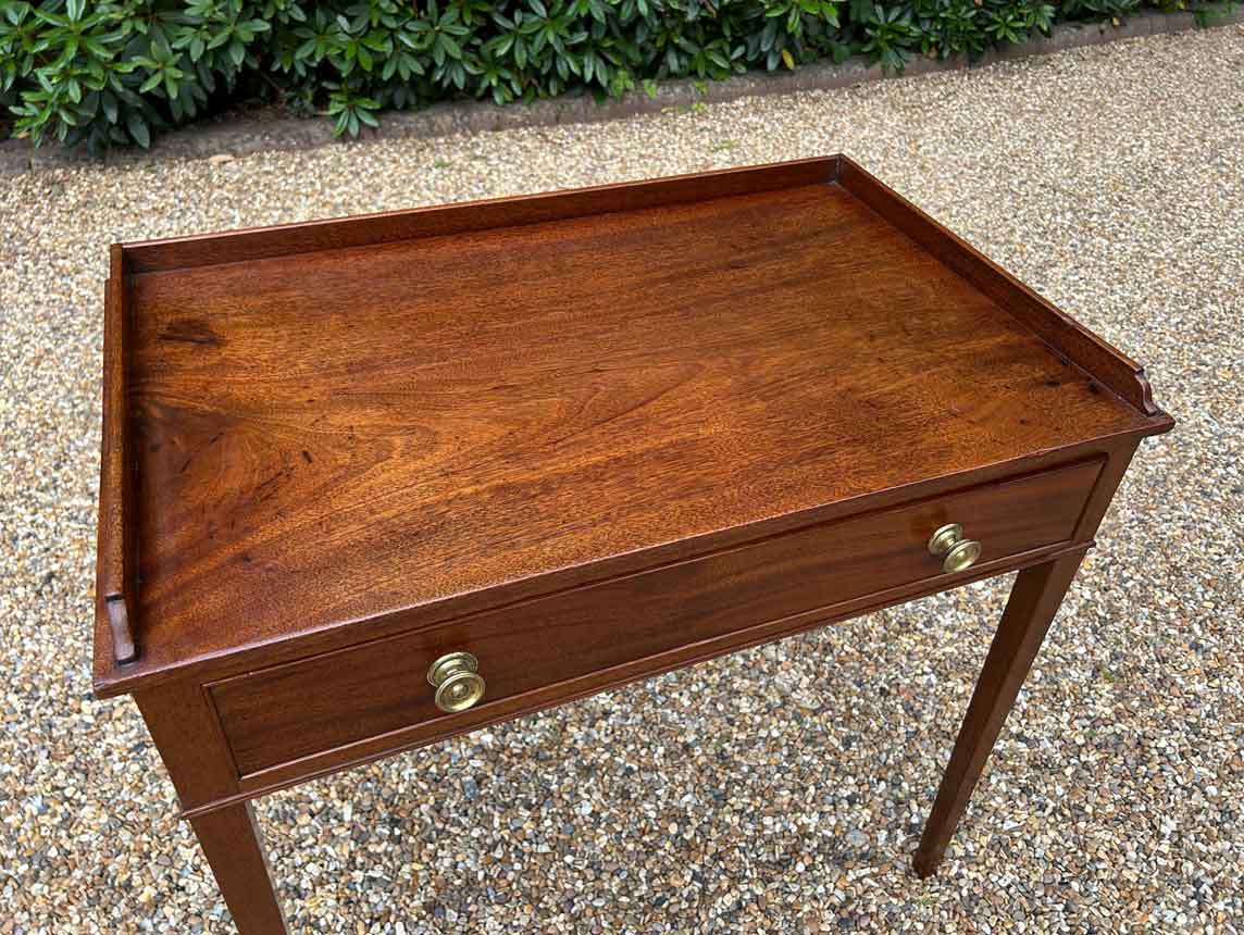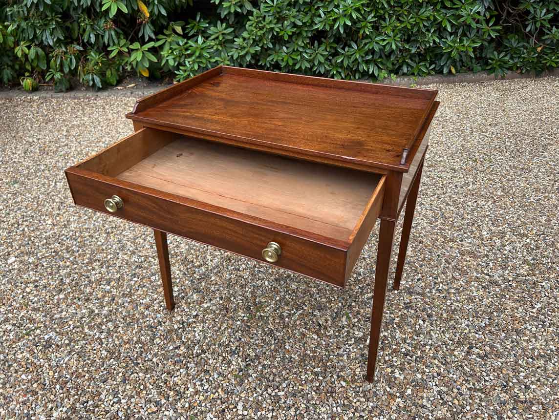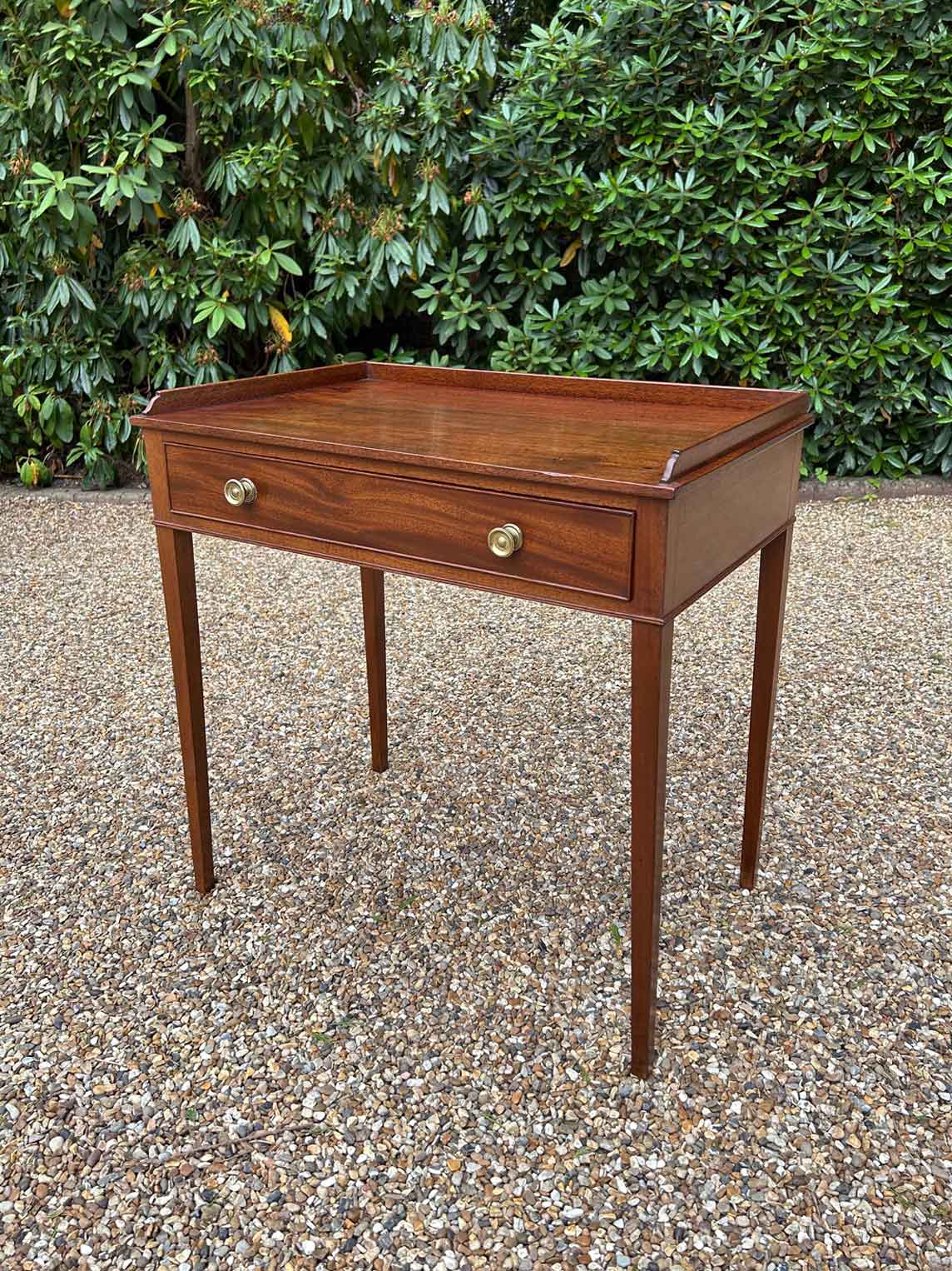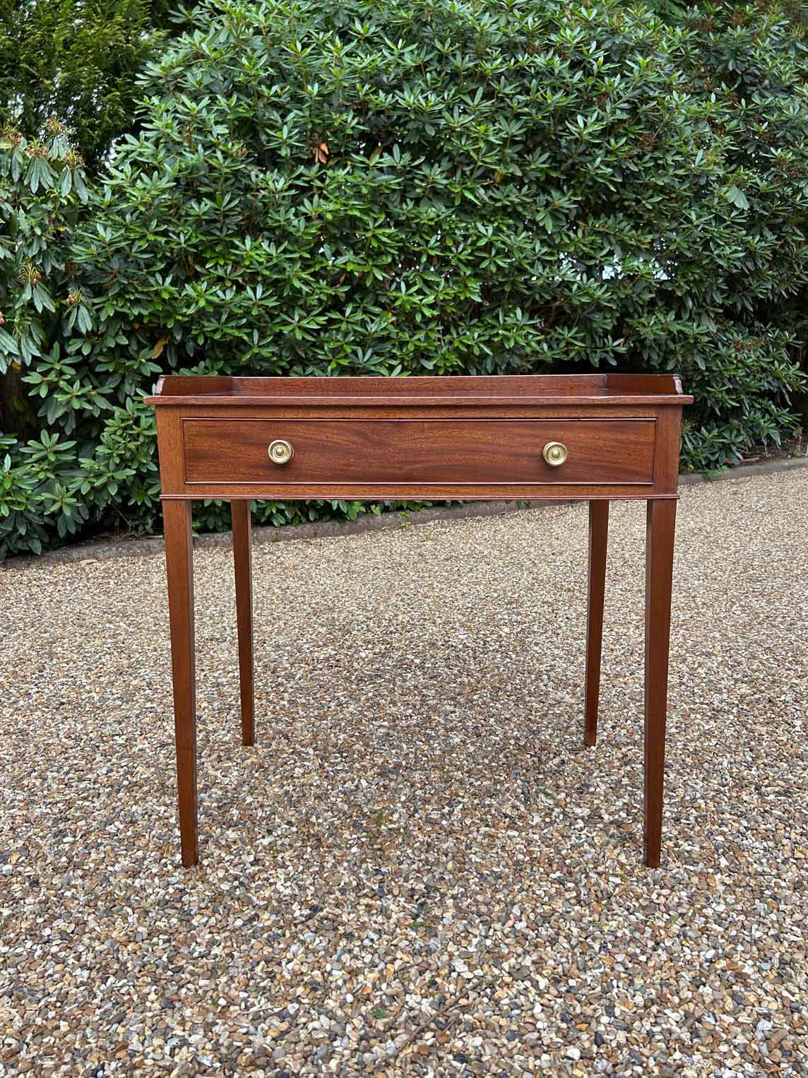A high quality 19th Century Georgian Mahogany Side Table with a single drawers, square tapering supports and brass knob handles.