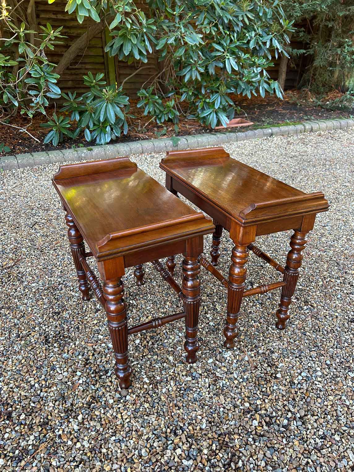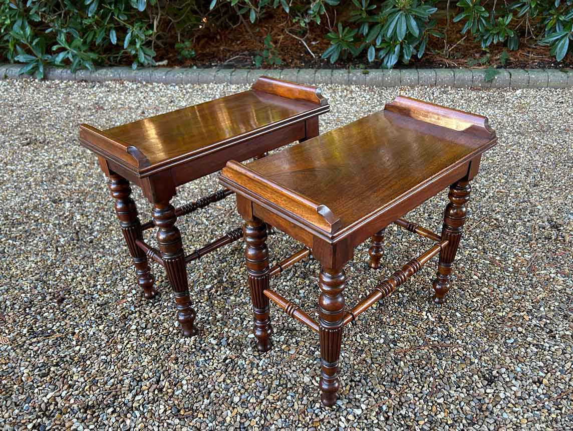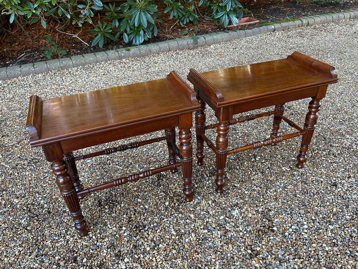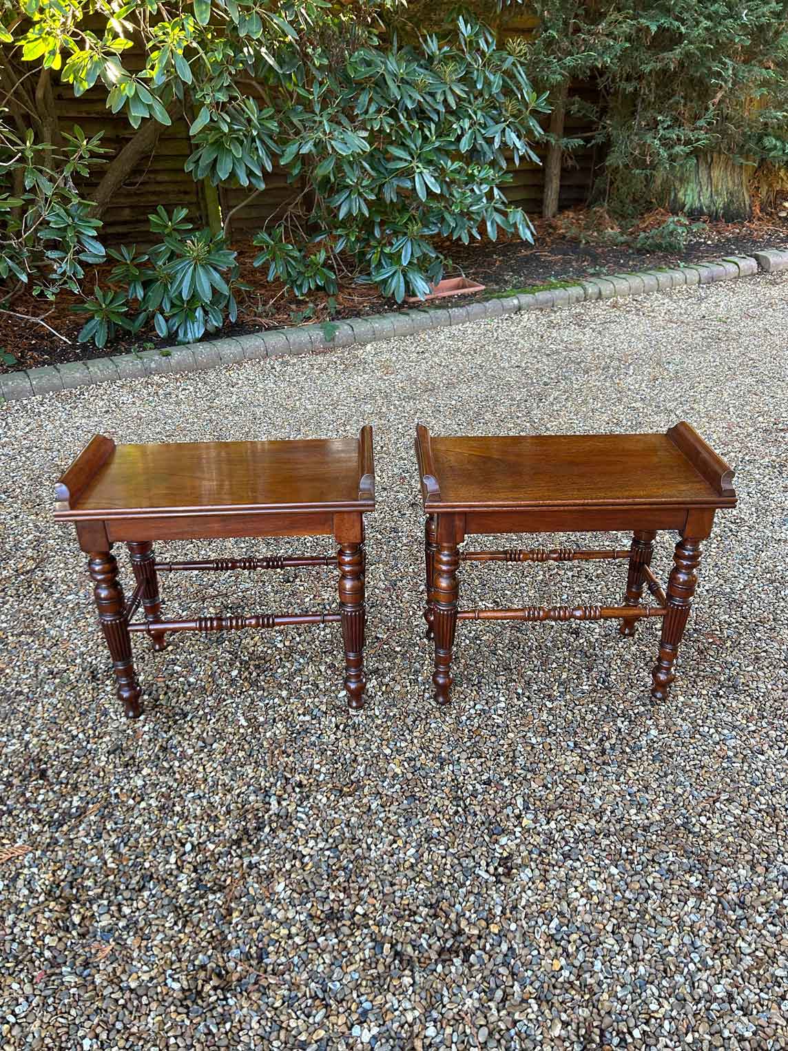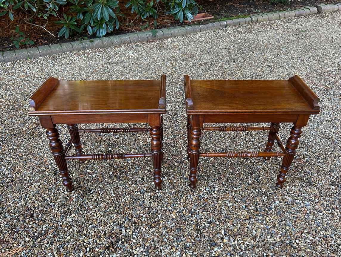 A pair of very high quality 19th Century Mahogany Hall / Window Stool Seats with turned reeded legs.
