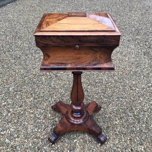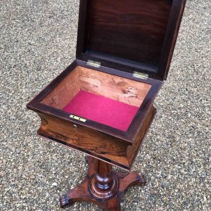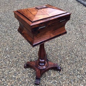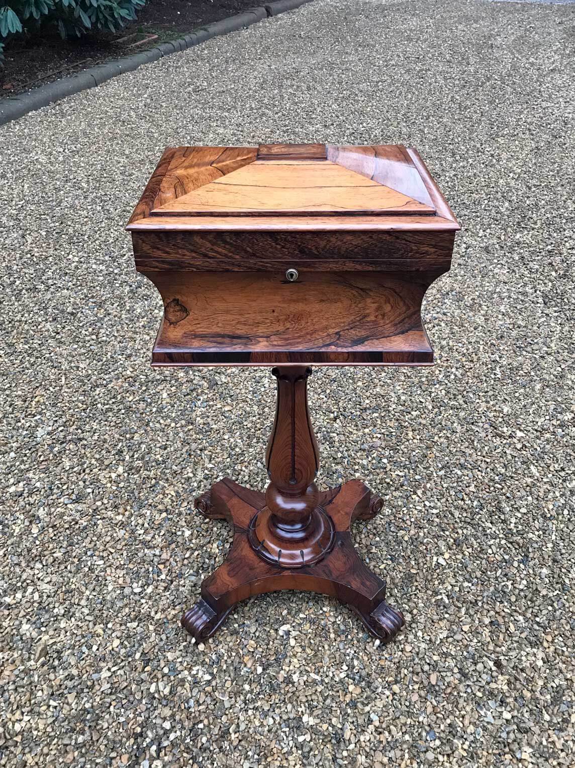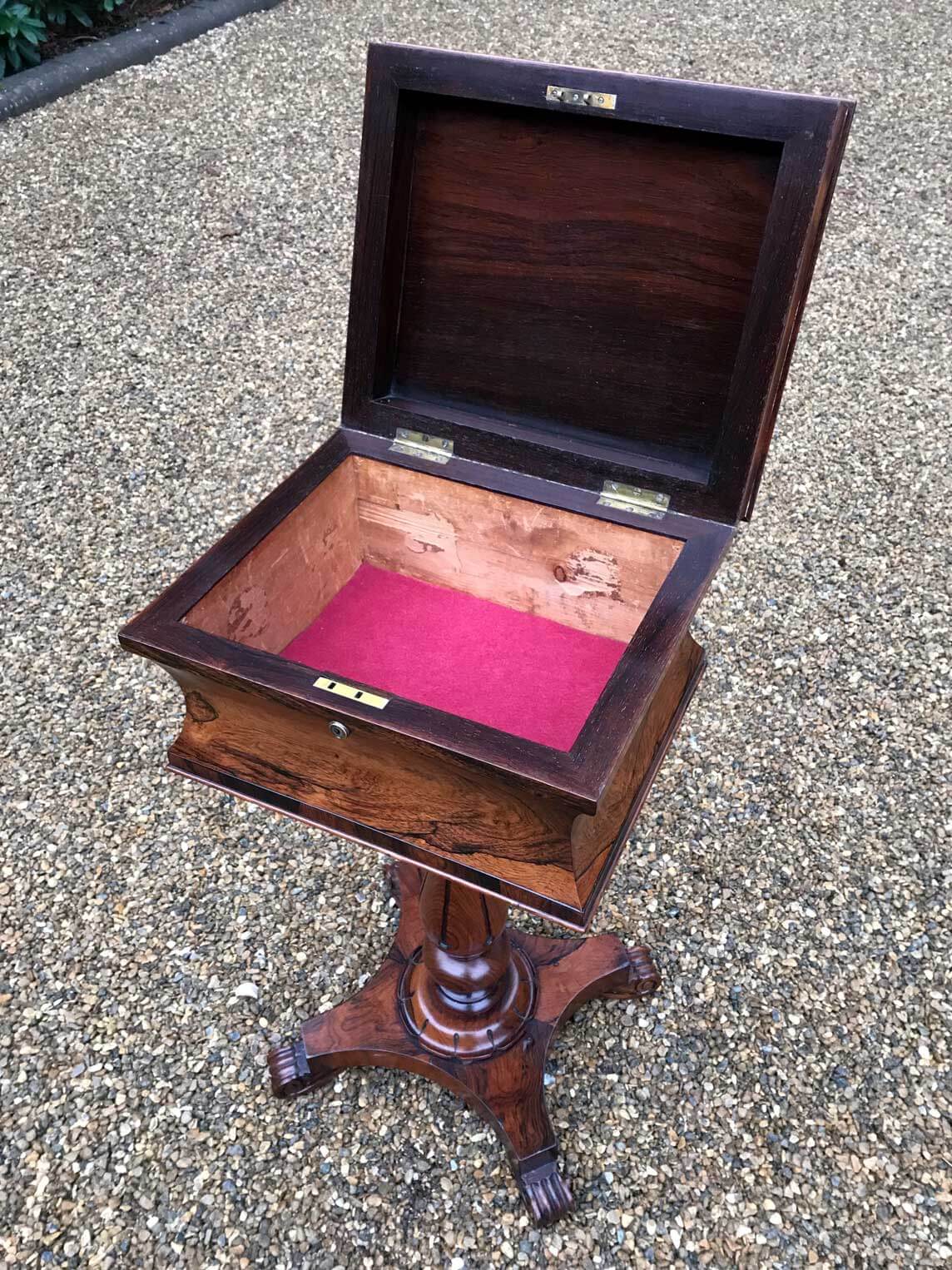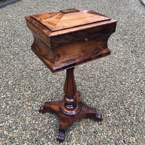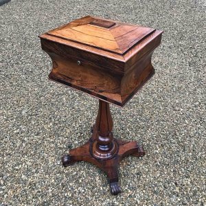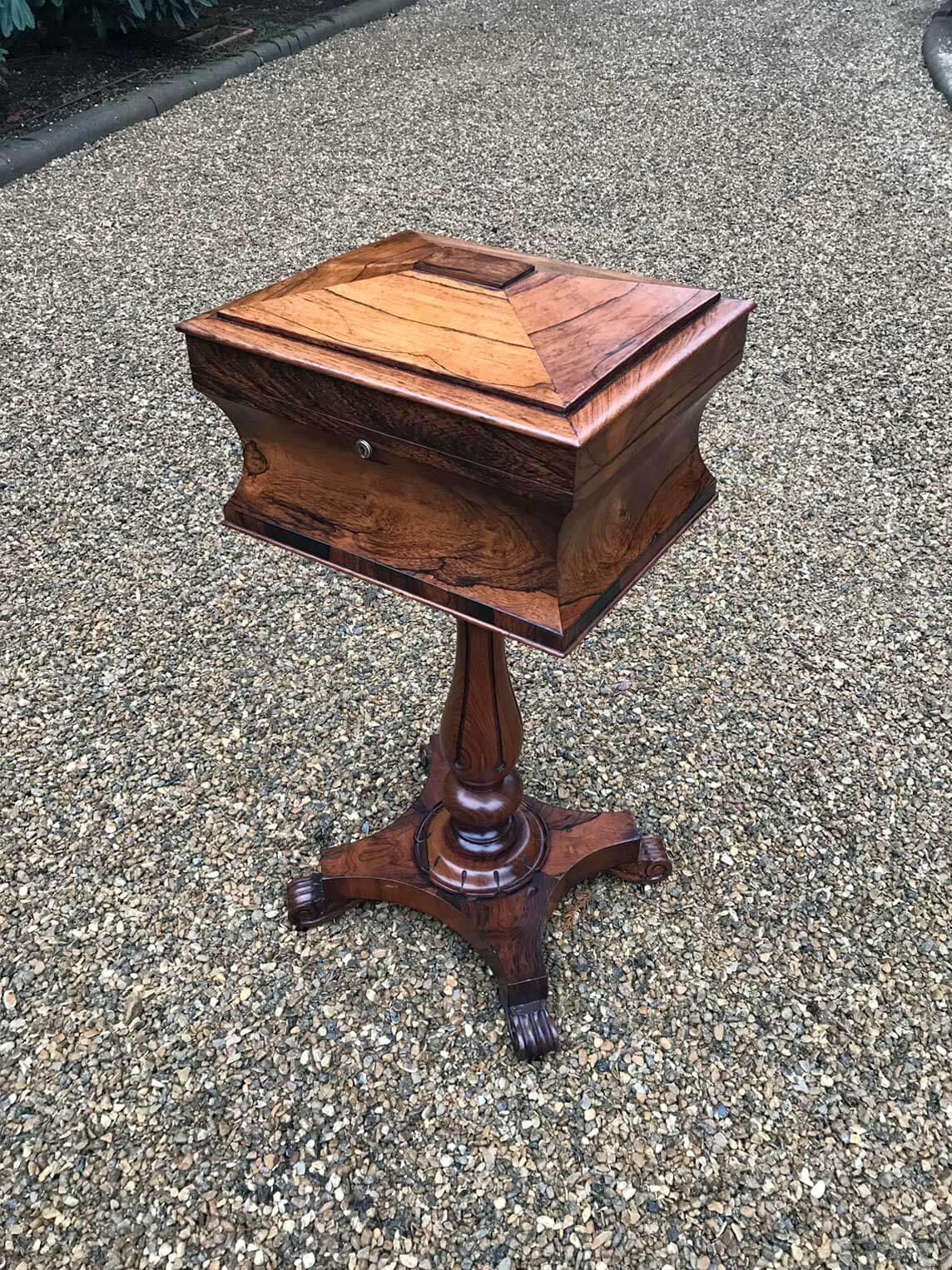 19th Century William IV Rosewood Teapoy, with a solid Rosewood column and shaped base on scroll feet.