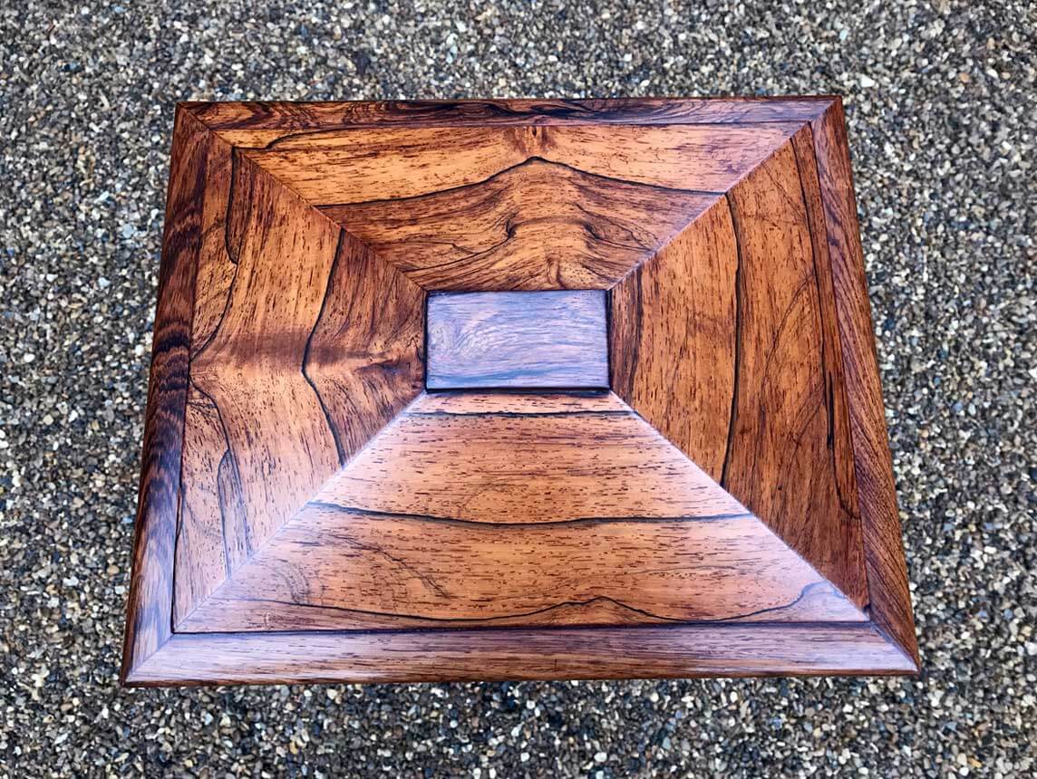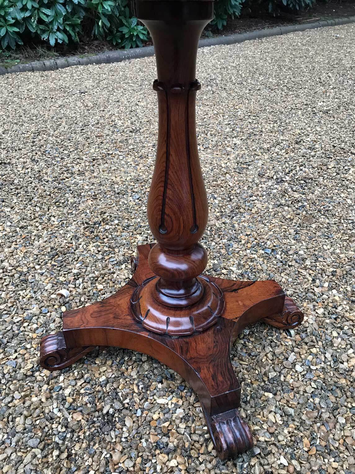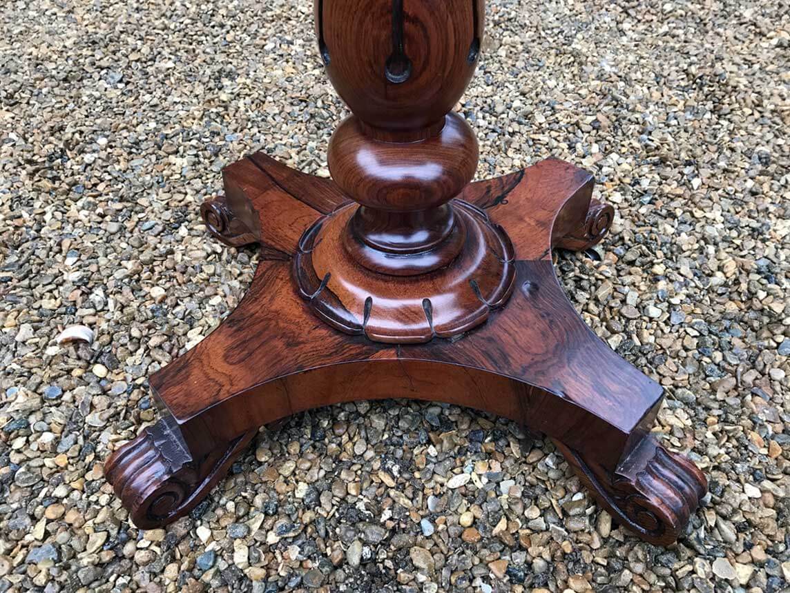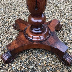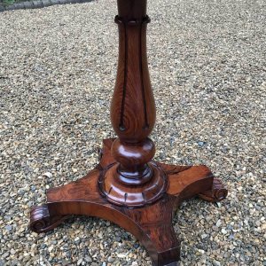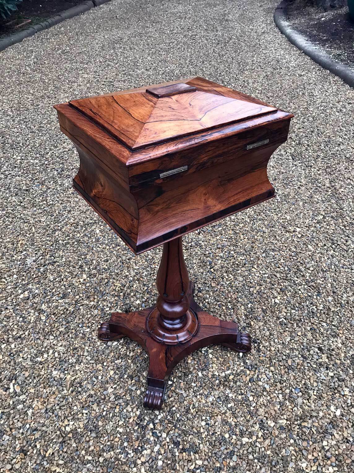19th Century William IV Rosewood Teapoy, with a solid Rosewood column and shaped base on scroll feet.