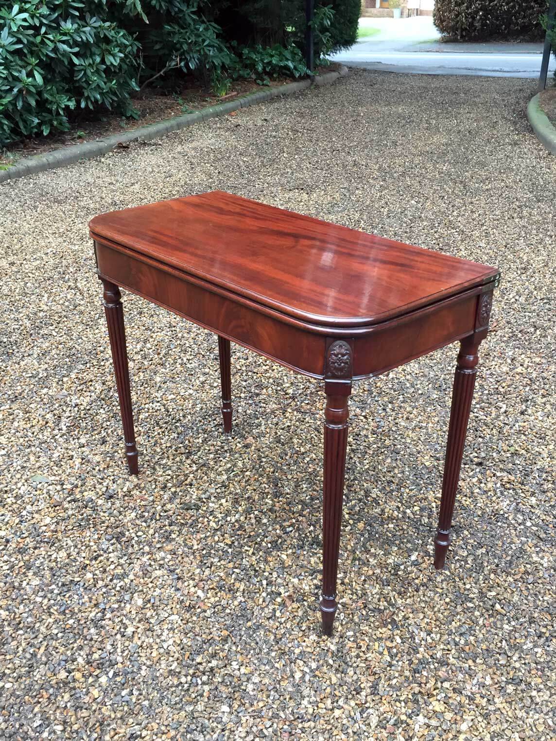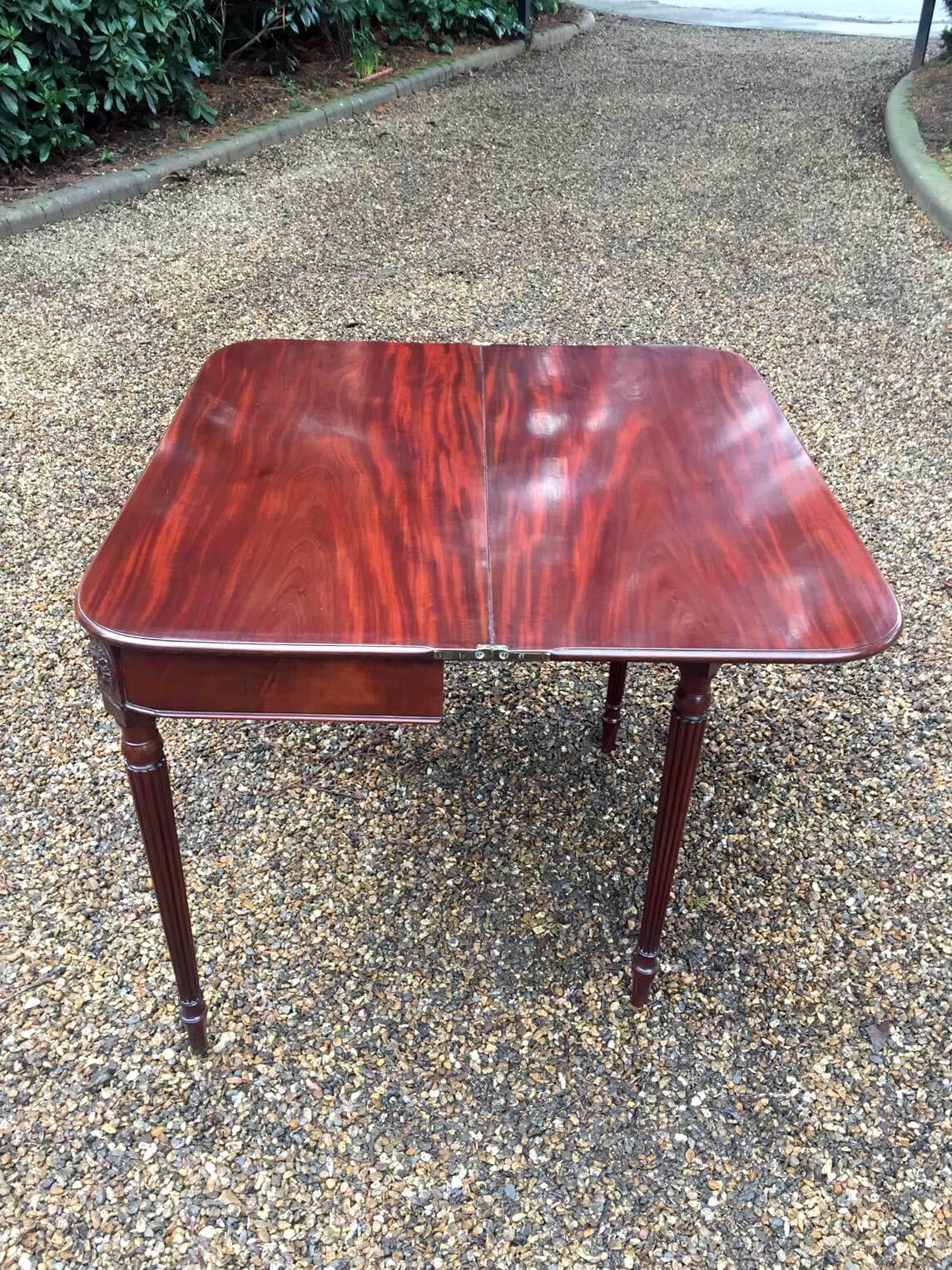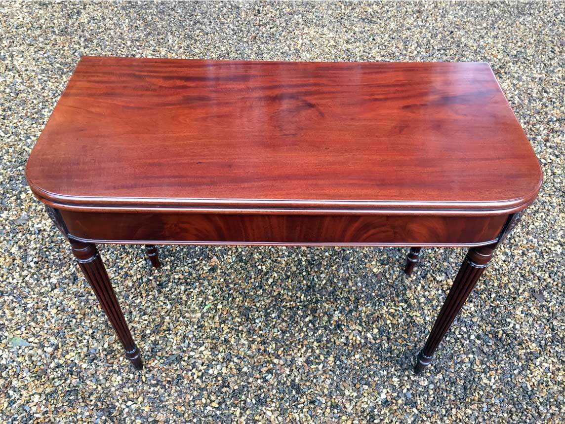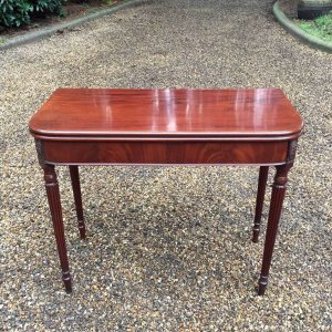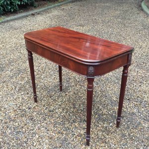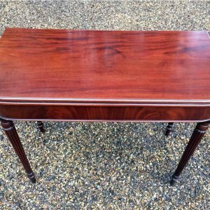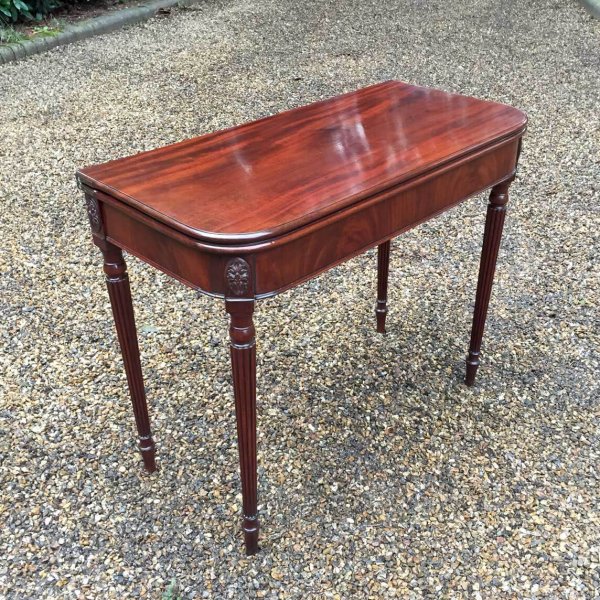 A Late Georgian / Regency Solid Mahogany Fold-over Tea Table with reeded legs.