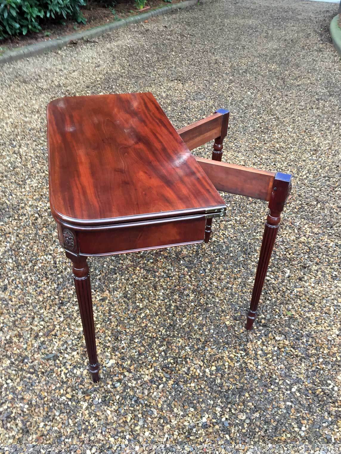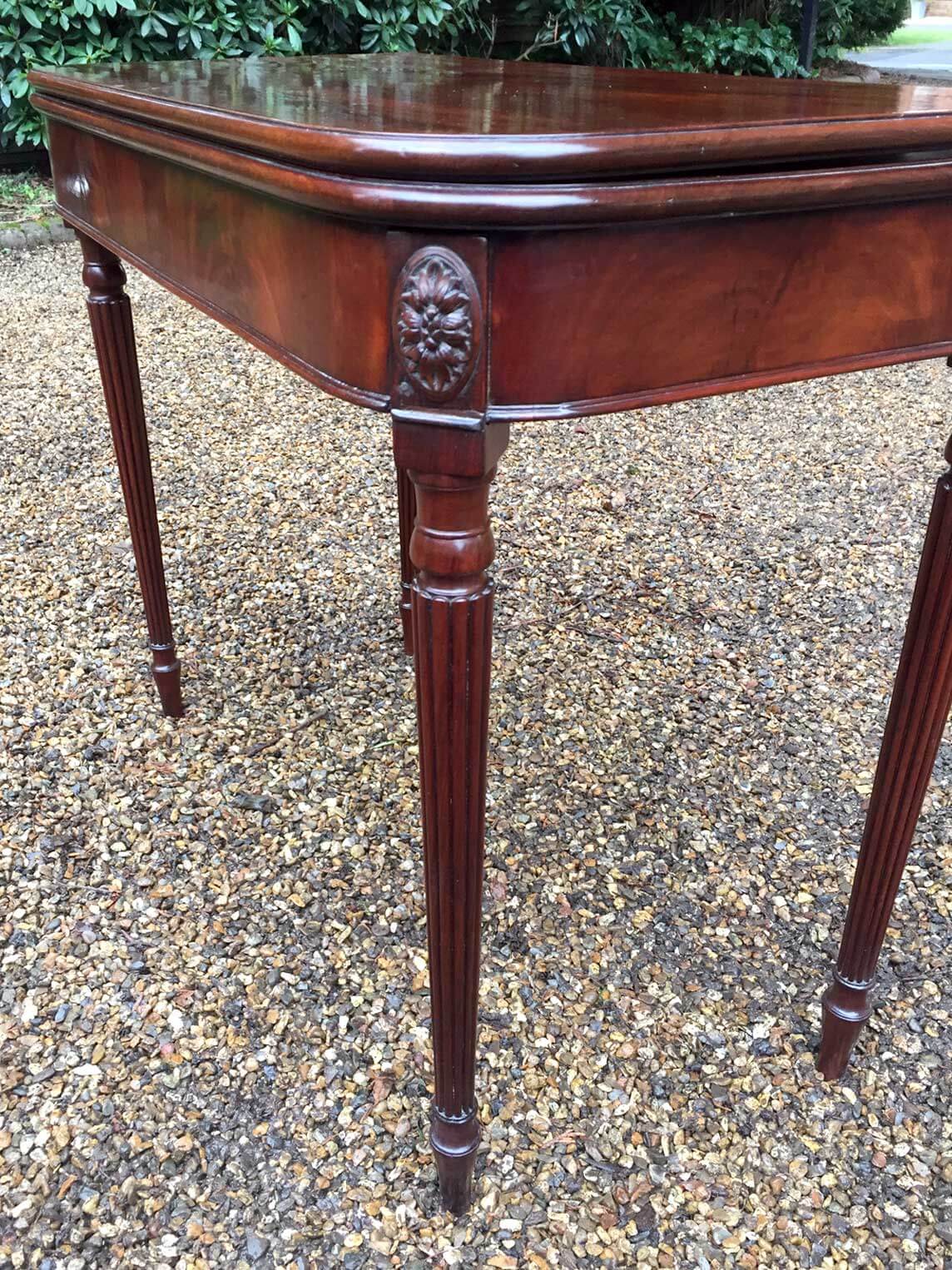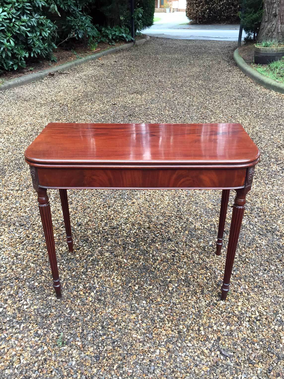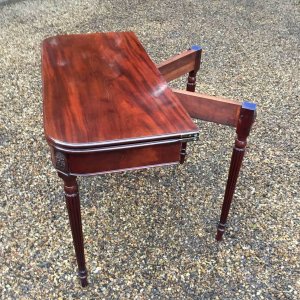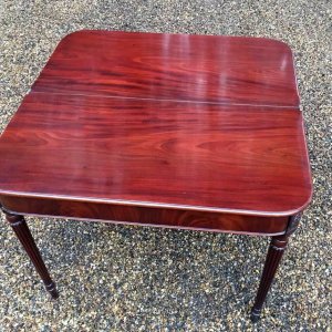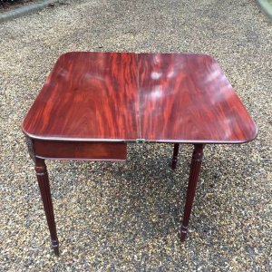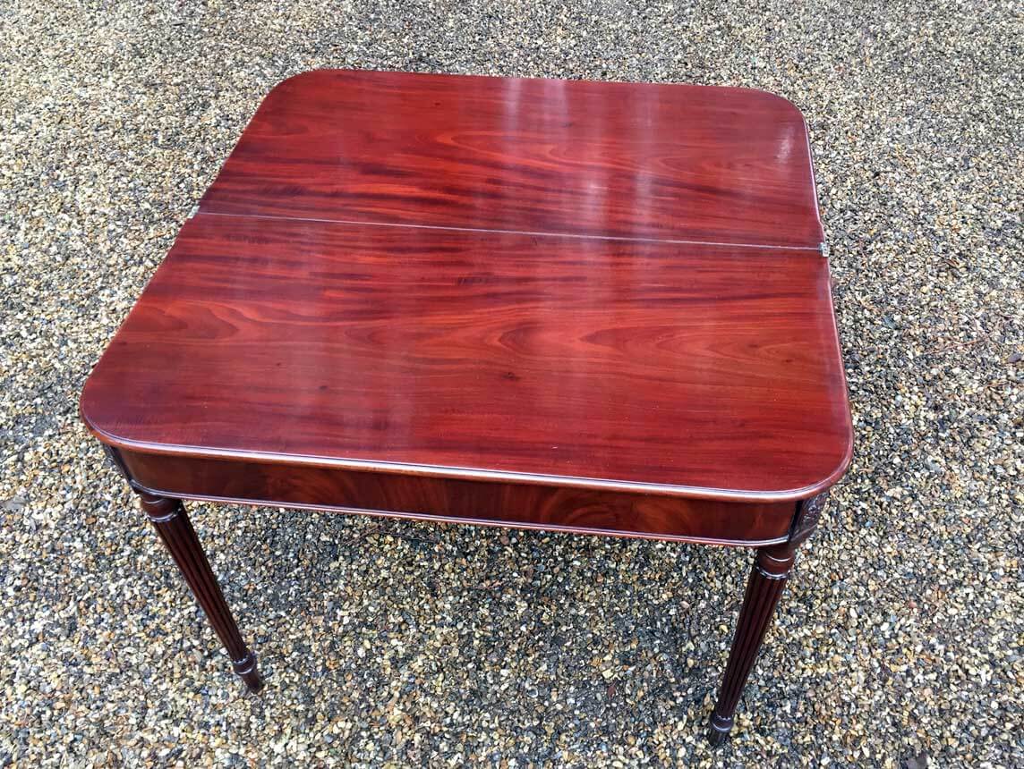 A Late Georgian / Regency Solid Mahogany Fold-over Tea Table with reeded legs.