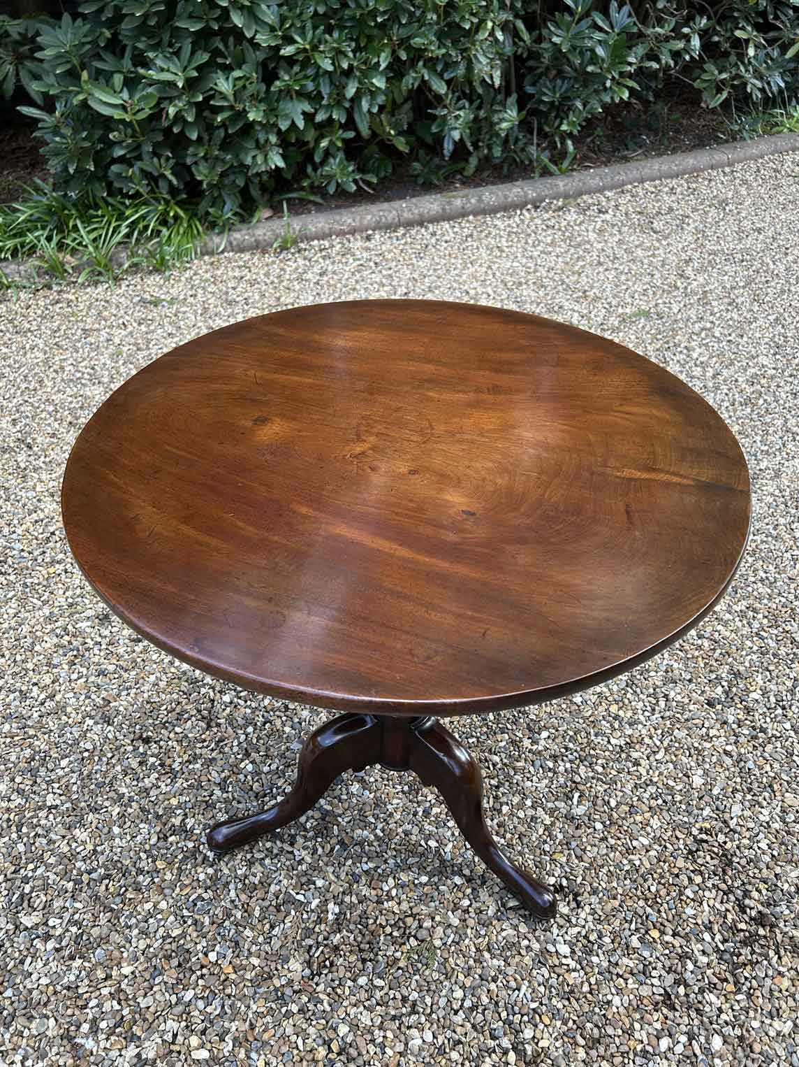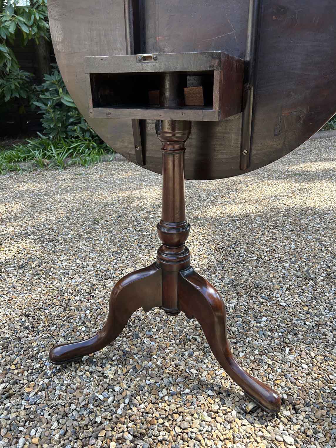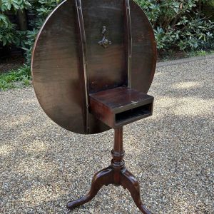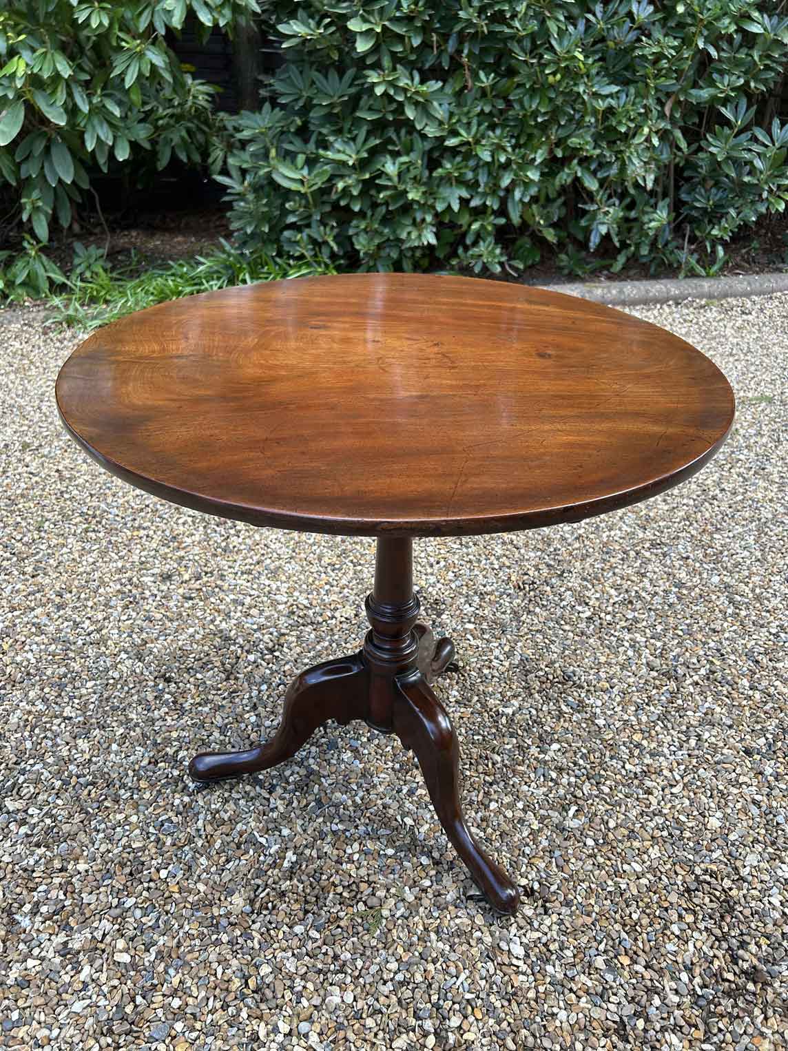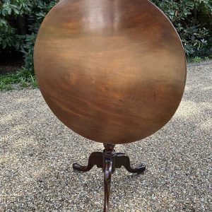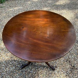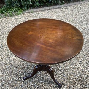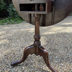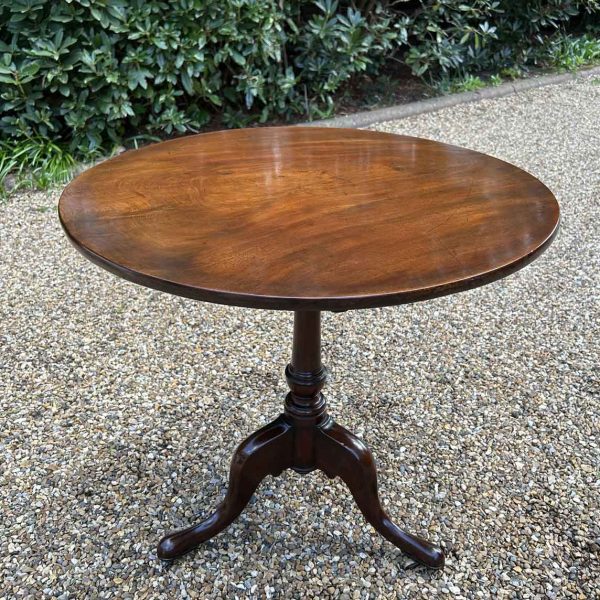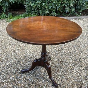 Georgian Mahogany Tilt-Top Table with Birdcage, turned column supported with three splayed legs.