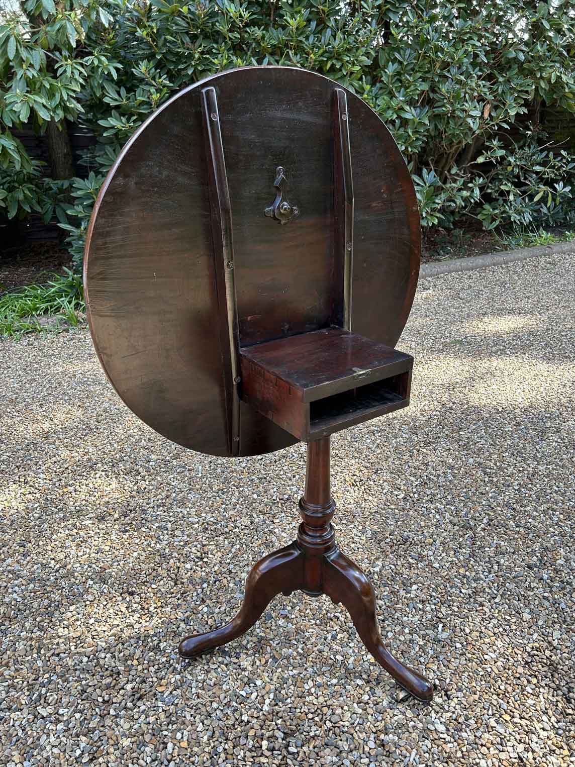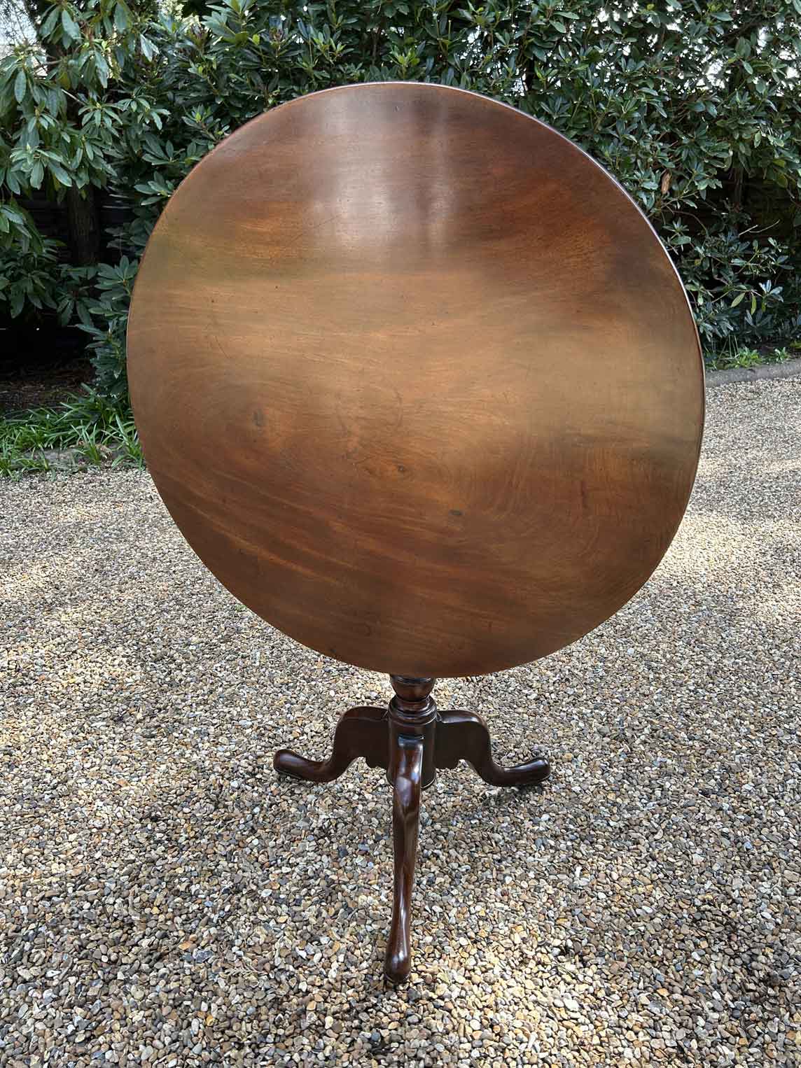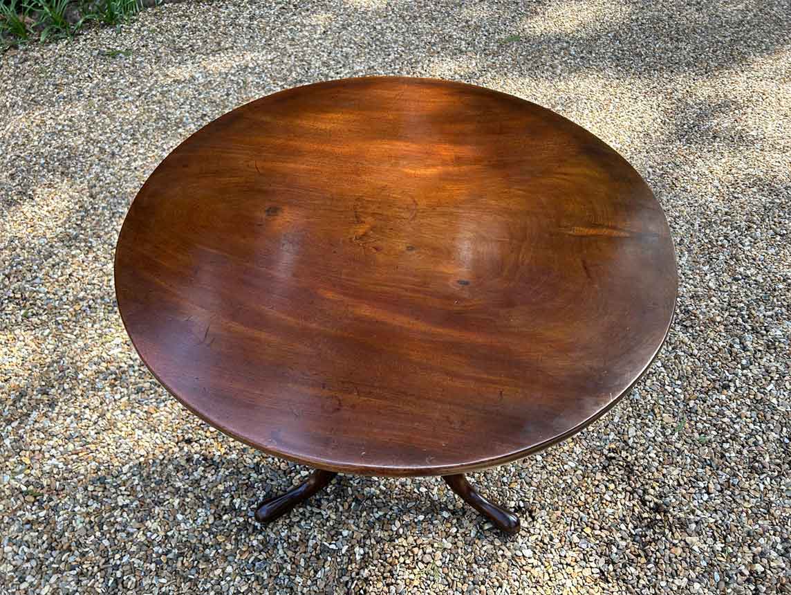 Georgian Mahogany Tilt-Top Table with Birdcage, turned column supported with three splayed legs.