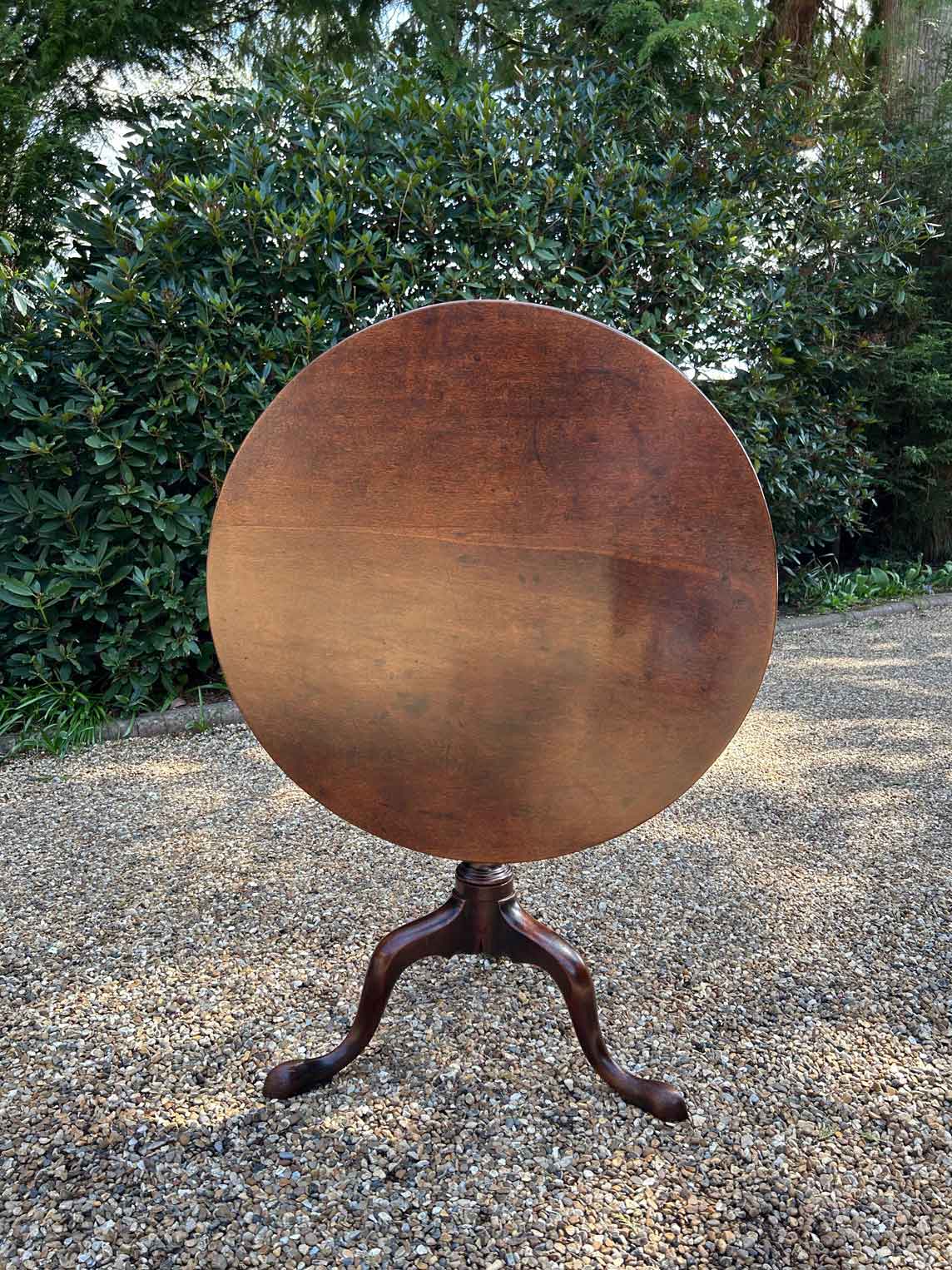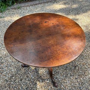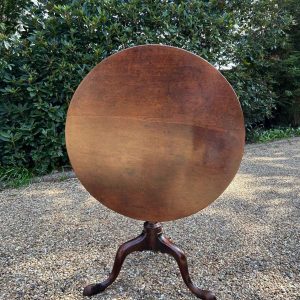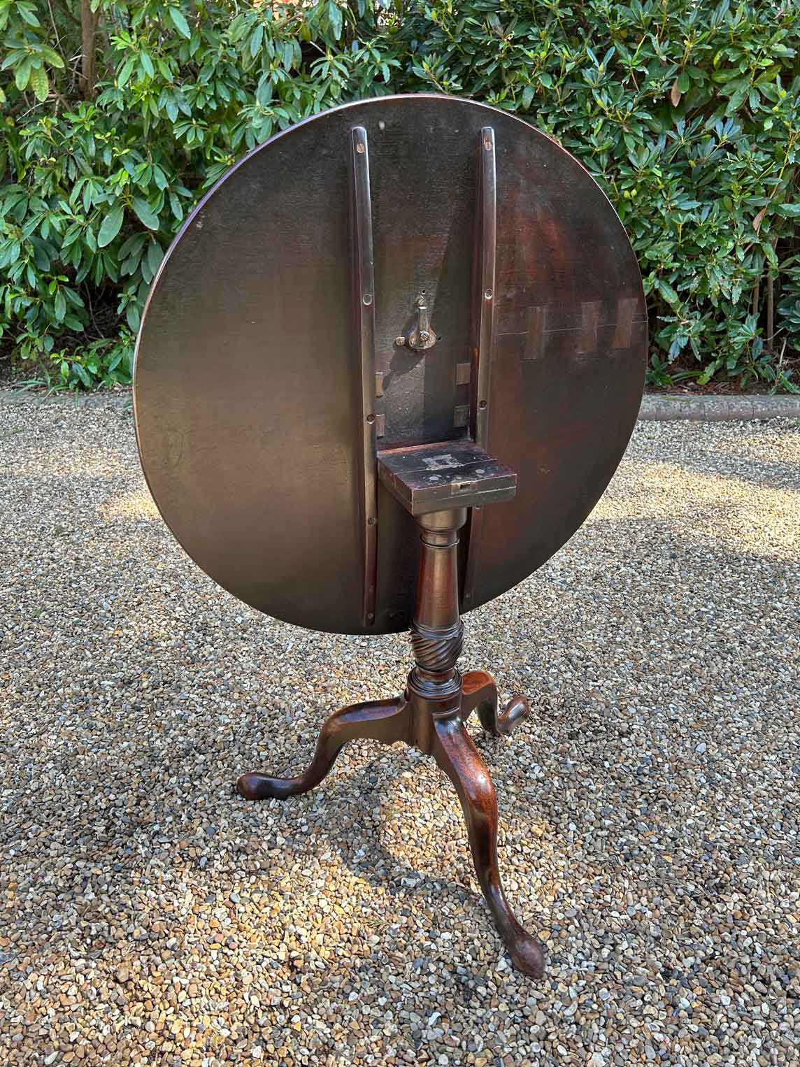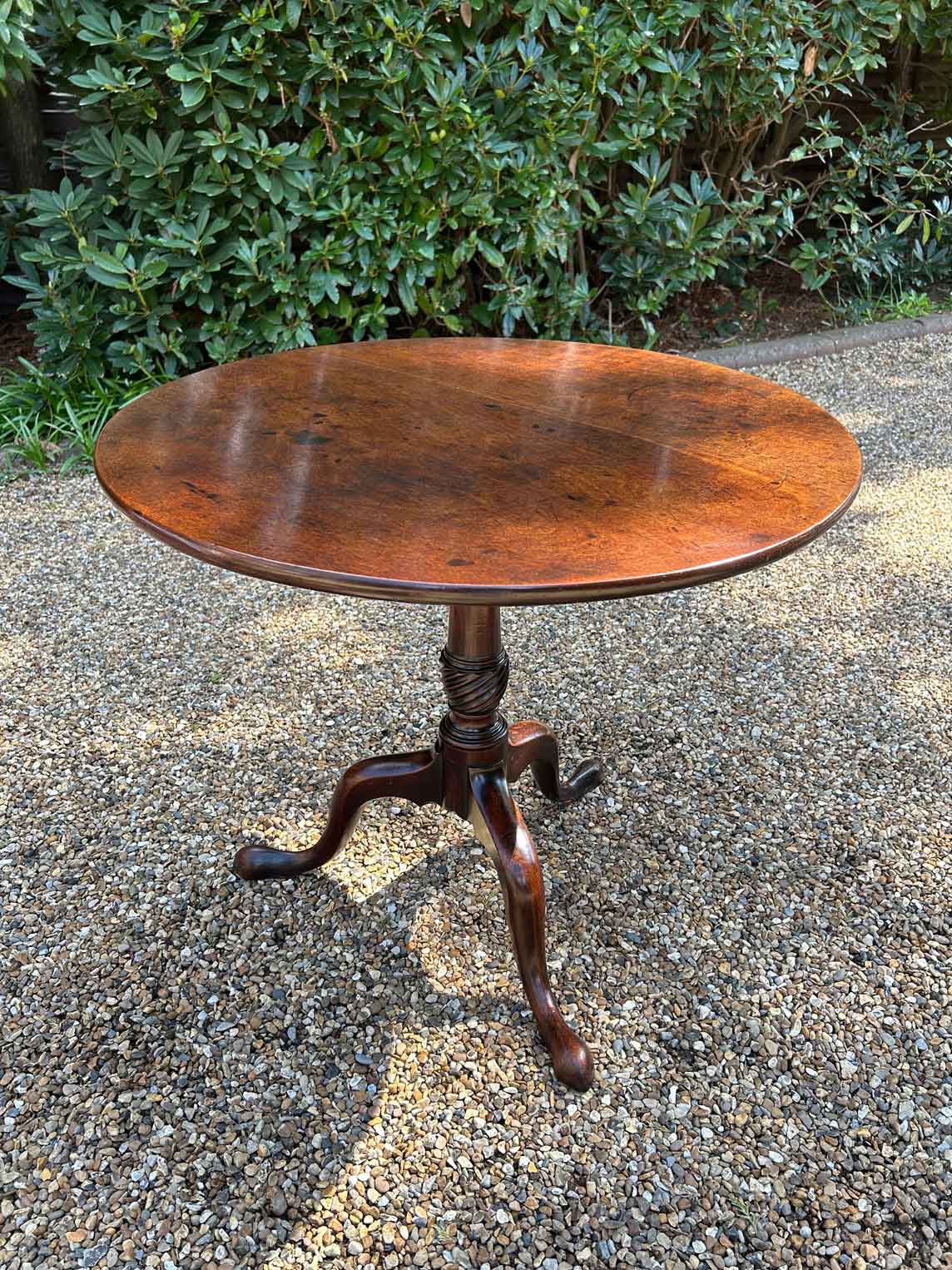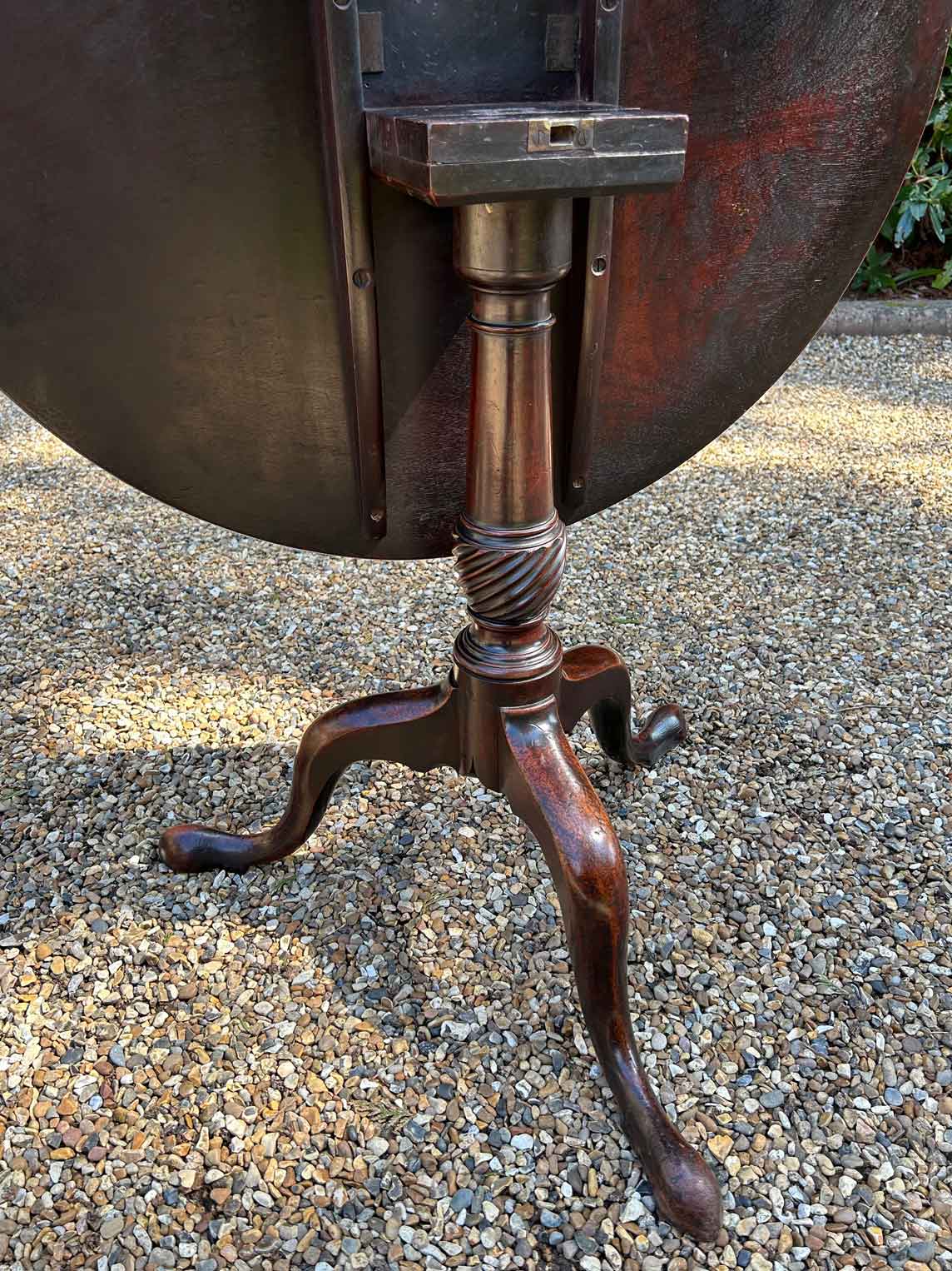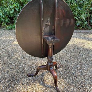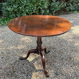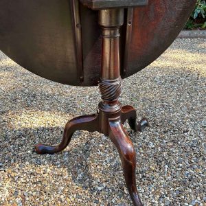 A very high quality 18th Century Cuban Georgian Mahogany Tilt-Top Table. The centre column is turned with a carved reeded vase shape with the three splayed legs and finishing in a pad foot. The top has a historical split that has been “butterflied” on the underside to prevent it getting worse. The whole table has a good original finish and colour. (One piece top)